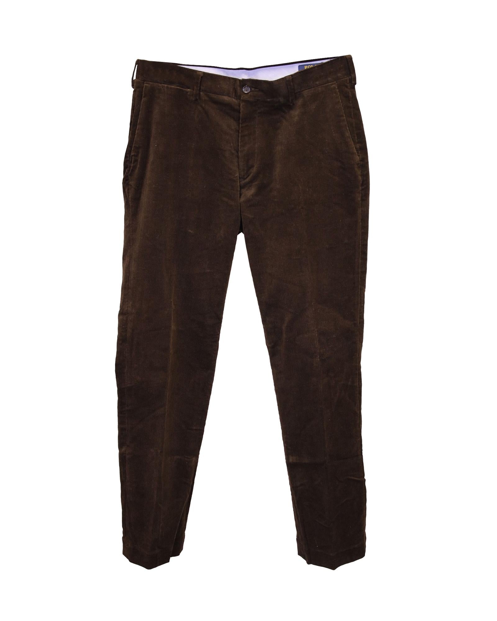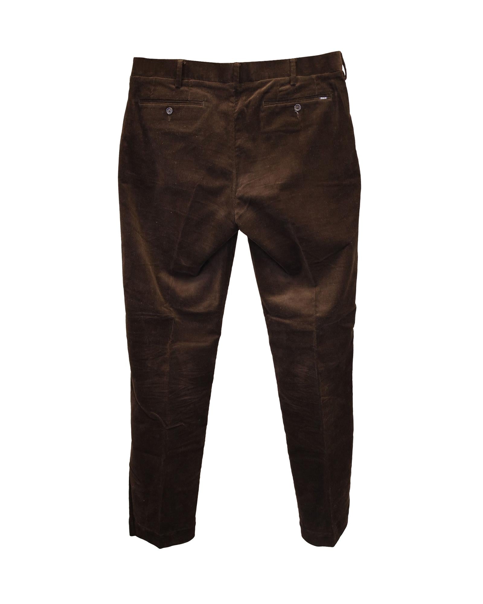 • Fit Stretch Corduroy Trousers in Brown Cotton