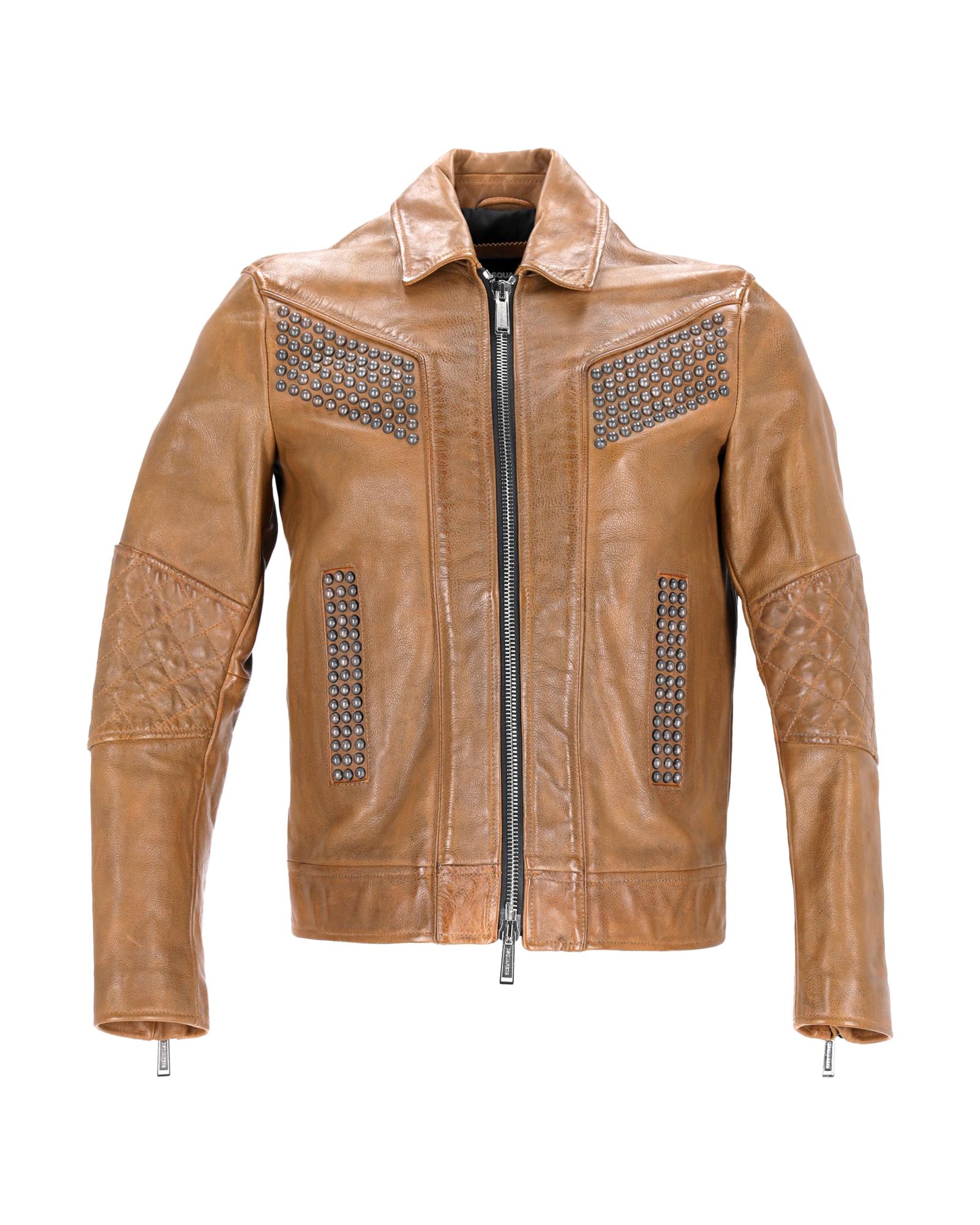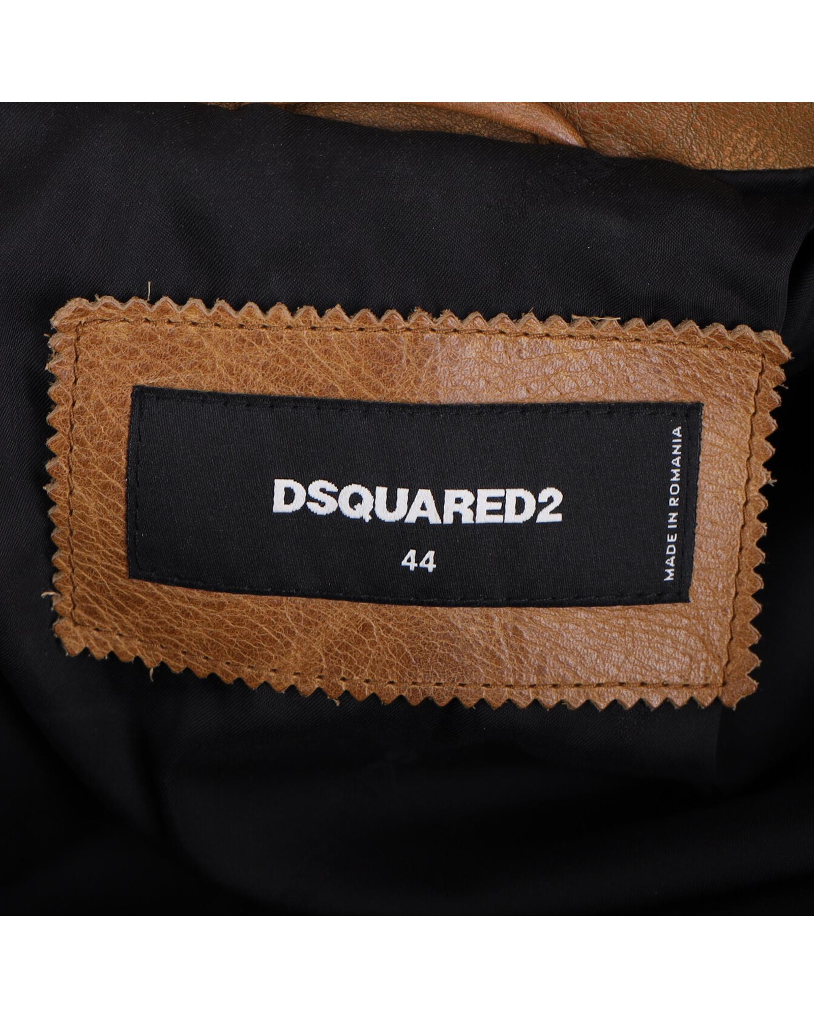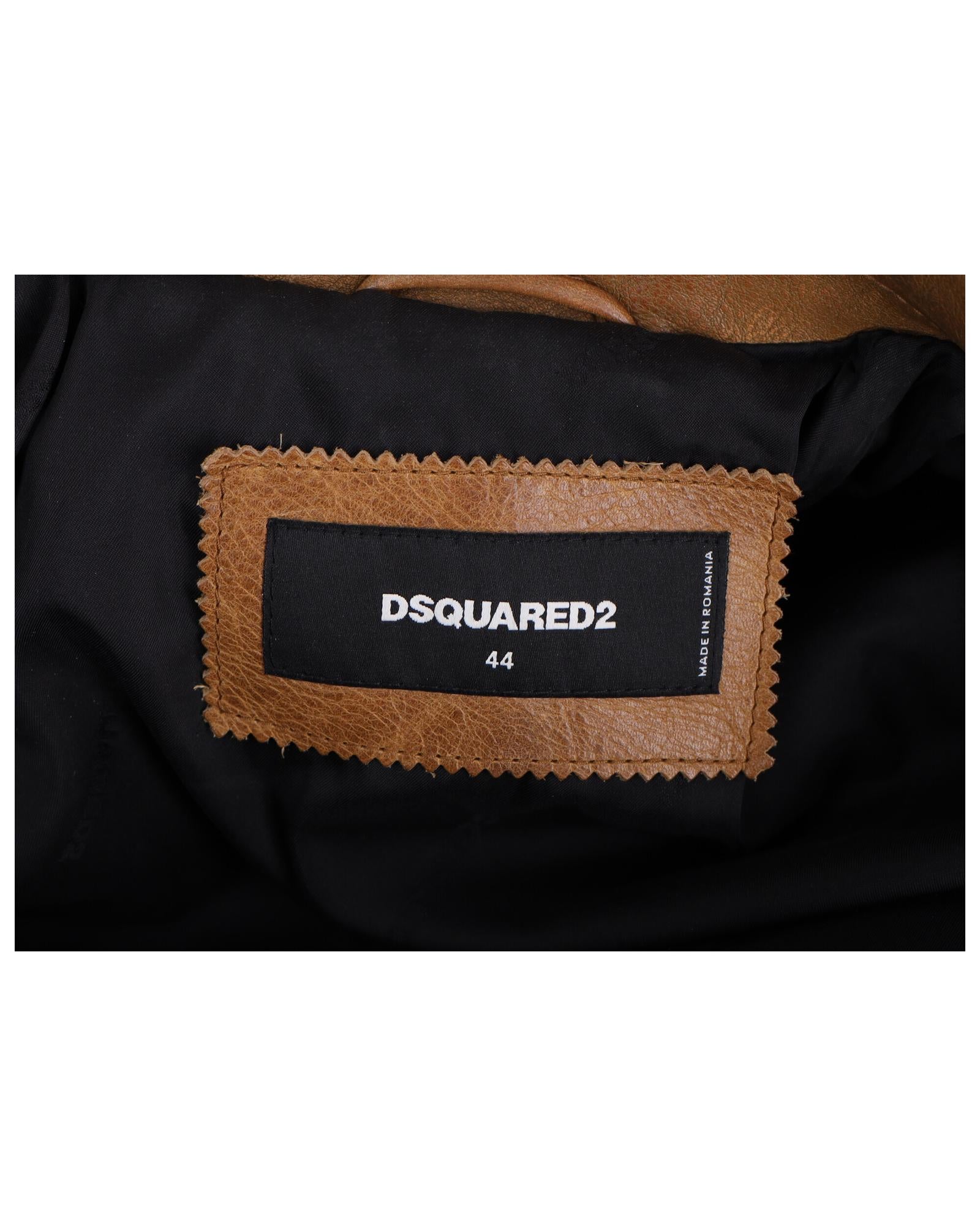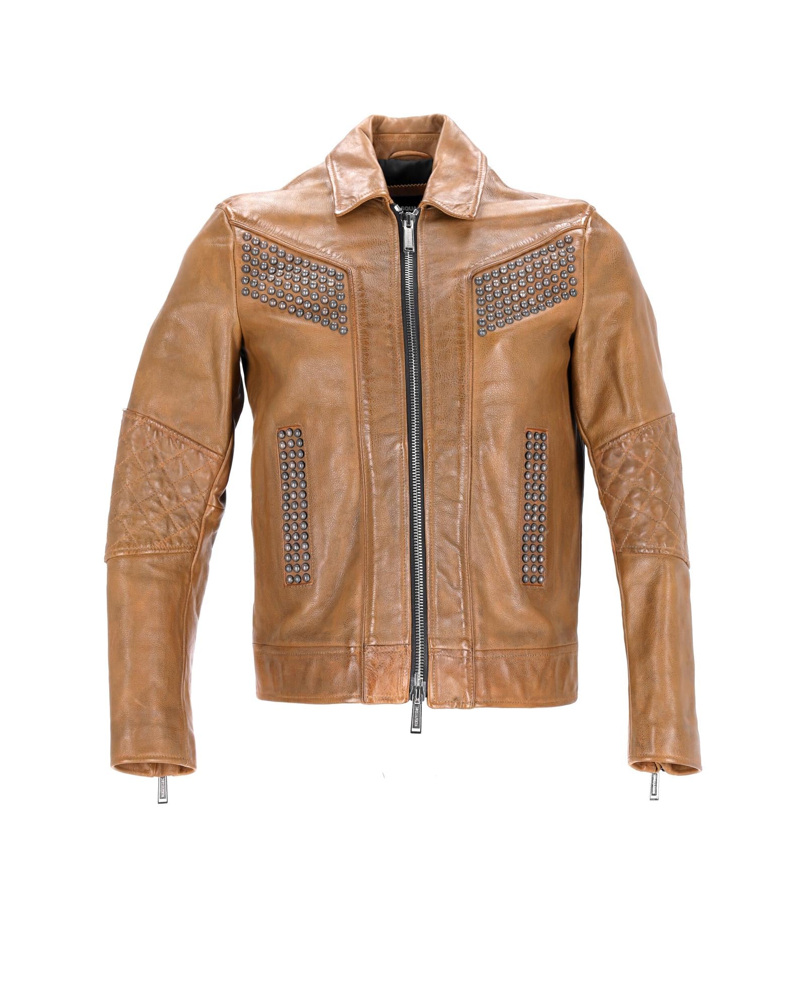 • Dsquared2 Studded Vintage Effect Jacket in Brown Leather