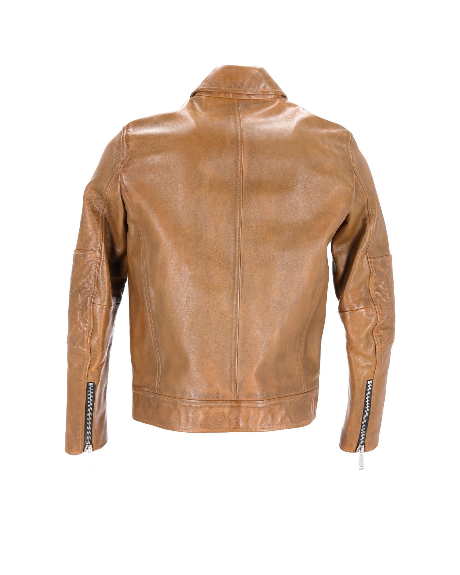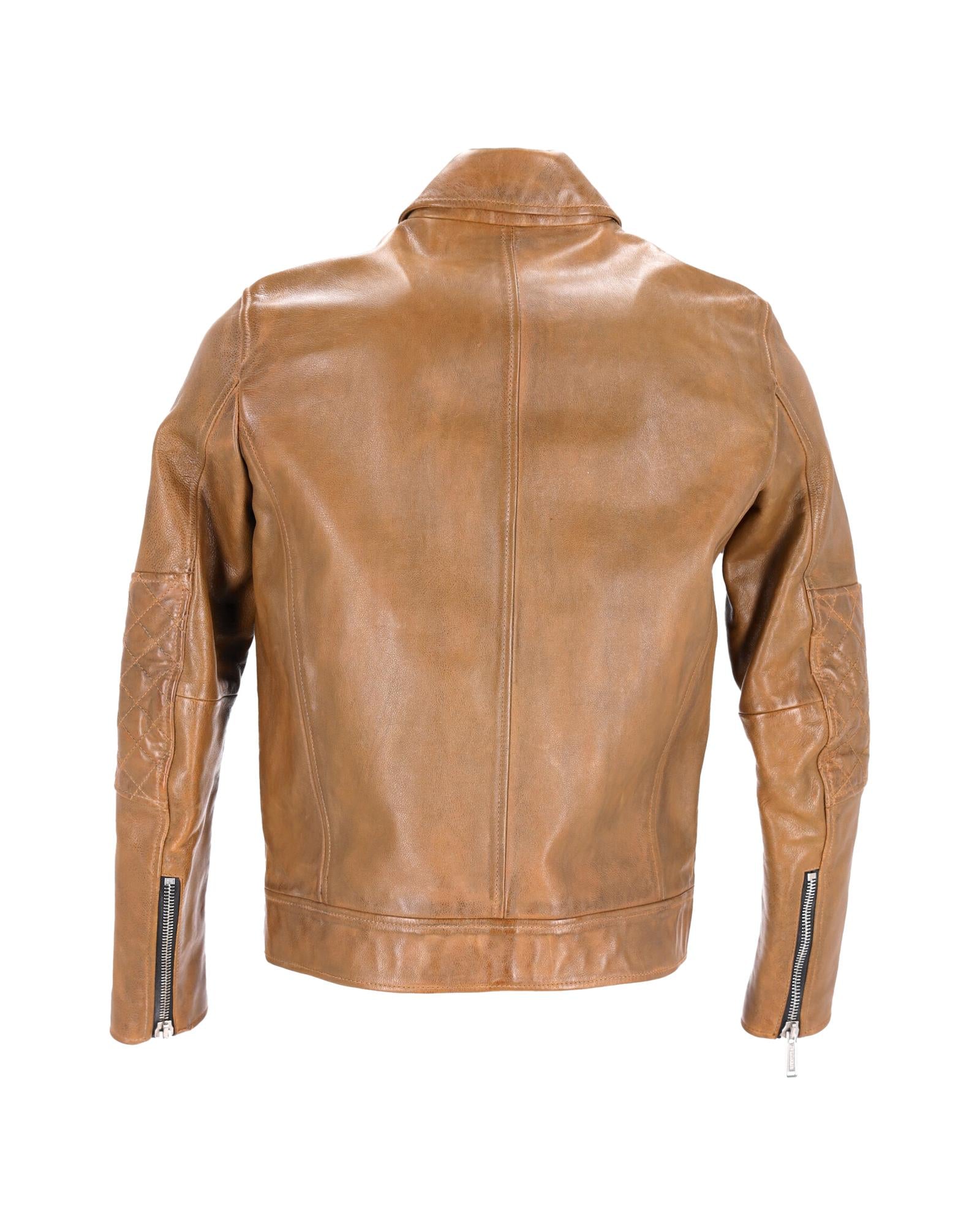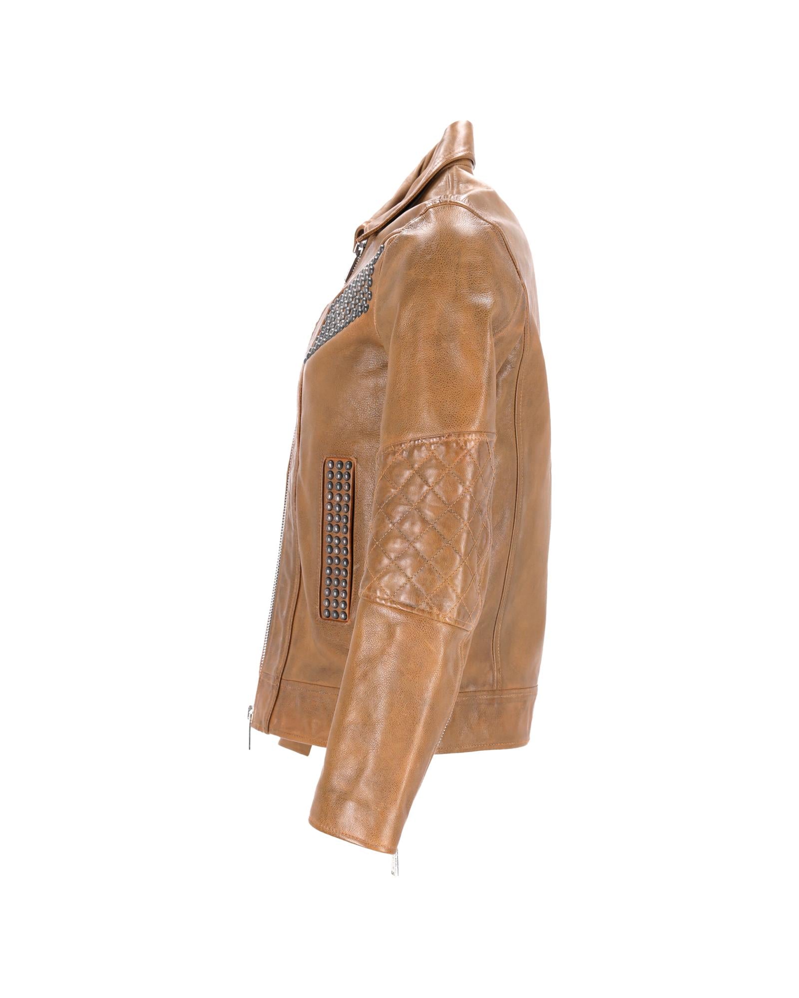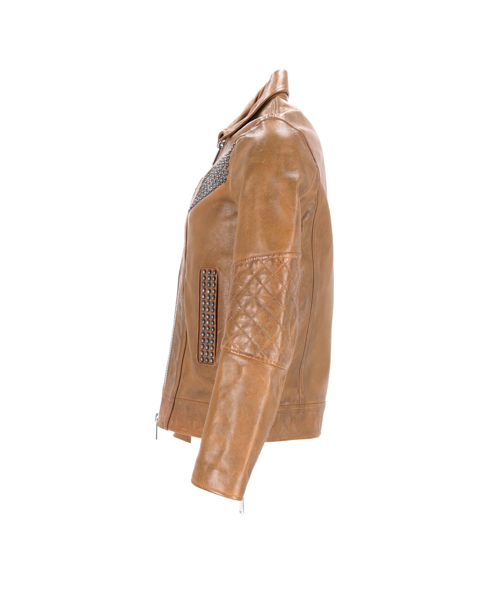 • Dsquared2 Studded Vintage Effect Jacket in Brown Leather