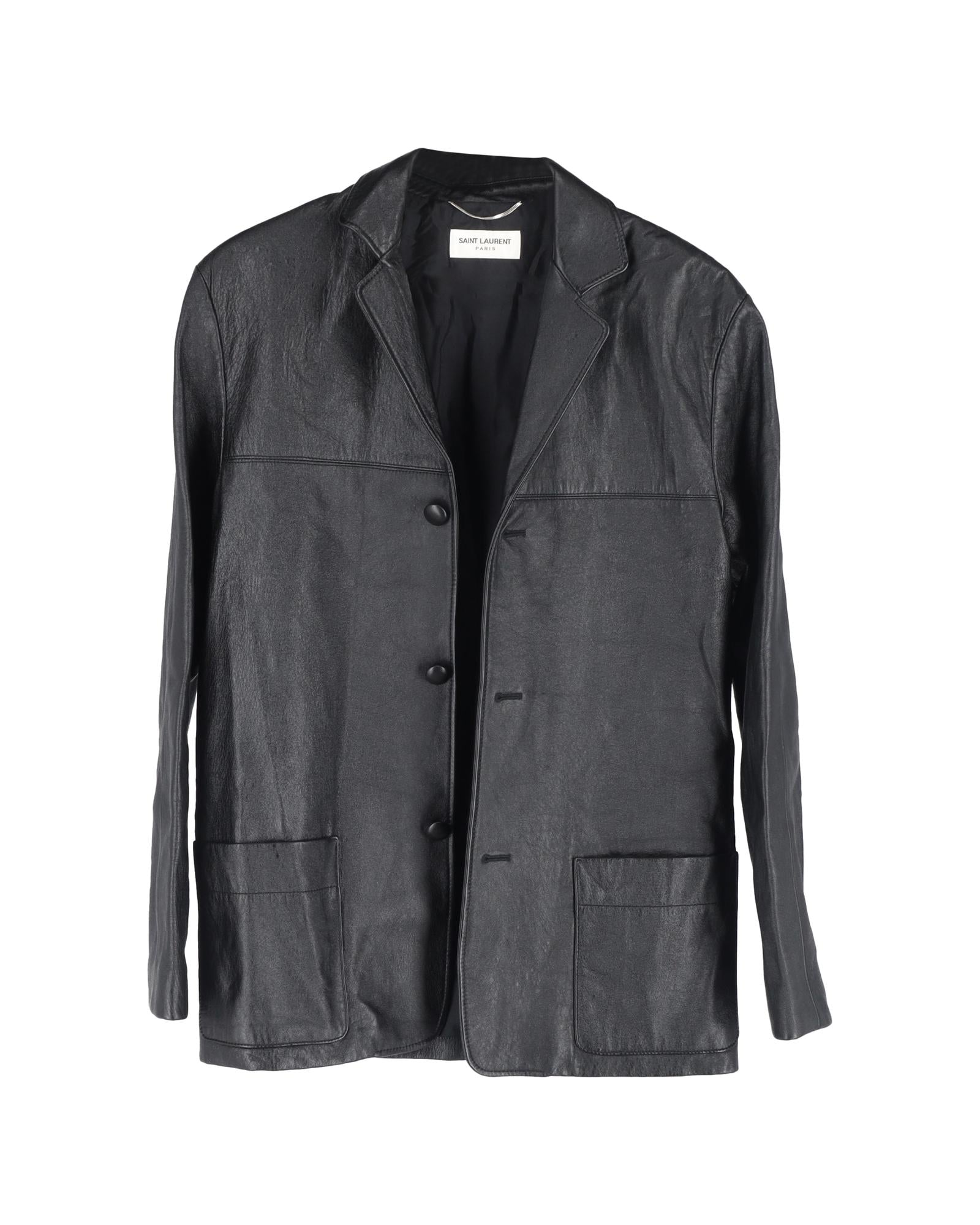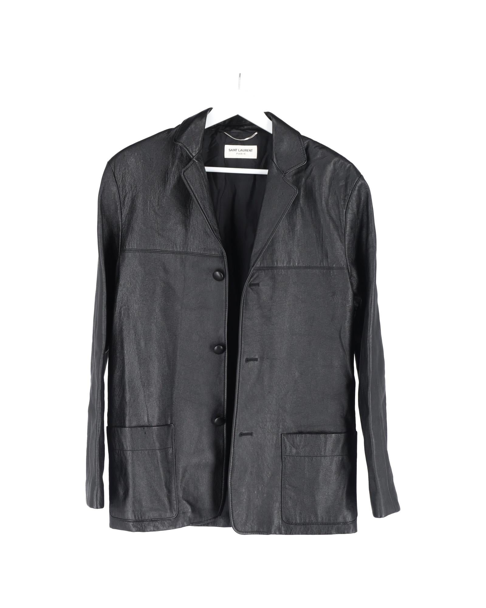 • Saint Laurent Buttoned Leather Jacket in Black Leather