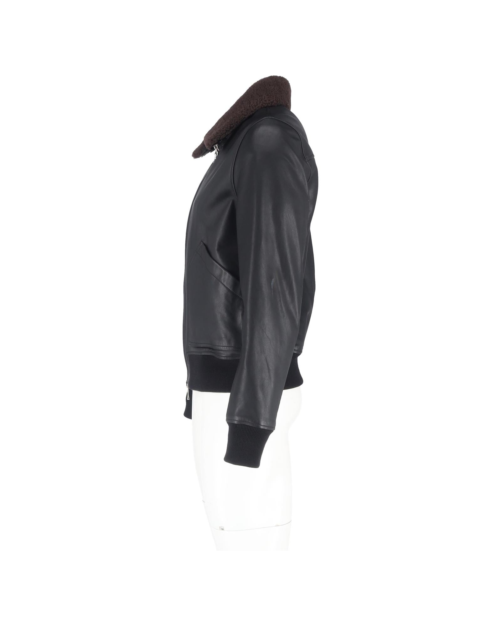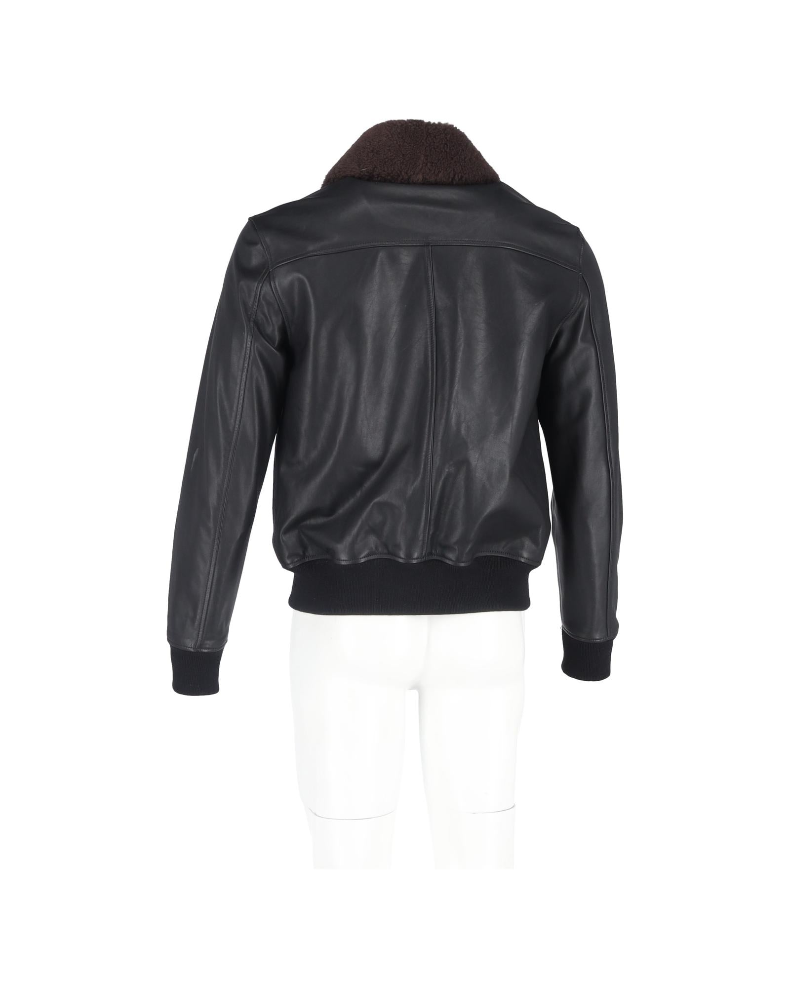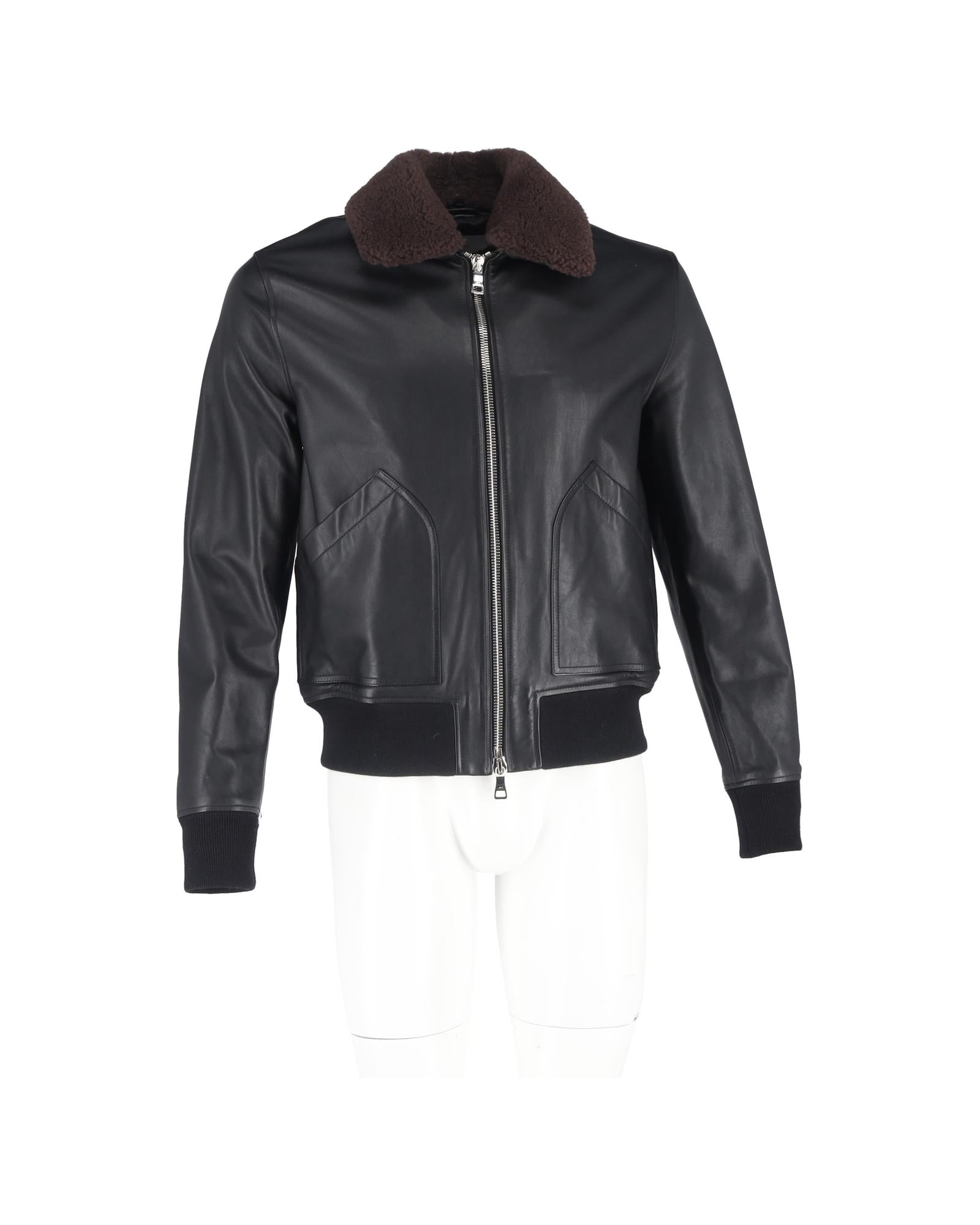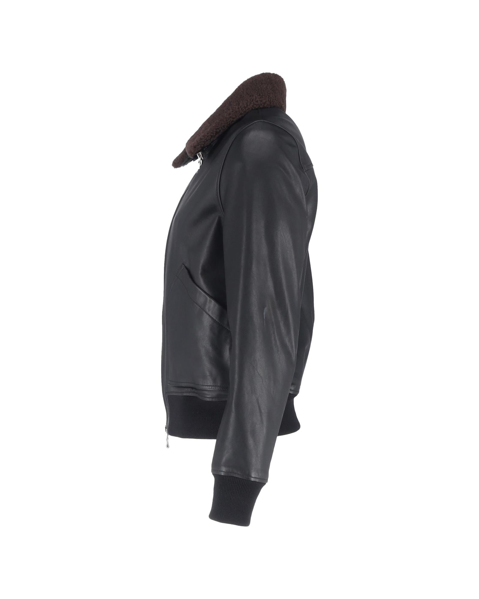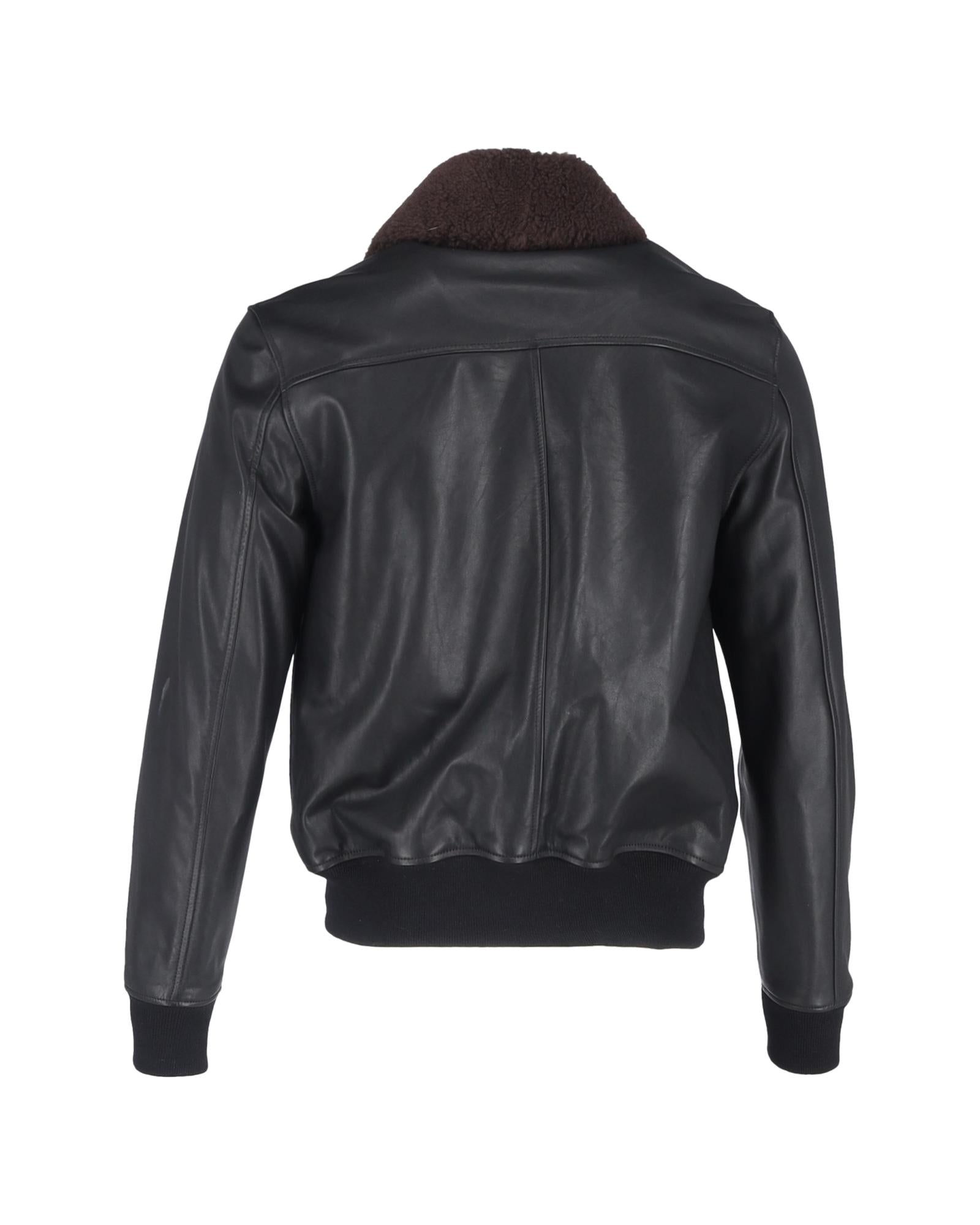 Leather Bomber Jacket Shearling Collar