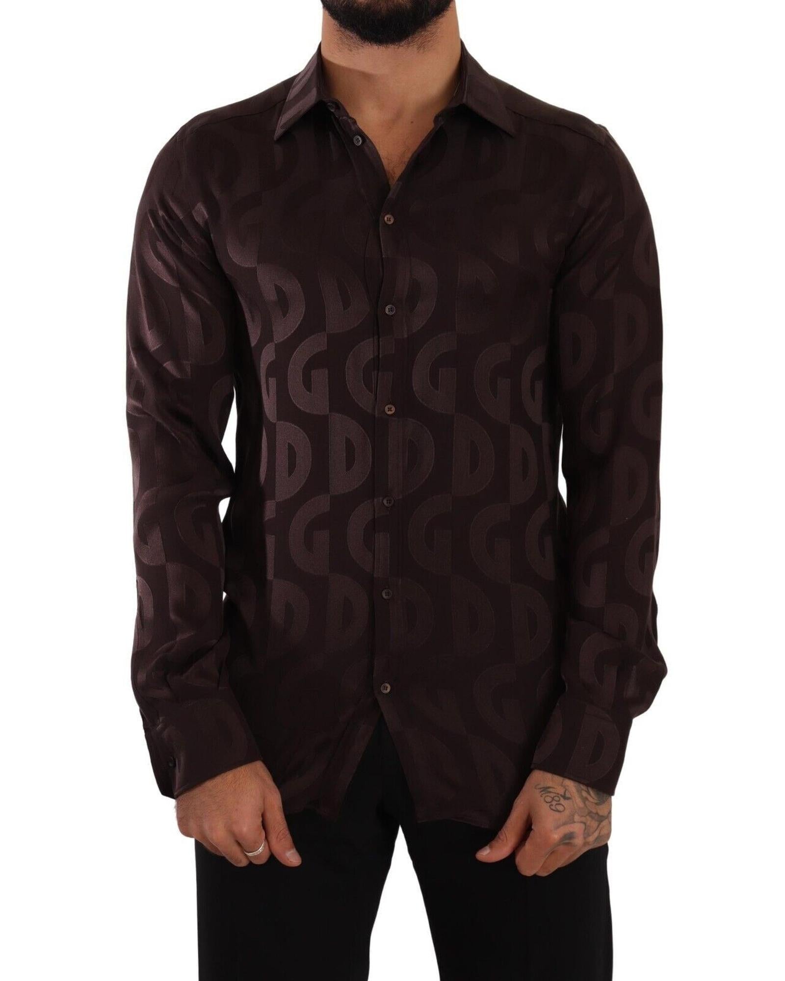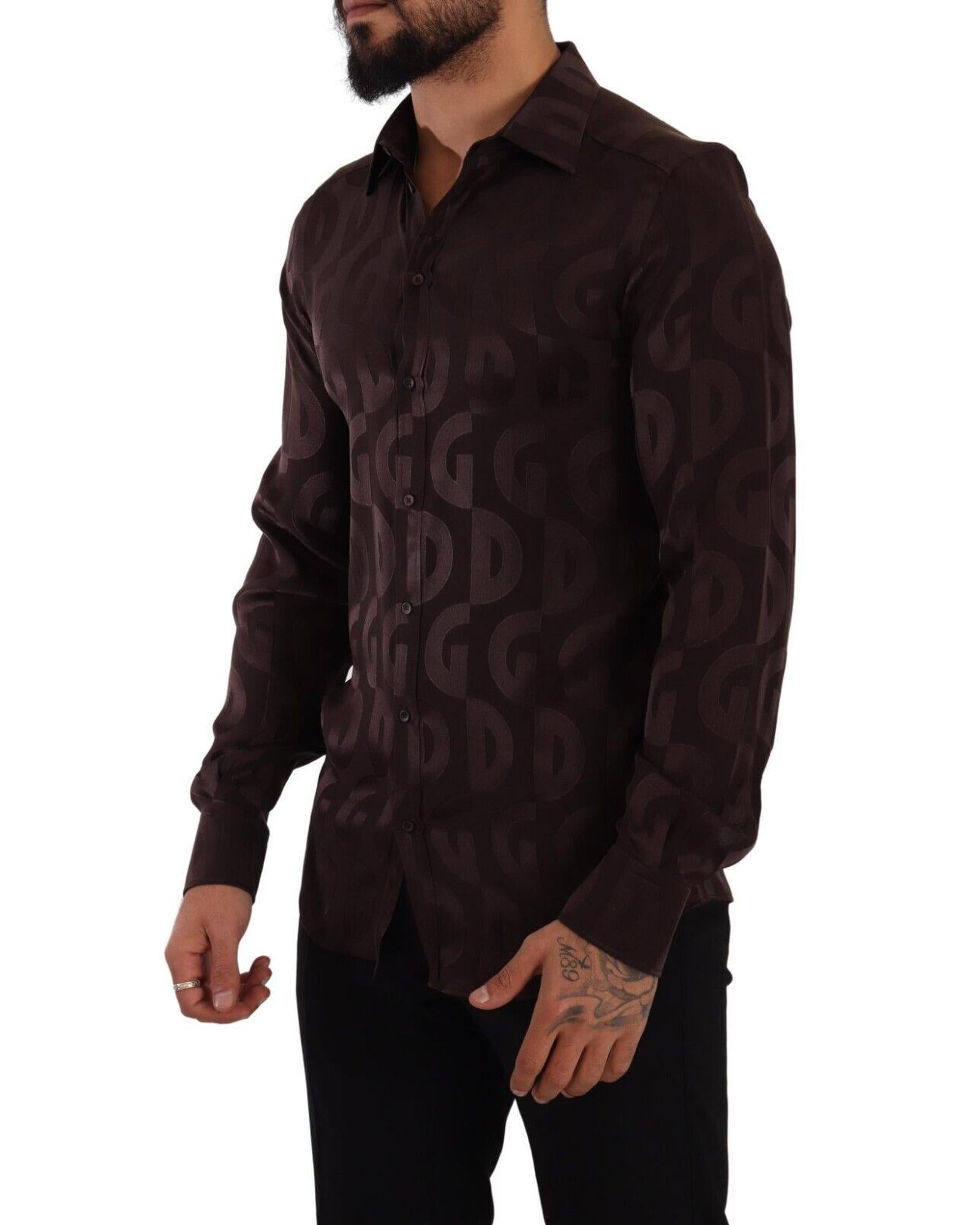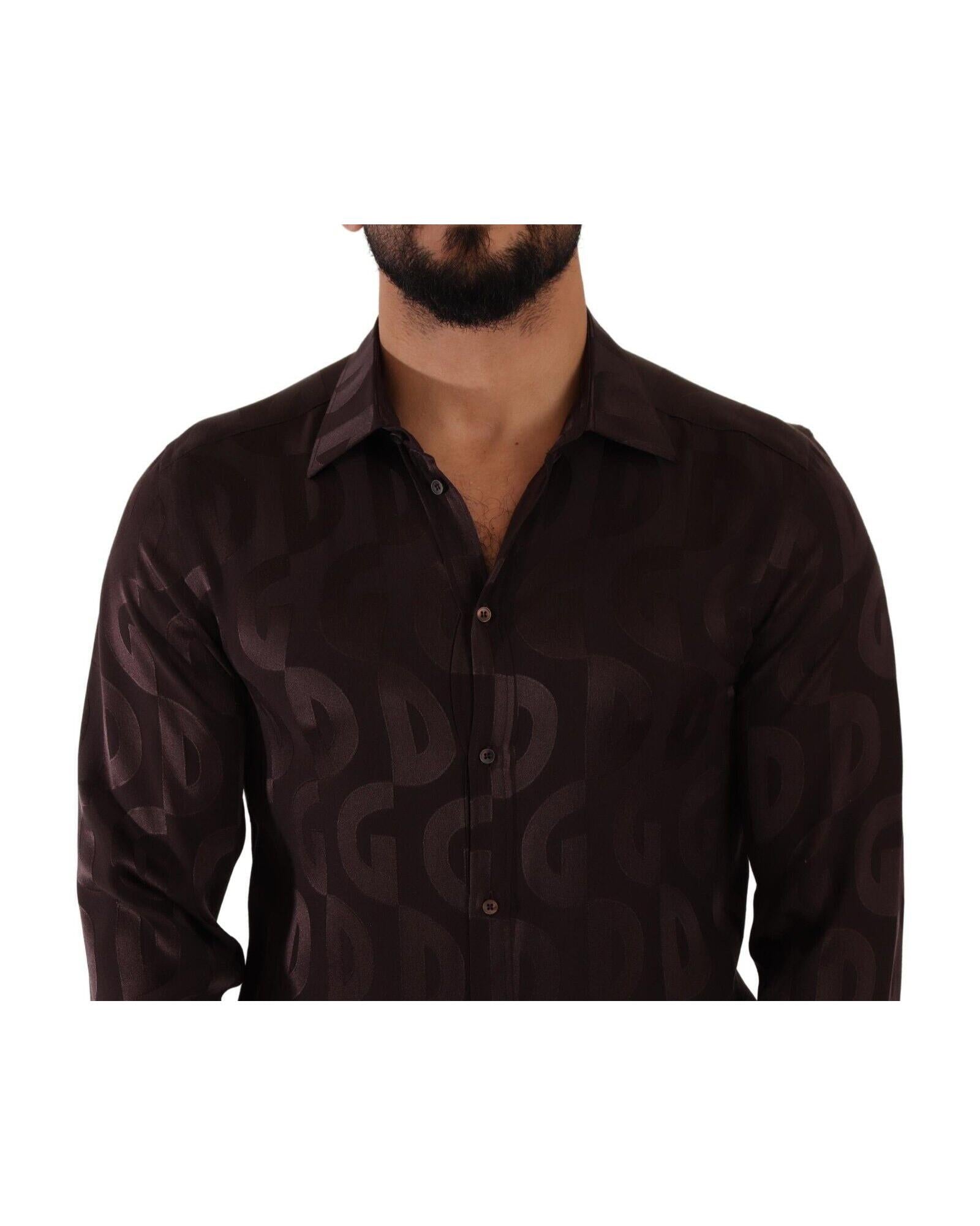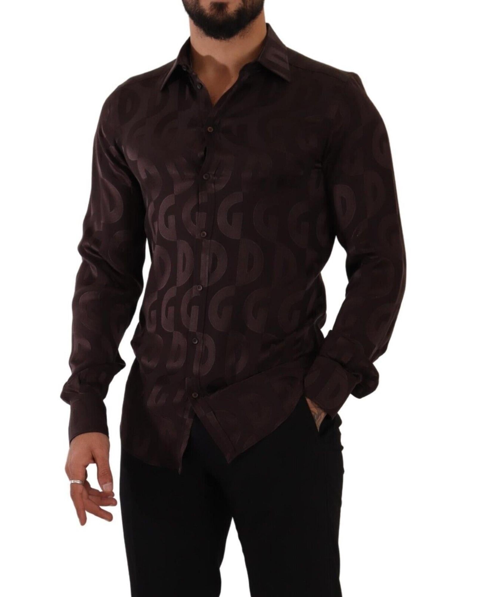Allover Logo Silk Shirt with Classic Neck and Long Sleeves