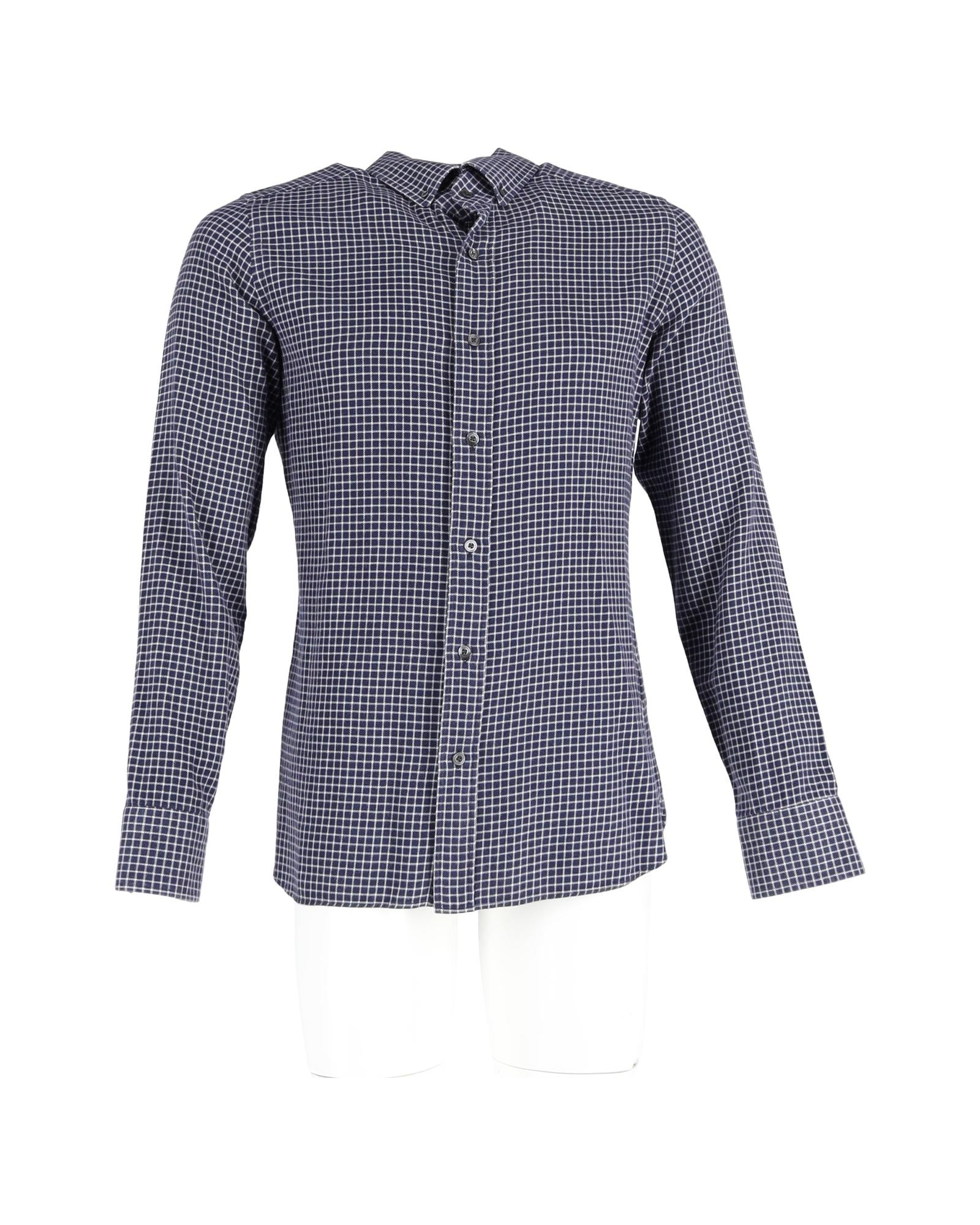 • Tom Ford Check Shirt in Navy Blue Cotton