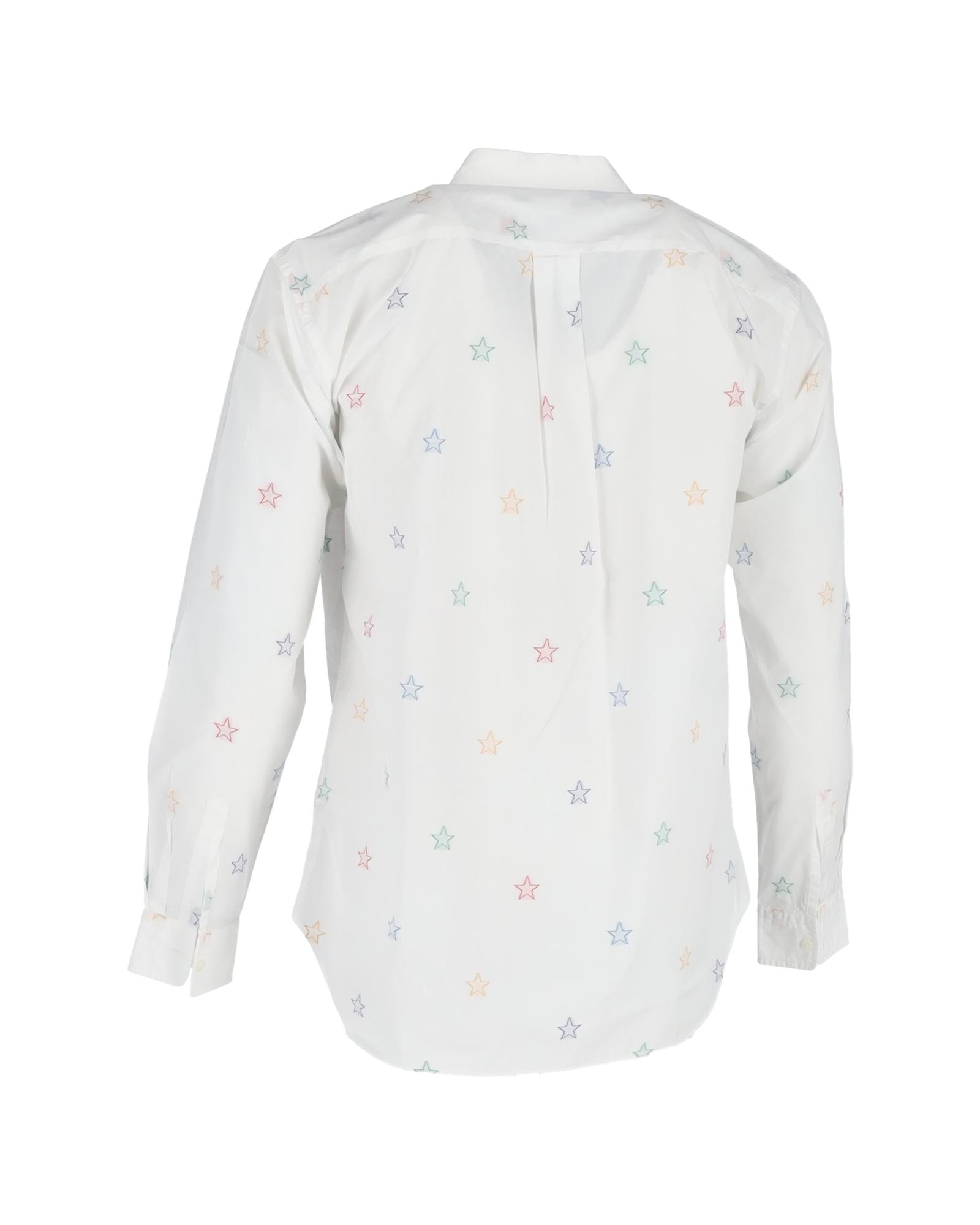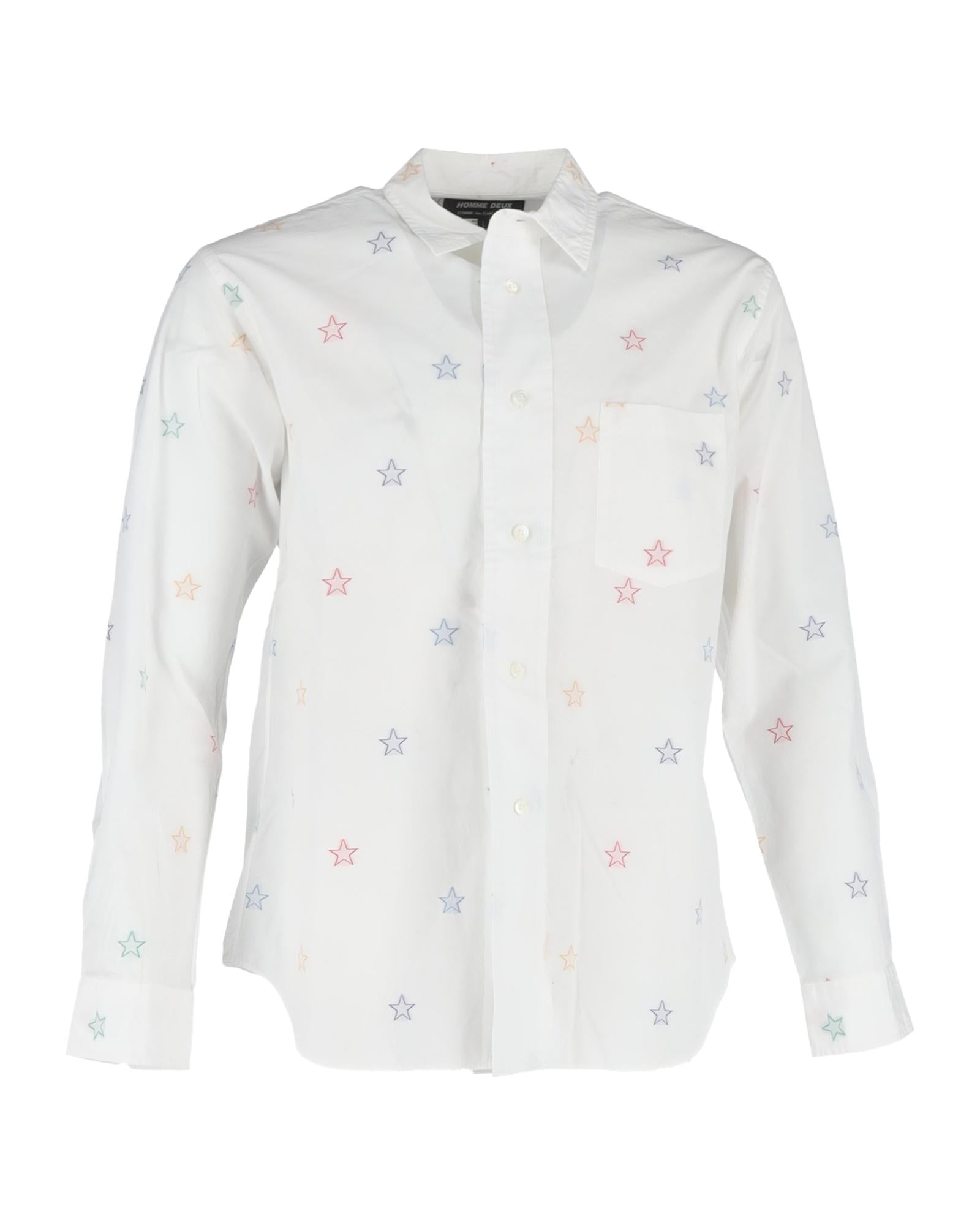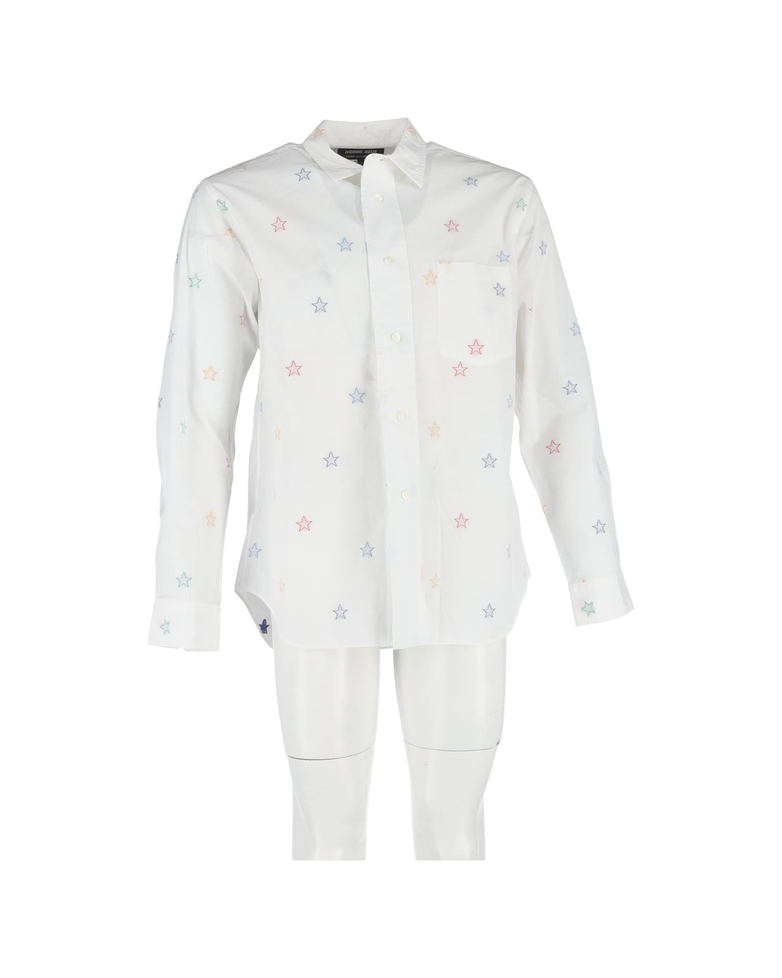 - Comme Des Garcons Star Printed Long Sleeve Shirt in White Cotton