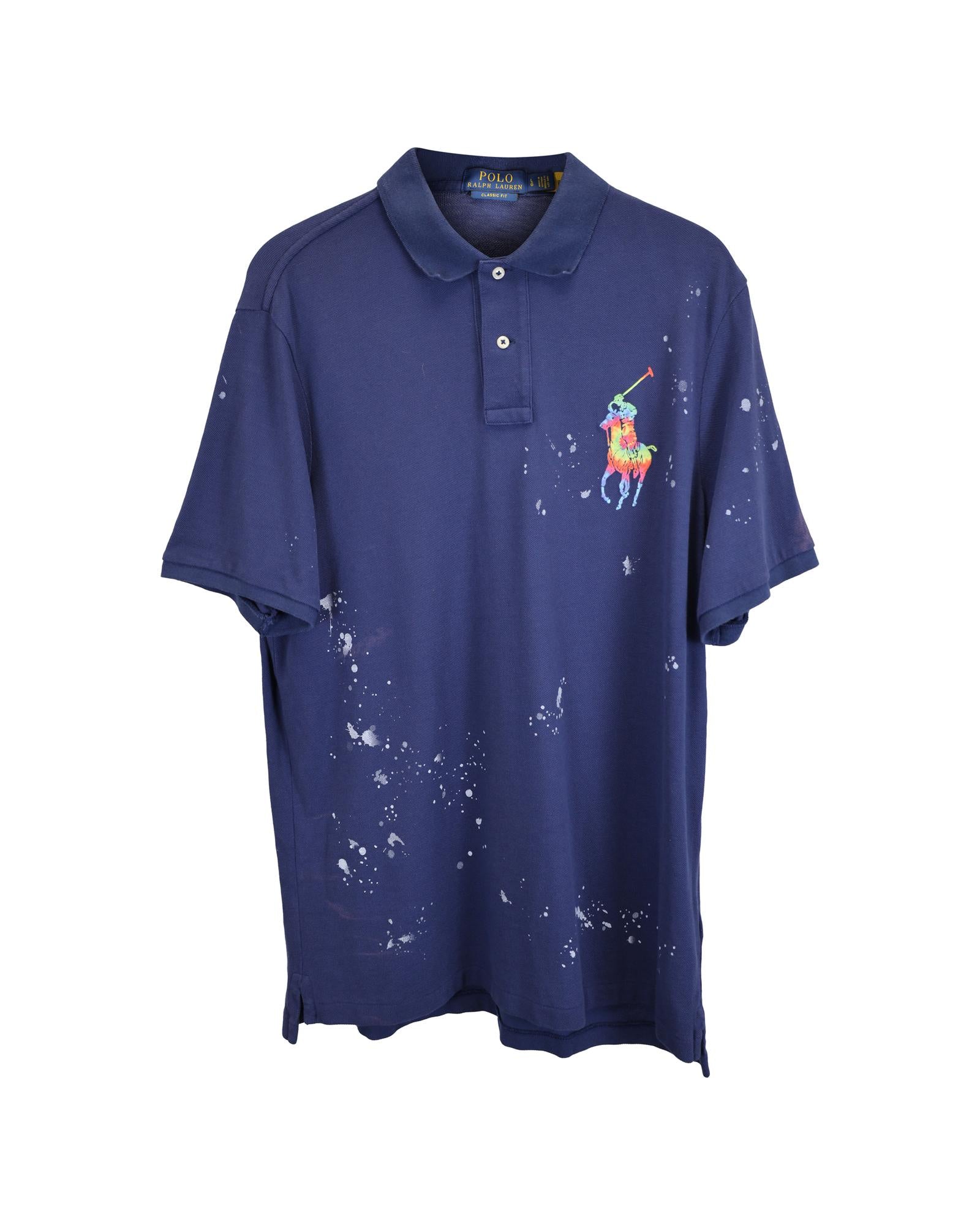 • Polo Ralph Lauren Pony Paint Splatter Polo Shirt in Navy Blue Cotton