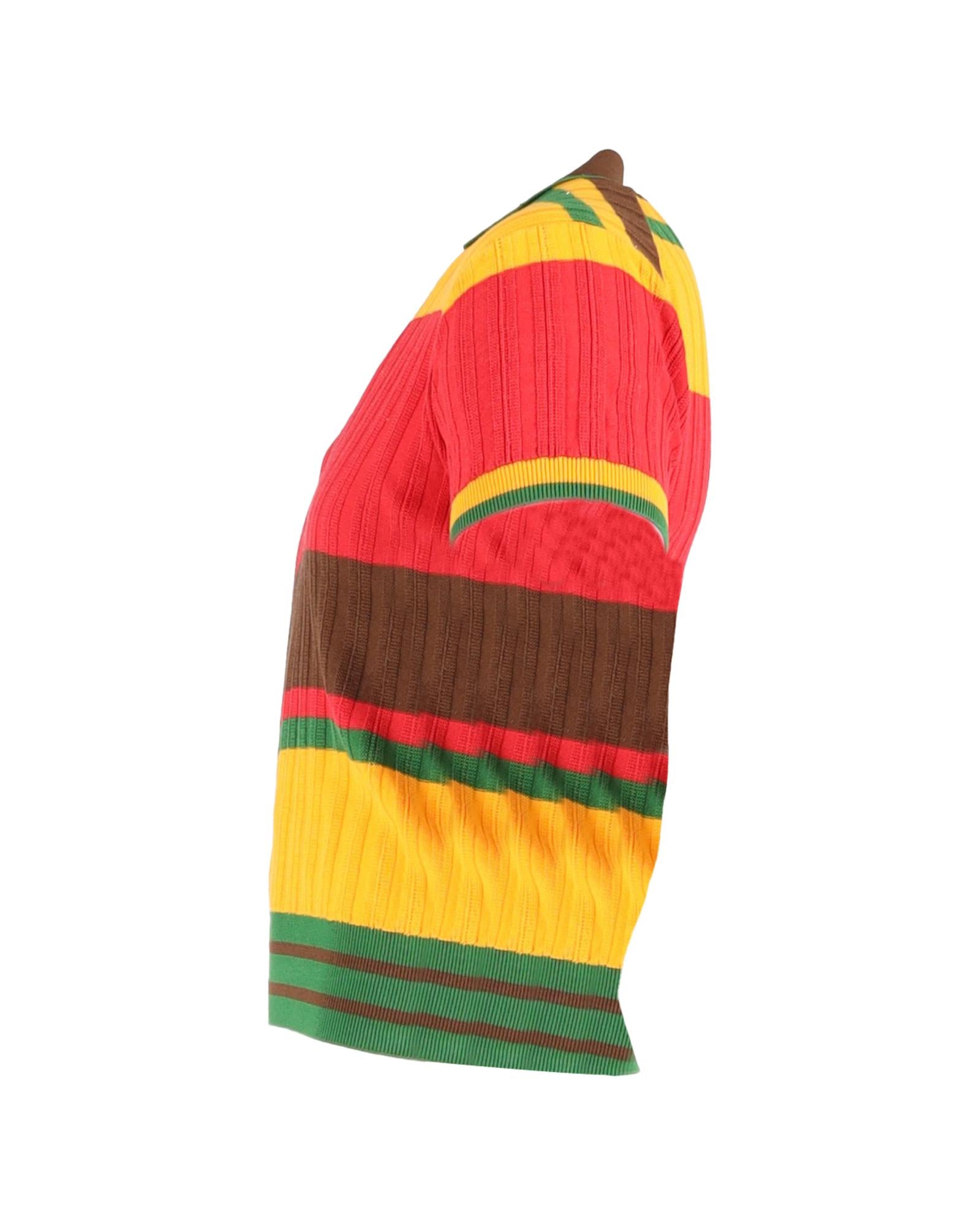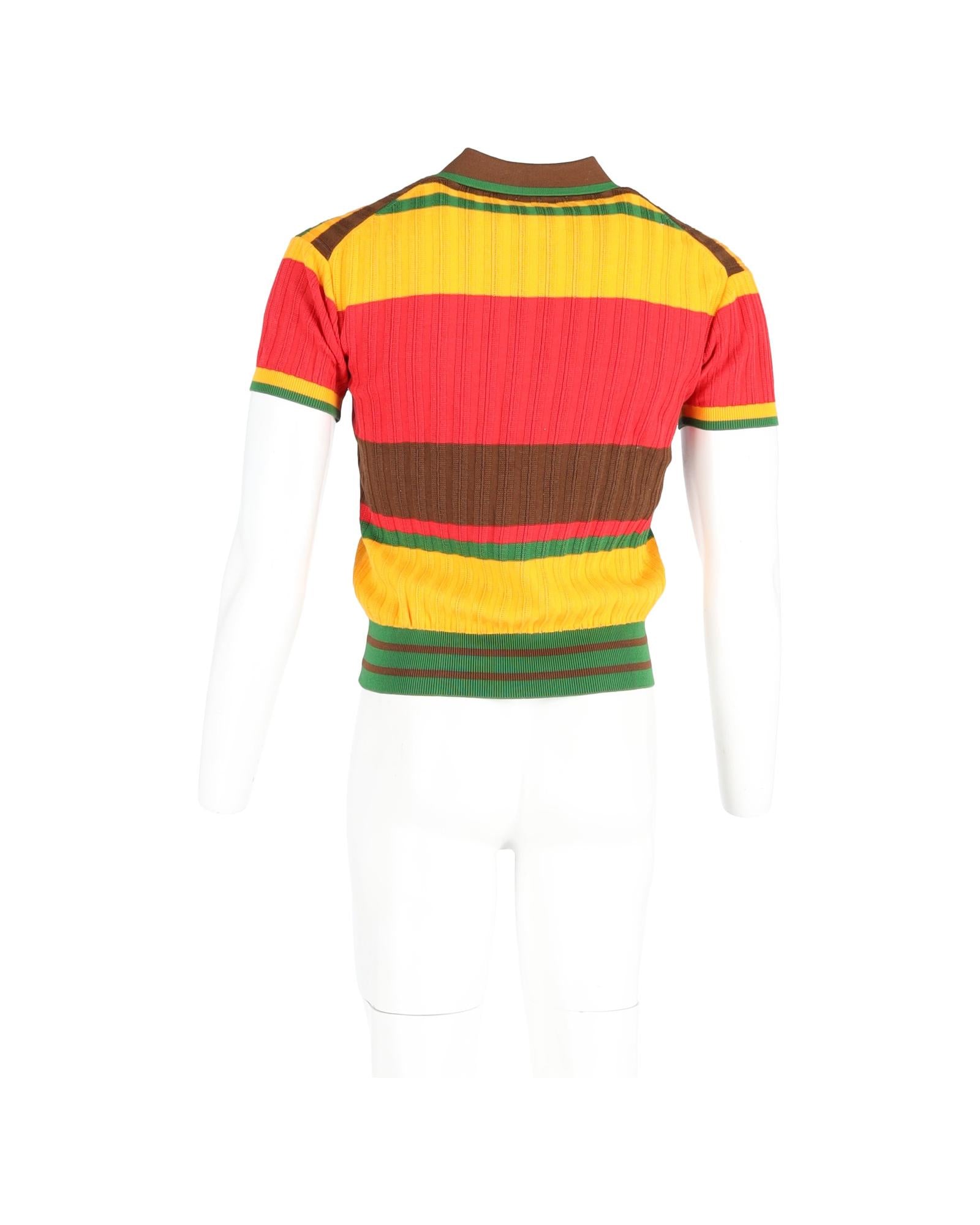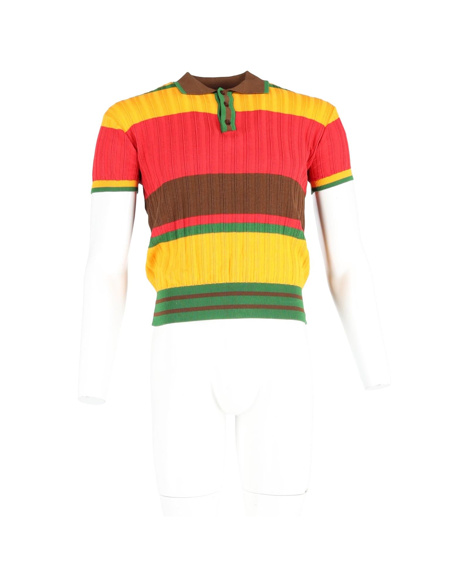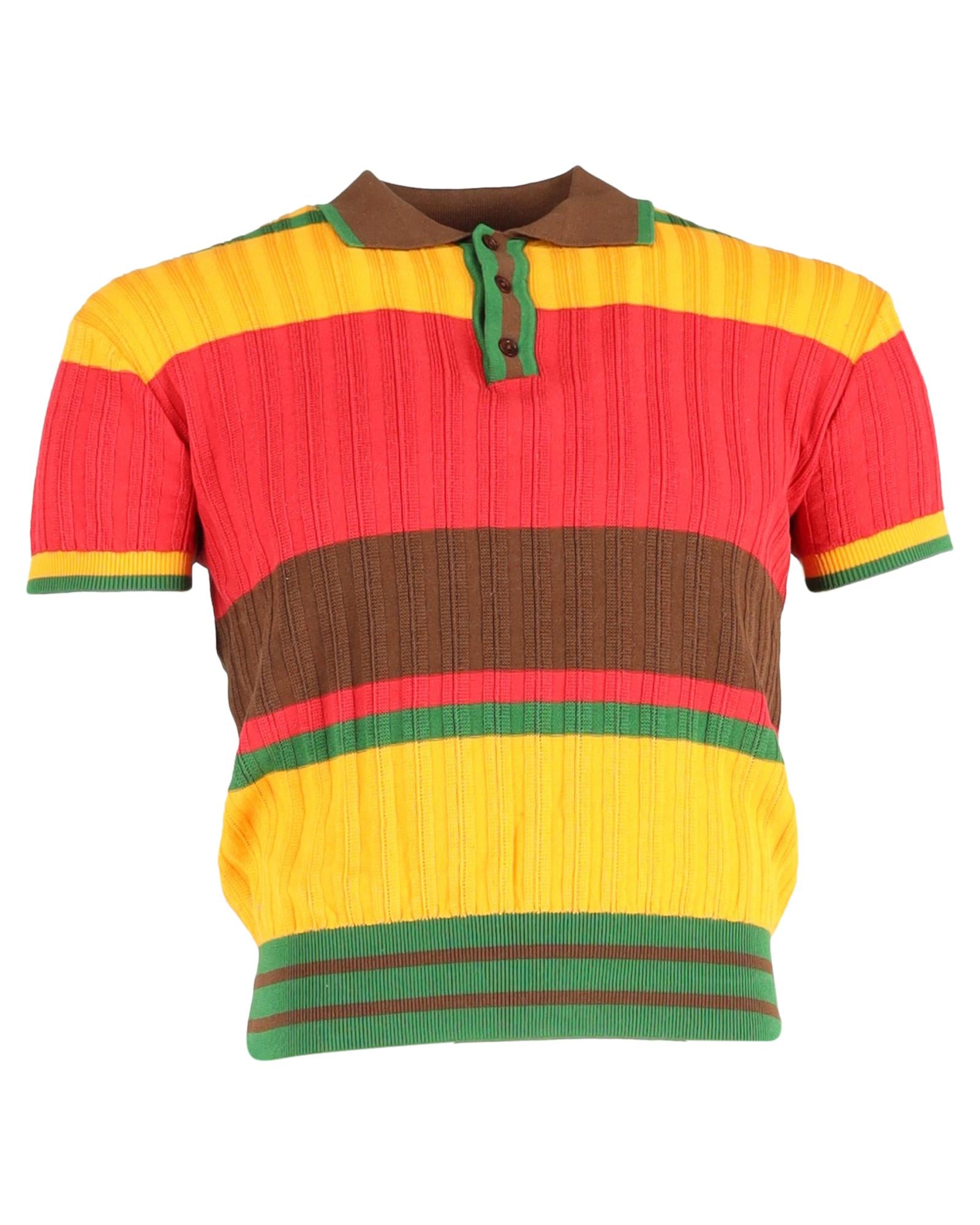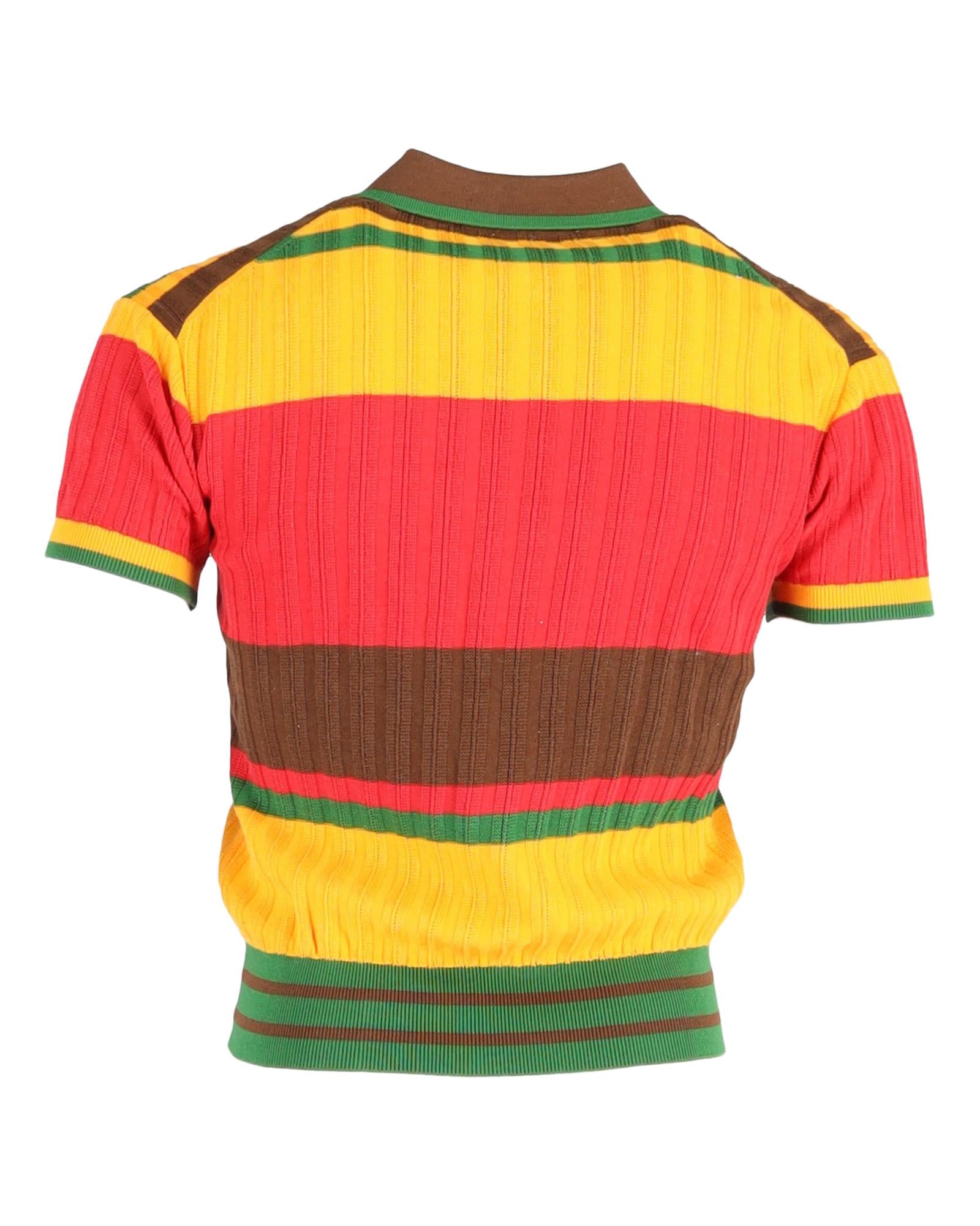 Colour-blocked Cotton Polo Shirt with Ribbed Collar