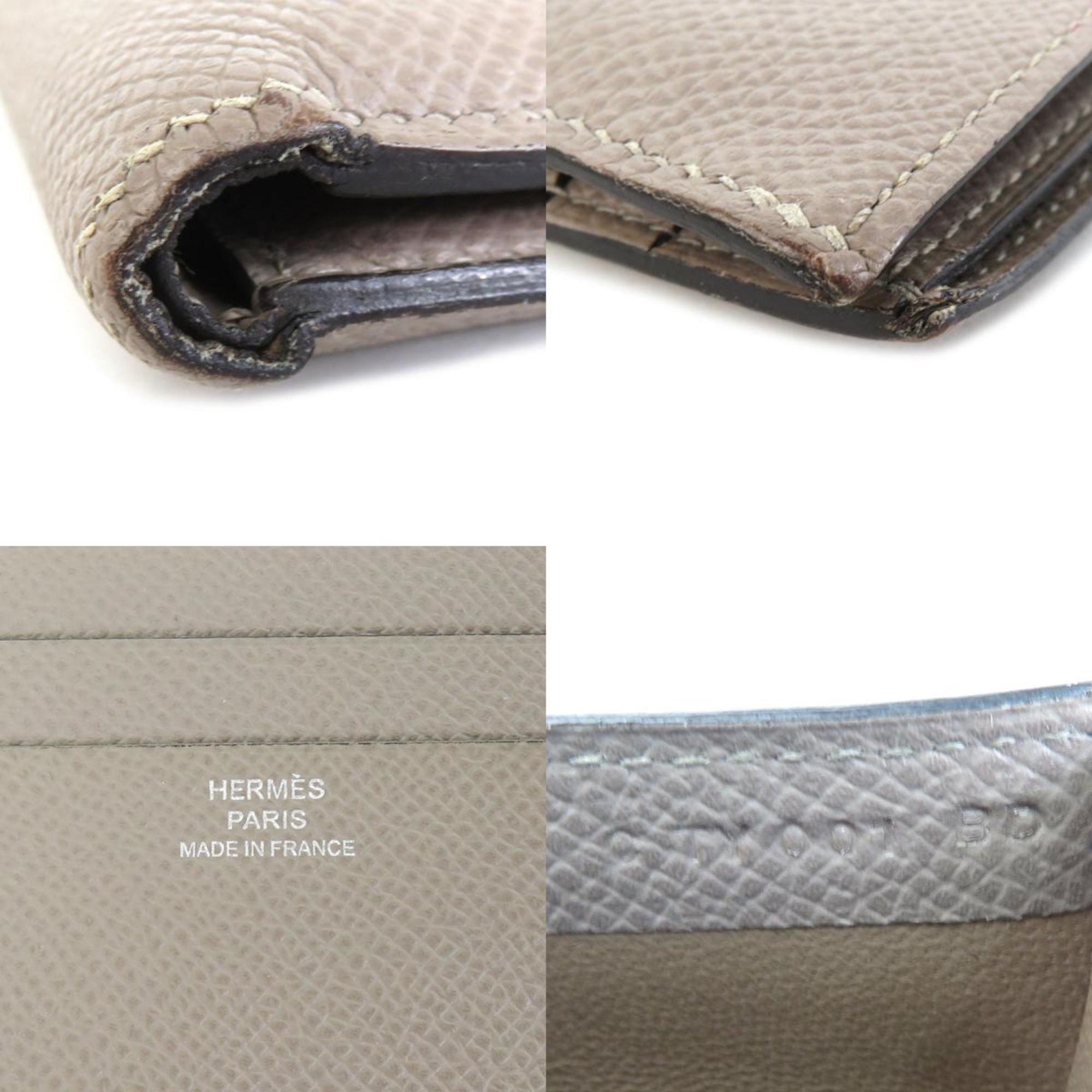Brand: Hermes Model: Color: Grey Material: Leather Inclusions: / Dimensions: 9.3cm x 11cm Serial number: NA Country of origin: France Condition: AB - good condition. Introducing the Hermes Long Bill Wallet a refined accessory designed for the modern man who values both style and functionality. Crafted from luxurious leather in a sophisticated beige hue this bi-fold wallet exudes understated elegance. Perfect for organizing your essentials with ease its spacious interior offers ample room for cards cash and more. Despite slight scratches dirt and traces of use the overall condition of this wallet is excellent maintaining its timeless appeal. However there are slight dents peelings and misshapen areas on the outside as well as a minor dent inside which do not detract from its functionality. Elevate your everyday carry with the classic sophistication of the Hermes Long Bill Wallet. We recommend that you look at all the pictures before making your purchase to ensure that you are satisfied with the condition of the item.