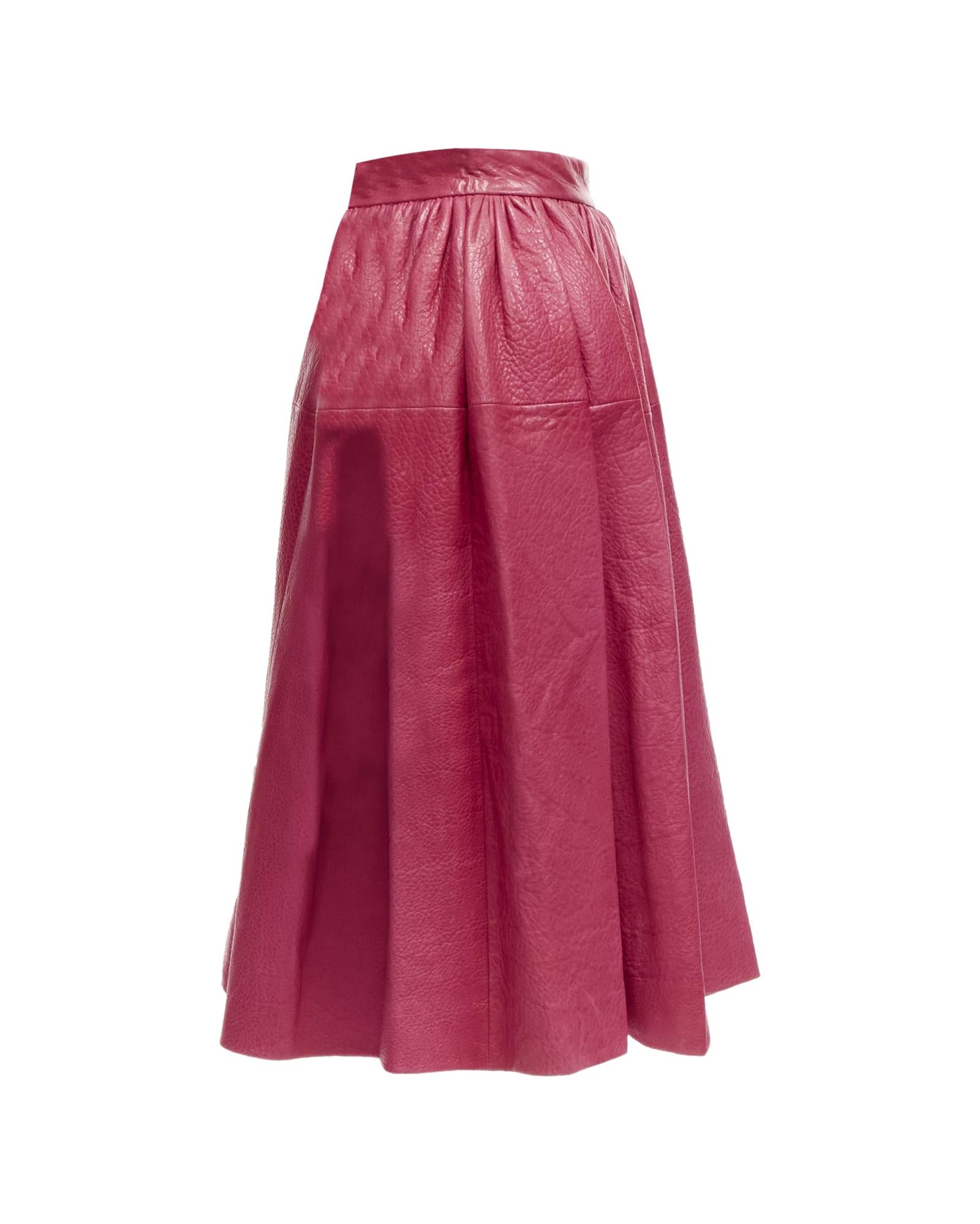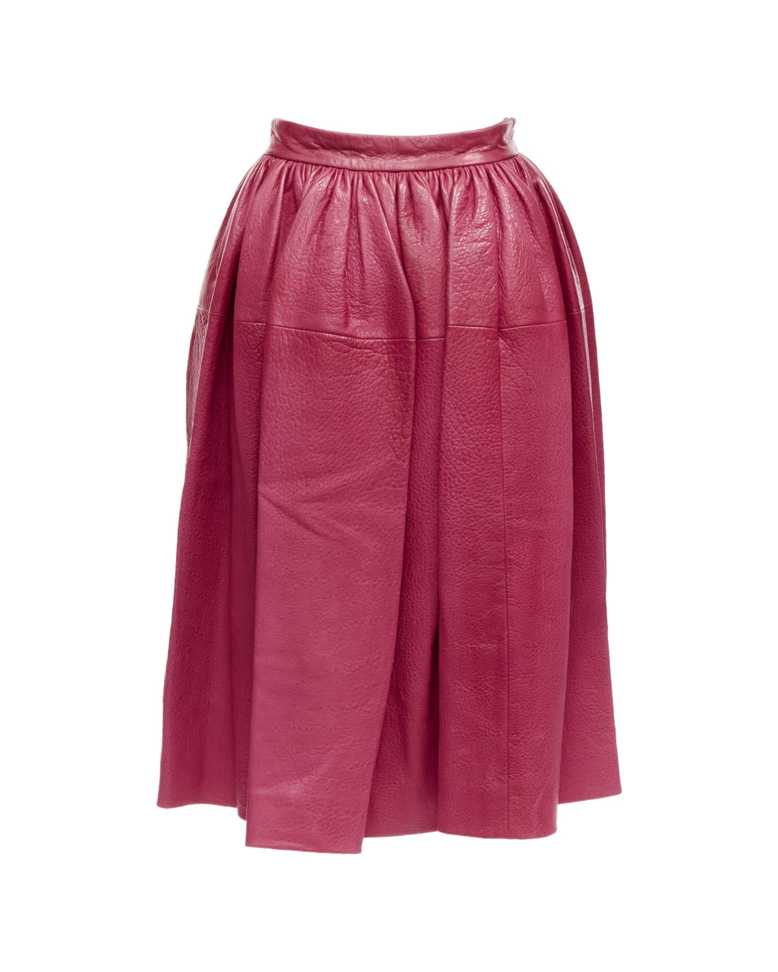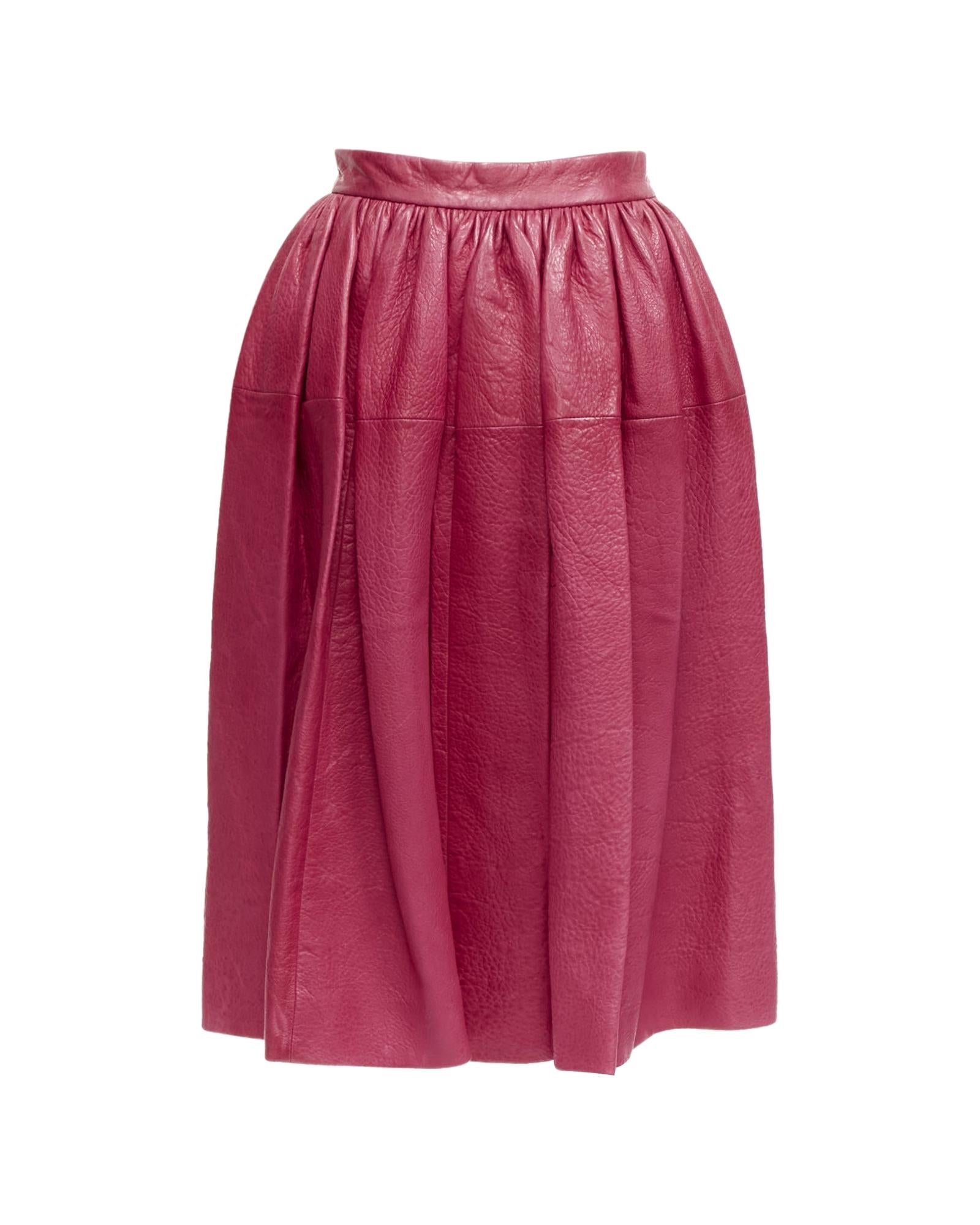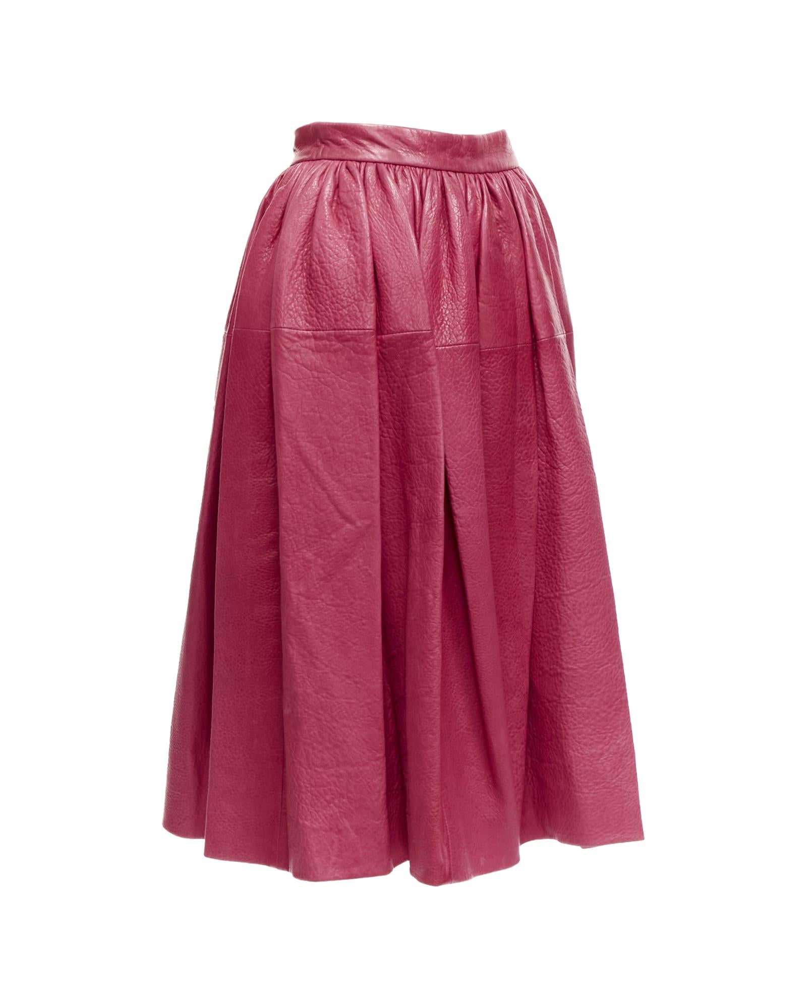 Pre-owned Elegant Leather Midi Skirt with Pleated Detailing for Fashionable Style