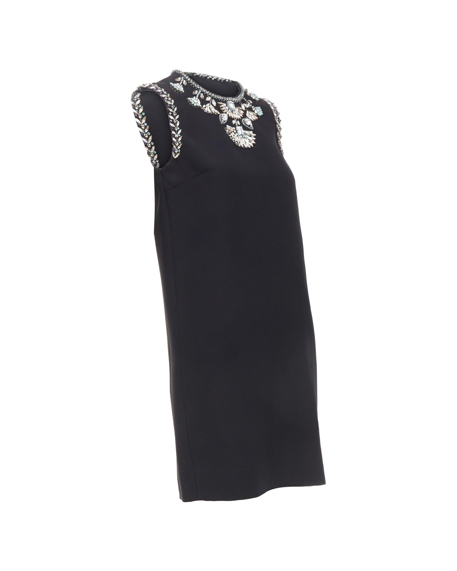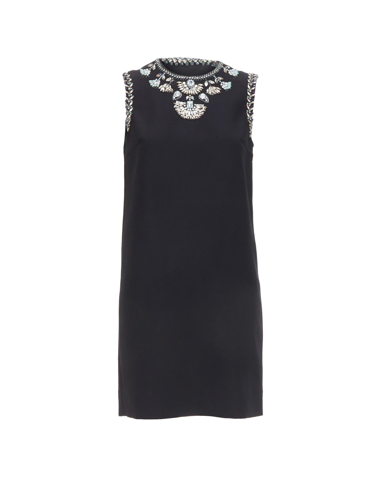 Pre-owned Sleeveless Dress with Jewel Embellishments and High Neckline