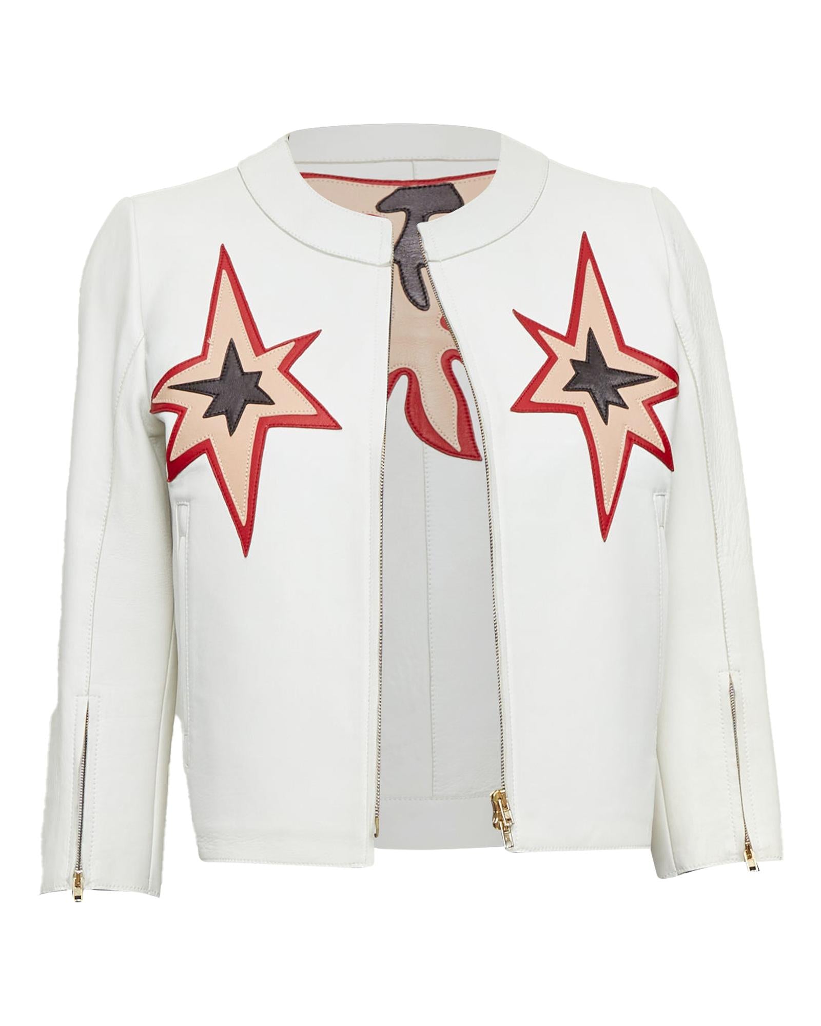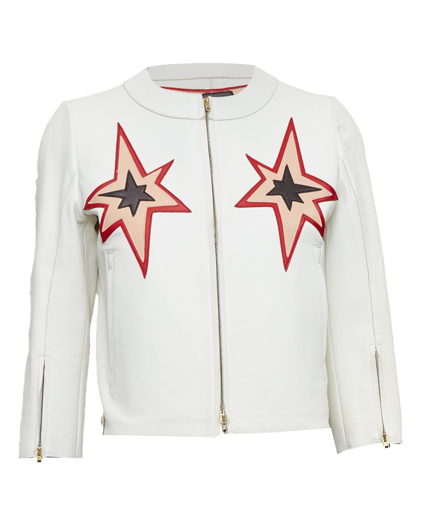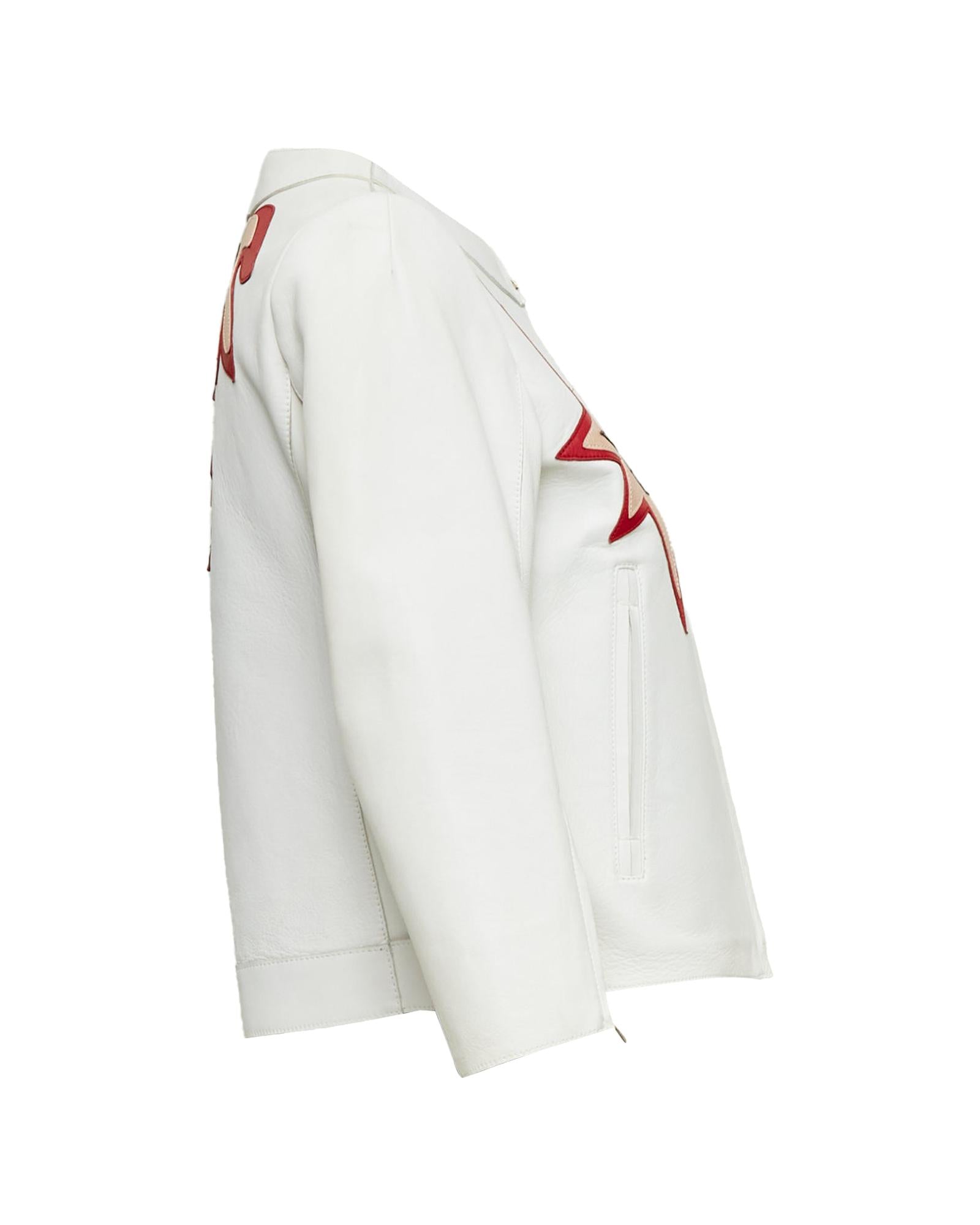 Pre-owned Collared Jacket with Decorative Accents and Long Sleeves