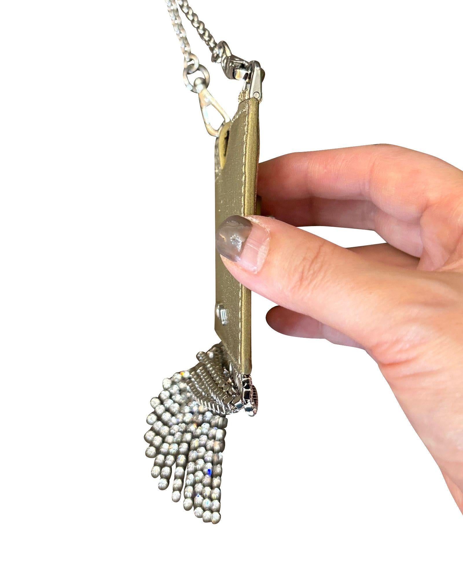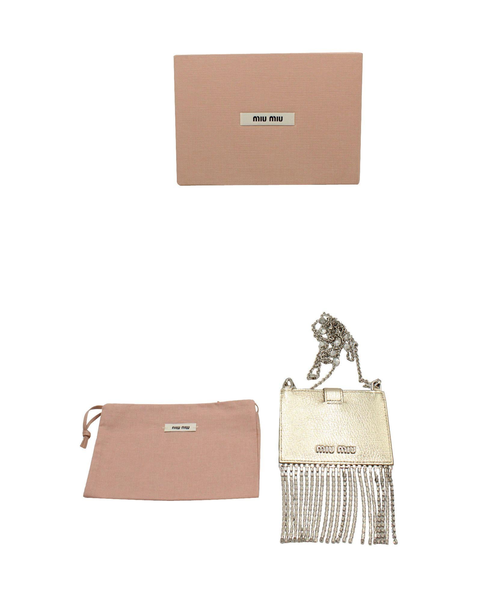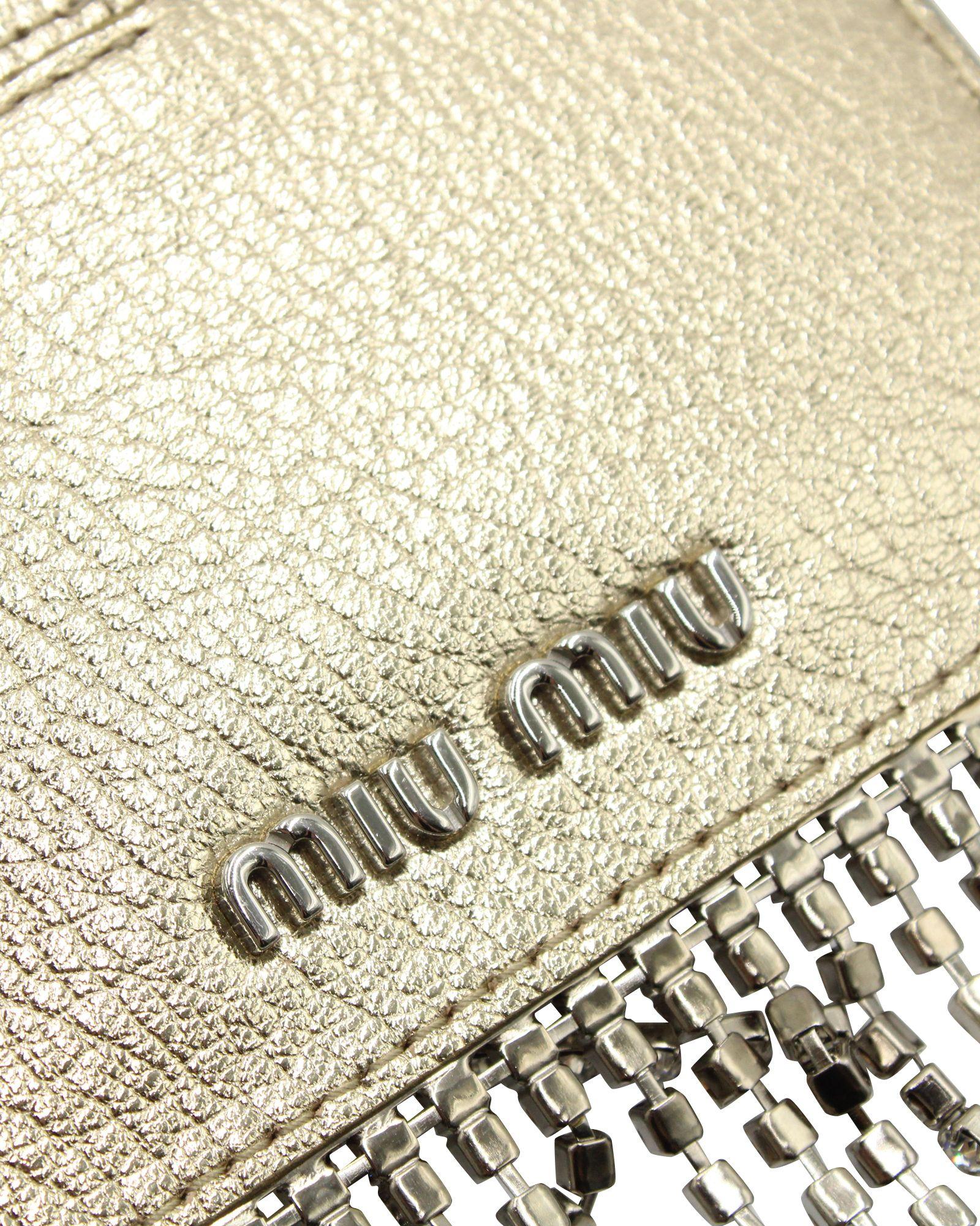 - Luxurious Miu Miu Madras Card Holder with Crystal Fringe in Silver Goatskin Leather Made from high