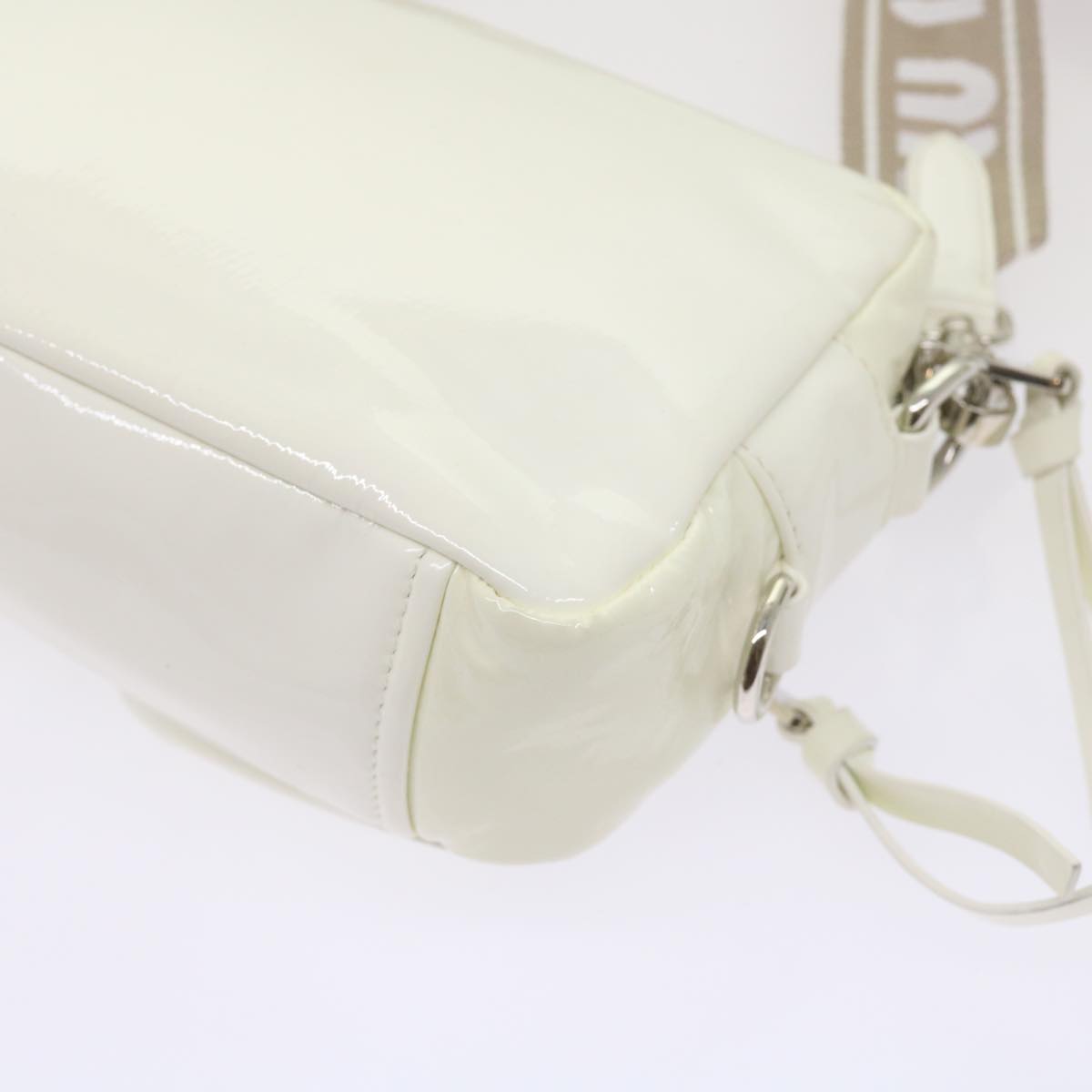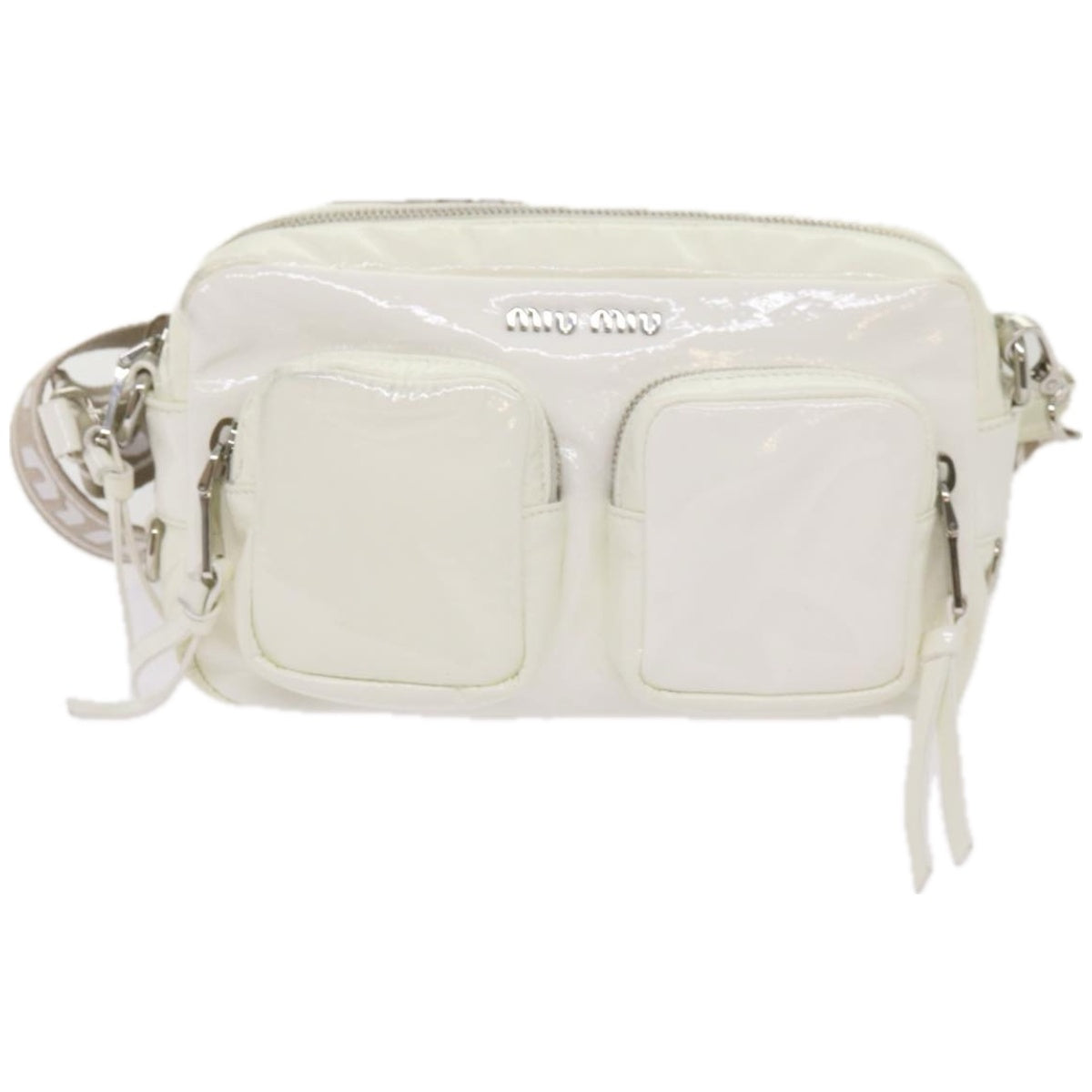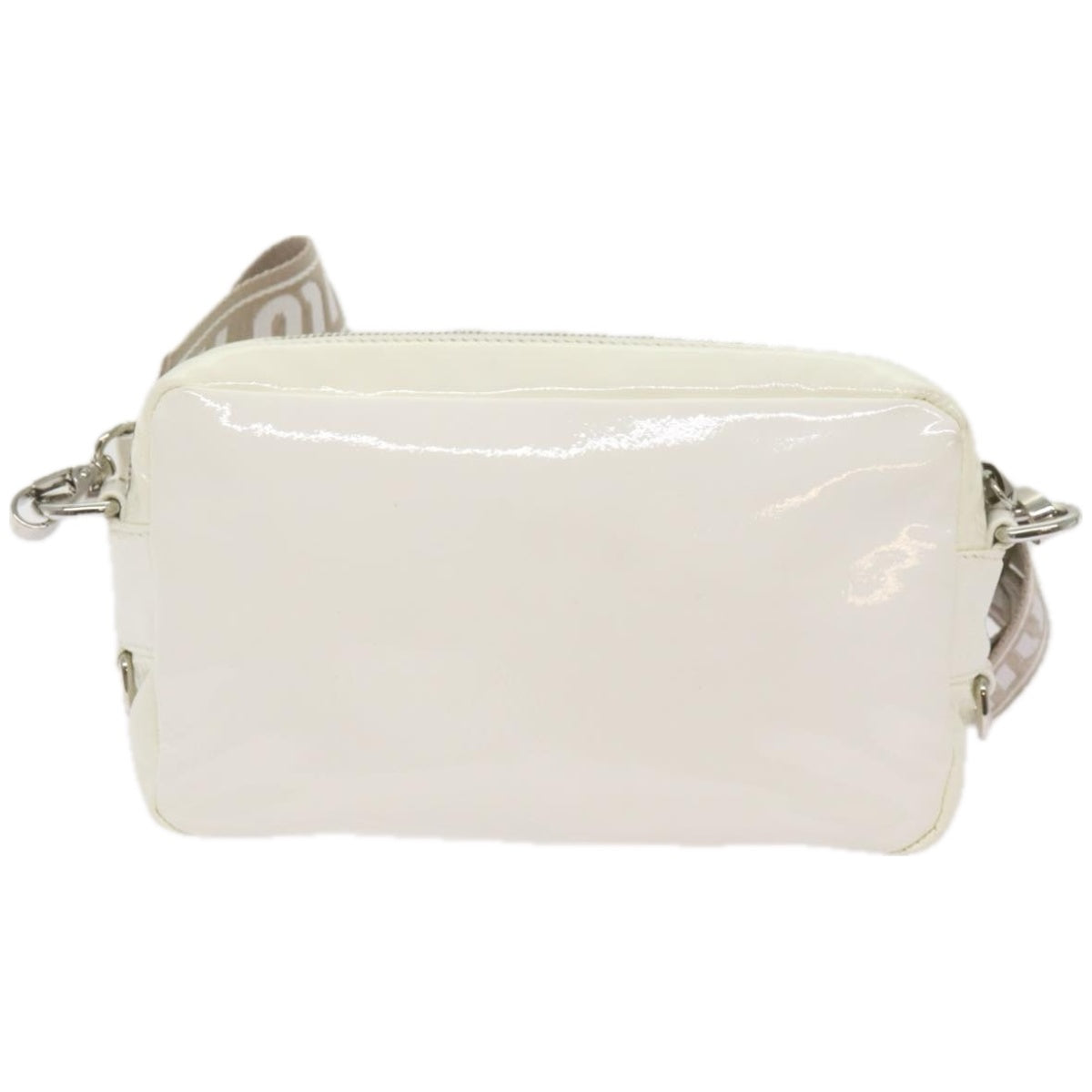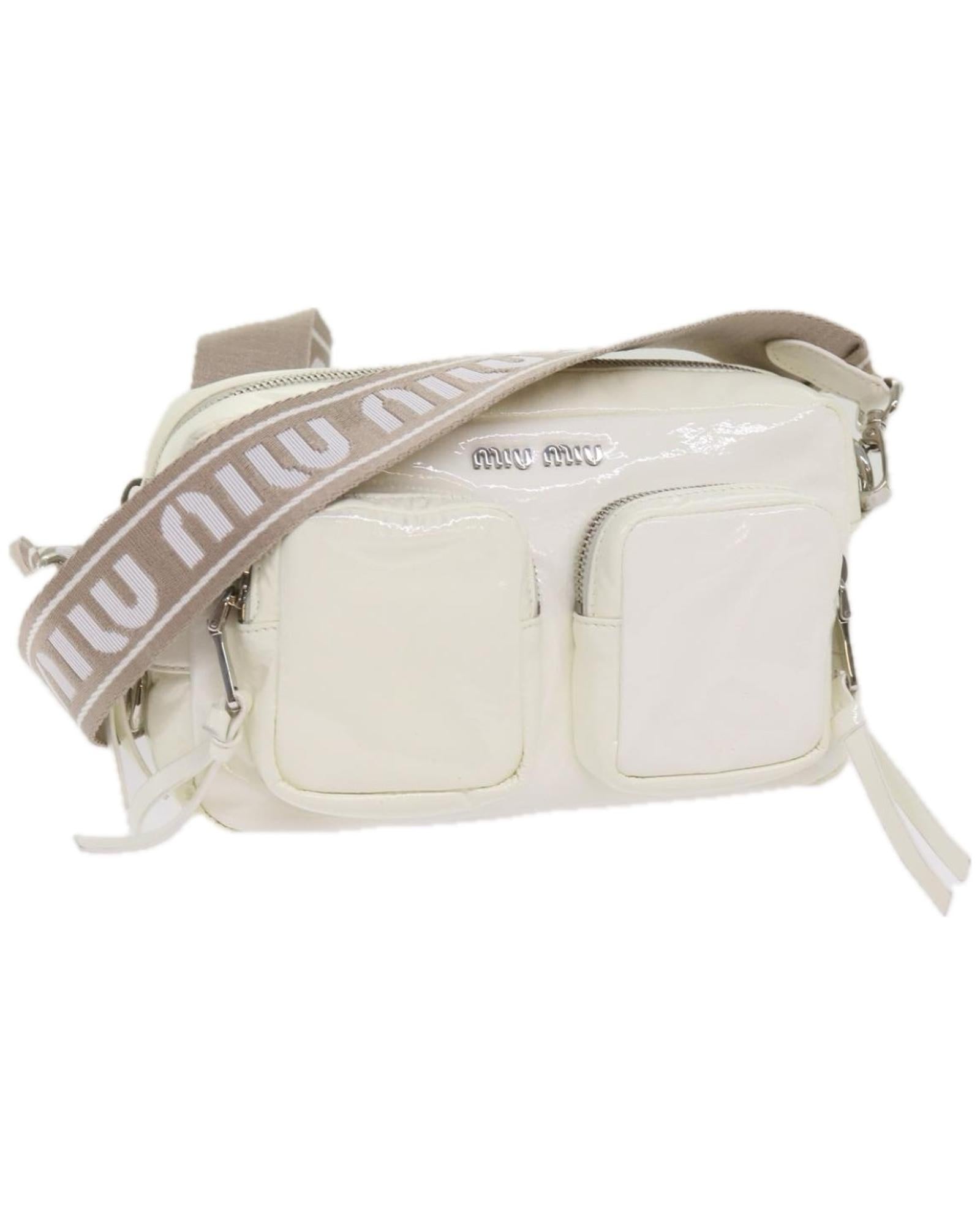 Miu Miu presents its exquisite Shoulder Bag in pristine White Patent Leather a perfect blend of sophistication and modern allure. Crafted with meticulous attention to detail this shoulder bag exudes elegance making it an essential accessory for the contemporary fashionista. The glossy white patent leather adds a touch of luxury to the sleek silhouette while the versatile design makes it suitable for both casual and formal occasions. Featuring Miu Miu's signature logo detailing and sleek hardware this shoulder bag effortlessly combines style with practicality.