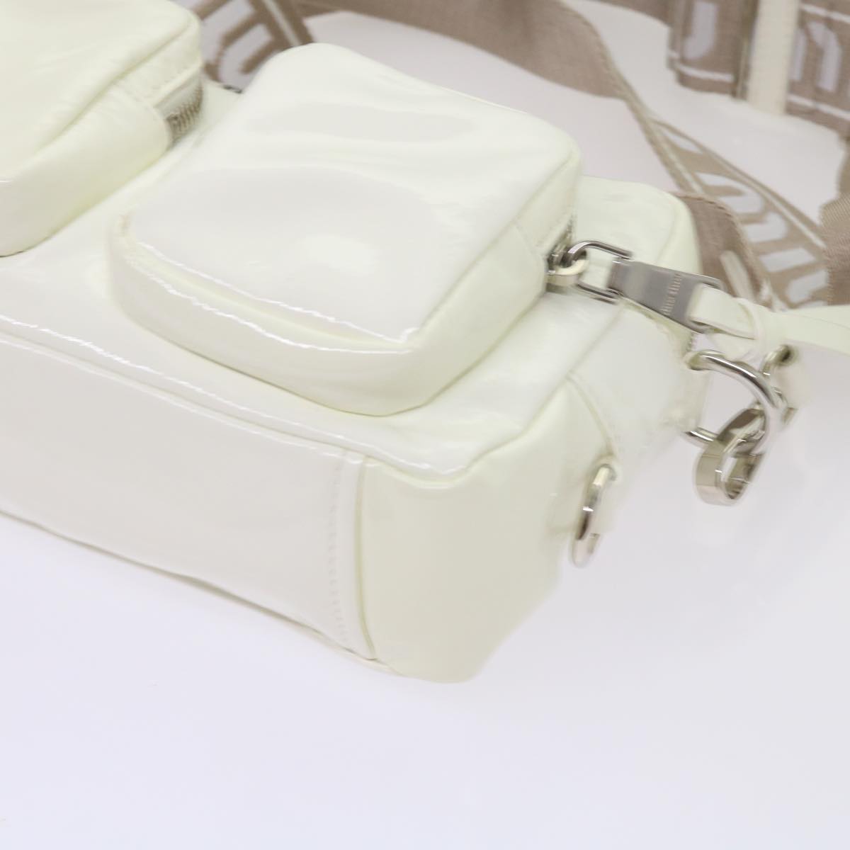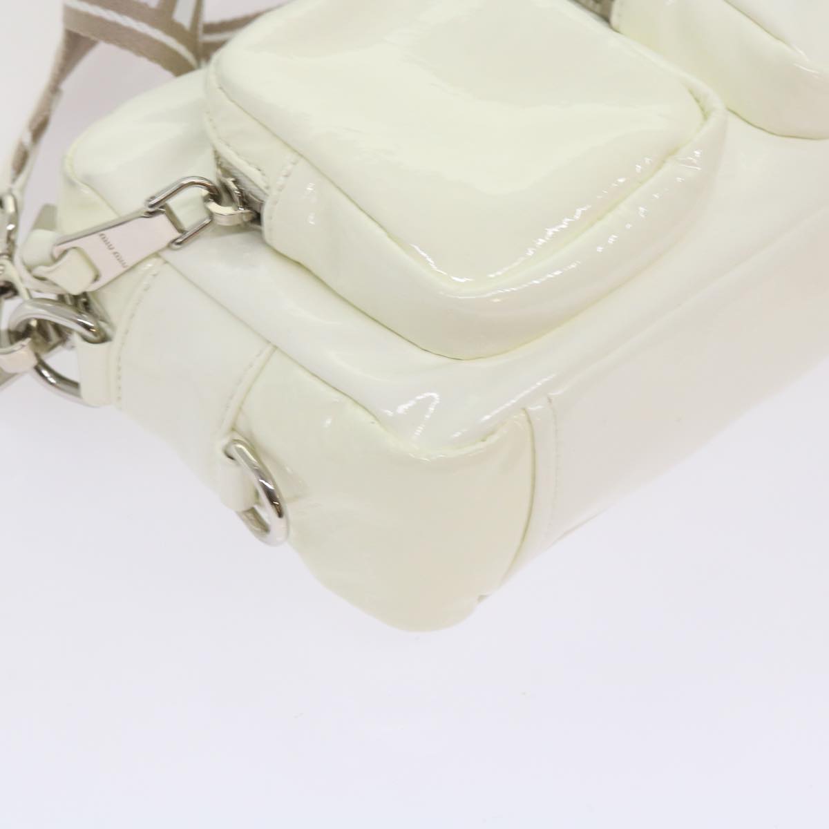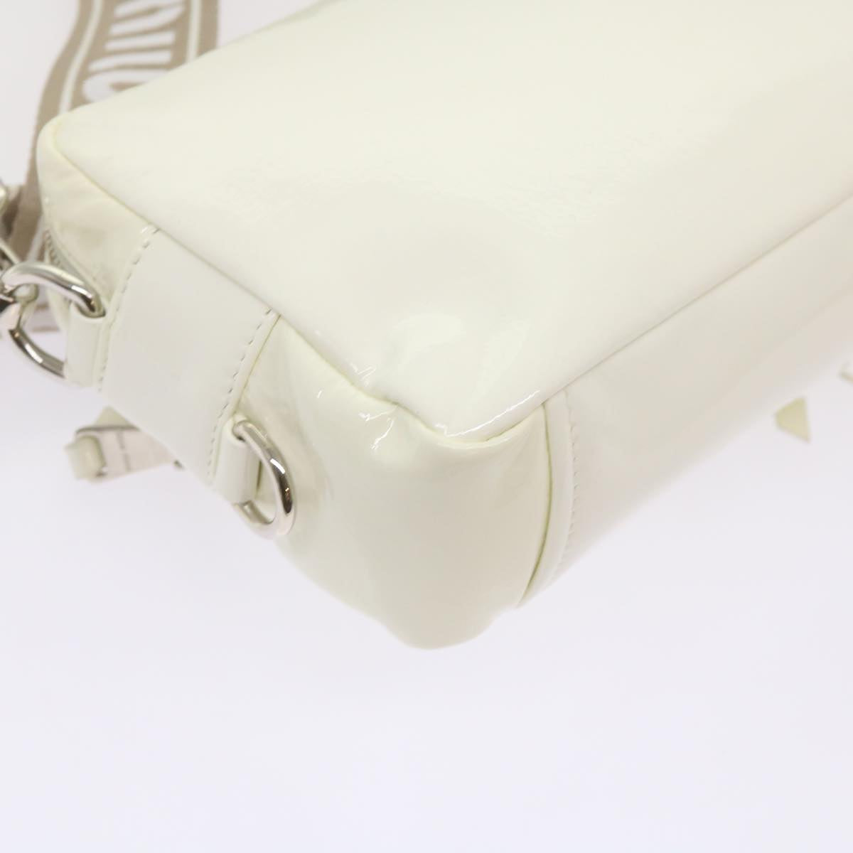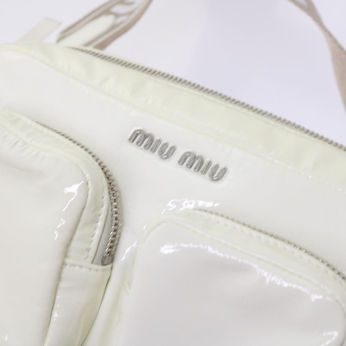 Miu Miu presents its exquisite Shoulder Bag in pristine White Patent Leather a perfect blend of sophistication and modern allure. Crafted with meticulous attention to detail this shoulder bag exudes elegance making it an essential accessory for the contemporary fashionista. The glossy white patent leather adds a touch of luxury to the sleek silhouette while the versatile design makes it suitable for both casual and formal occasions. Featuring Miu Miu's signature logo detailing and sleek hardware this shoulder bag effortlessly combines style with practicality.