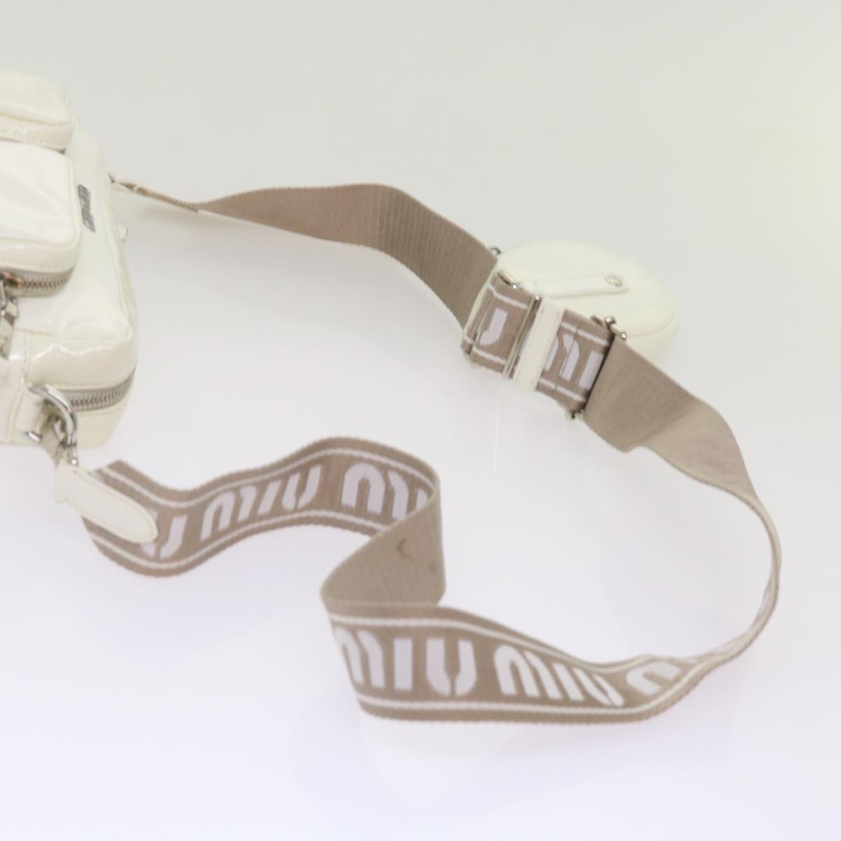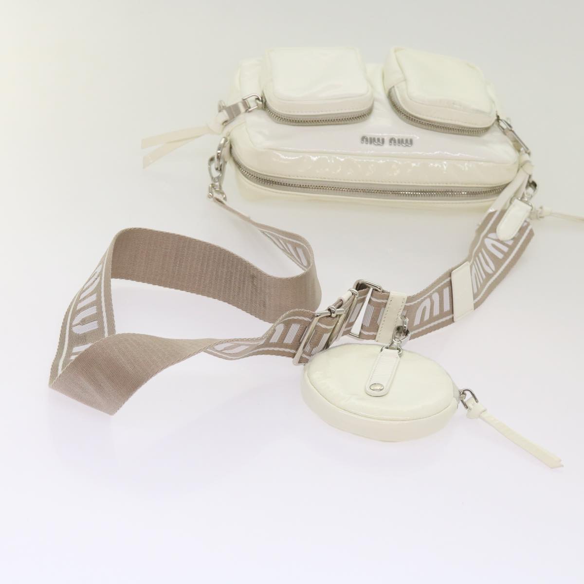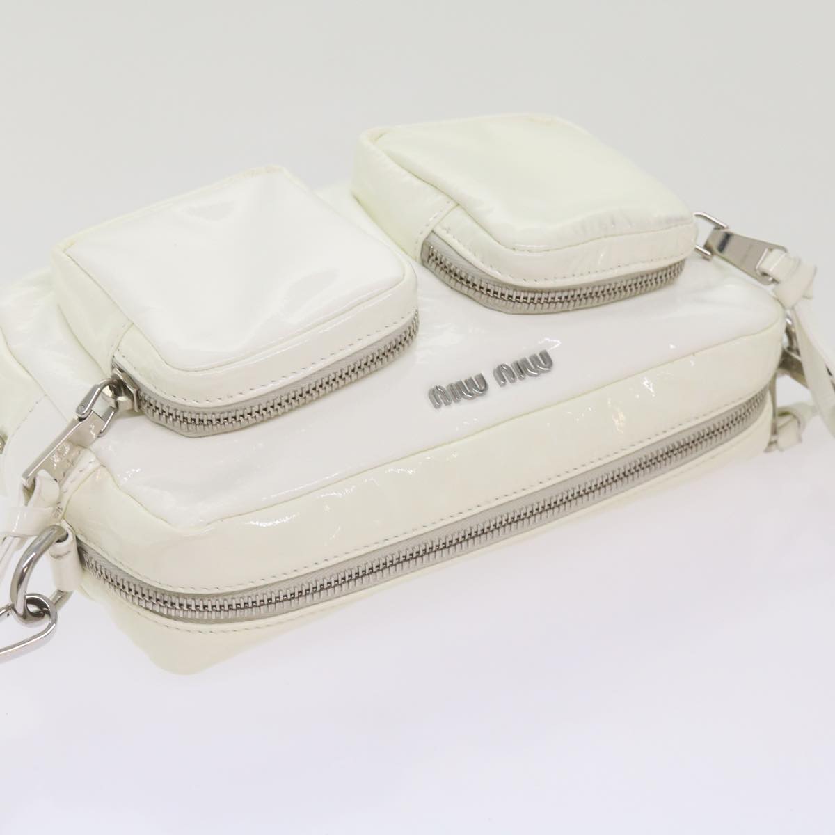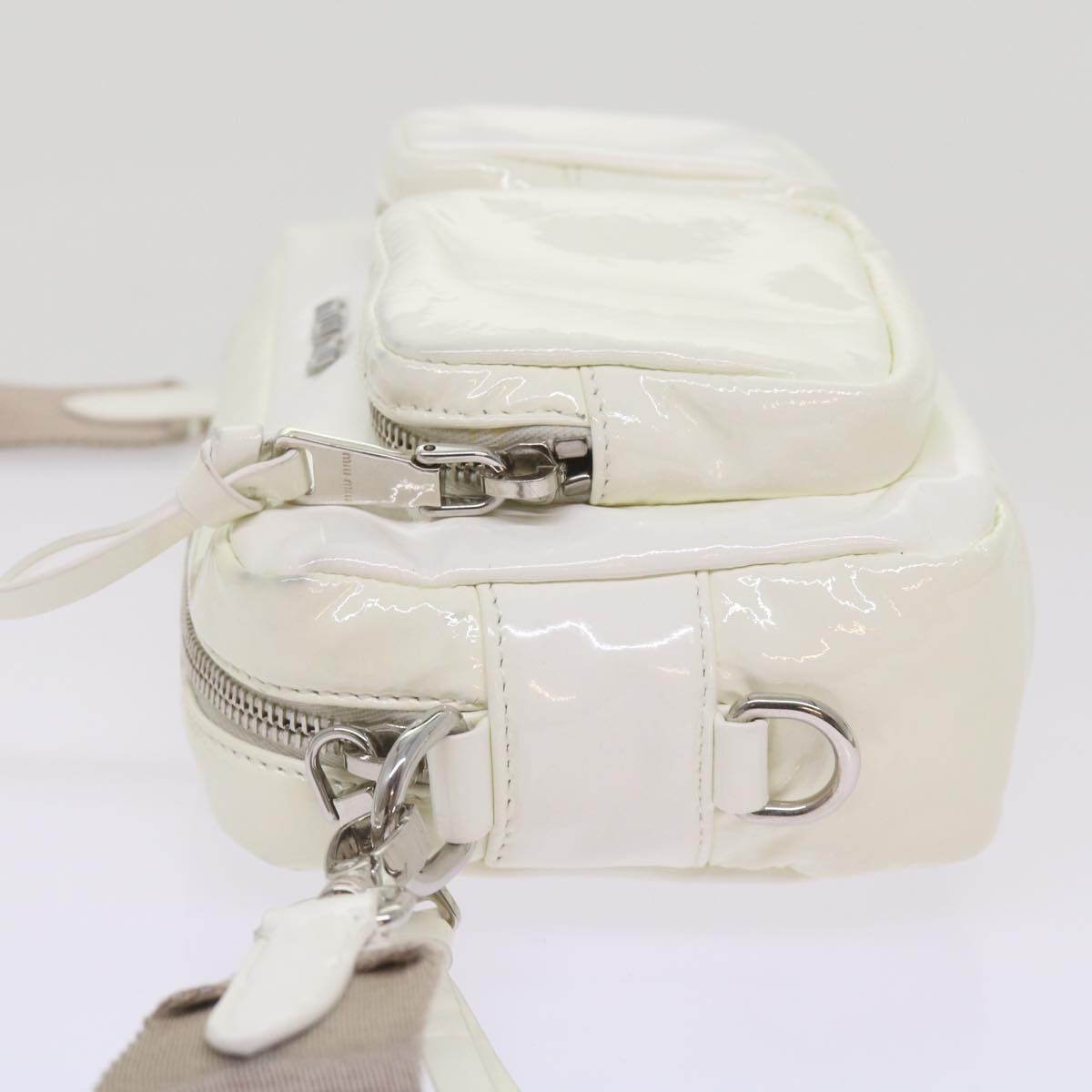Miu Miu presents its exquisite Shoulder Bag in pristine White Patent Leather a perfect blend of sophistication and modern allure. Crafted with meticulous attention to detail this shoulder bag exudes elegance making it an essential accessory for the contemporary fashionista. The glossy white patent leather adds a touch of luxury to the sleek silhouette while the versatile design makes it suitable for both casual and formal occasions. Featuring Miu Miu's signature logo detailing and sleek hardware this shoulder bag effortlessly combines style with practicality.