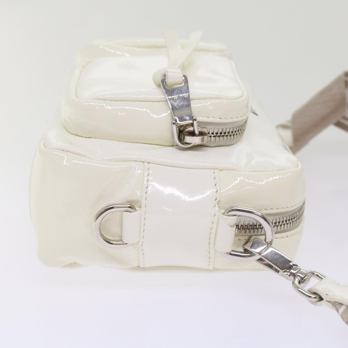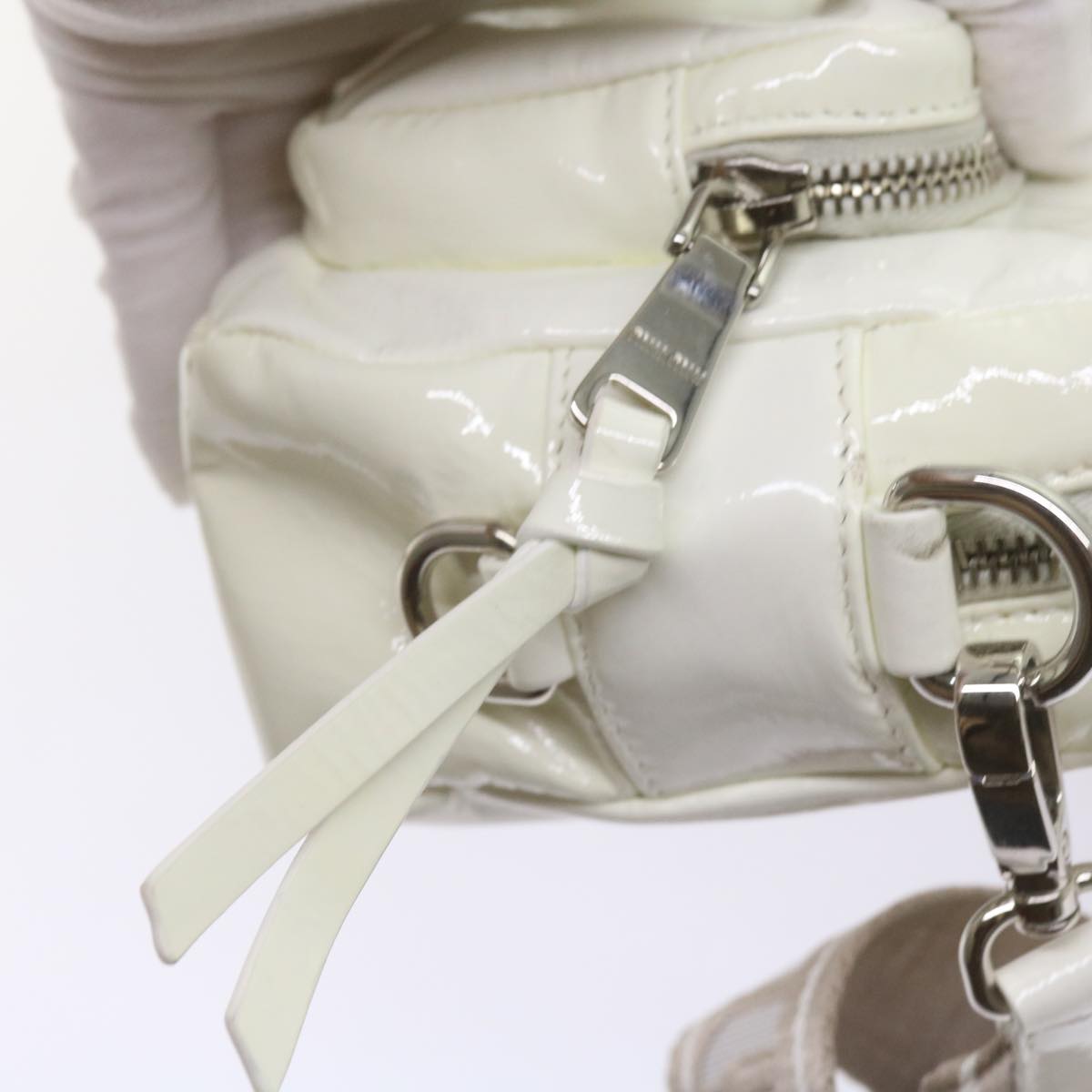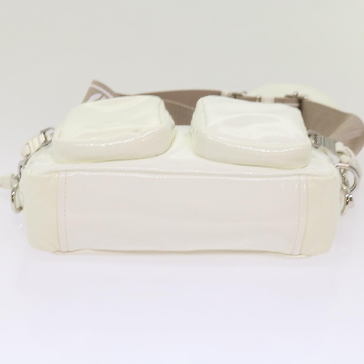 White Patent Leather Shoulder Bag with Logo Detailing and Sleek Hardware