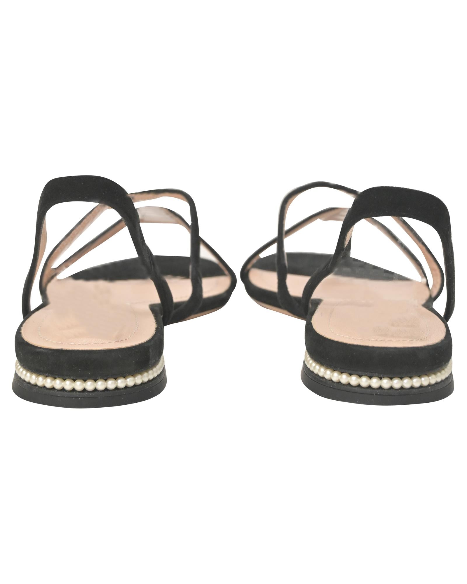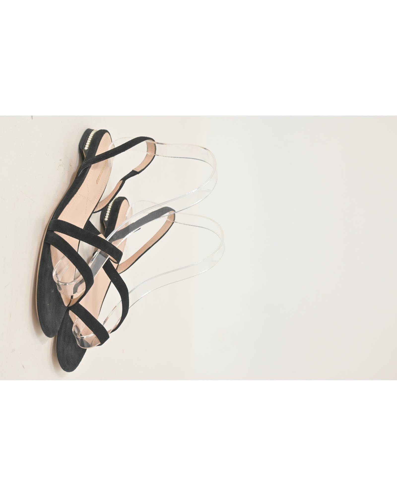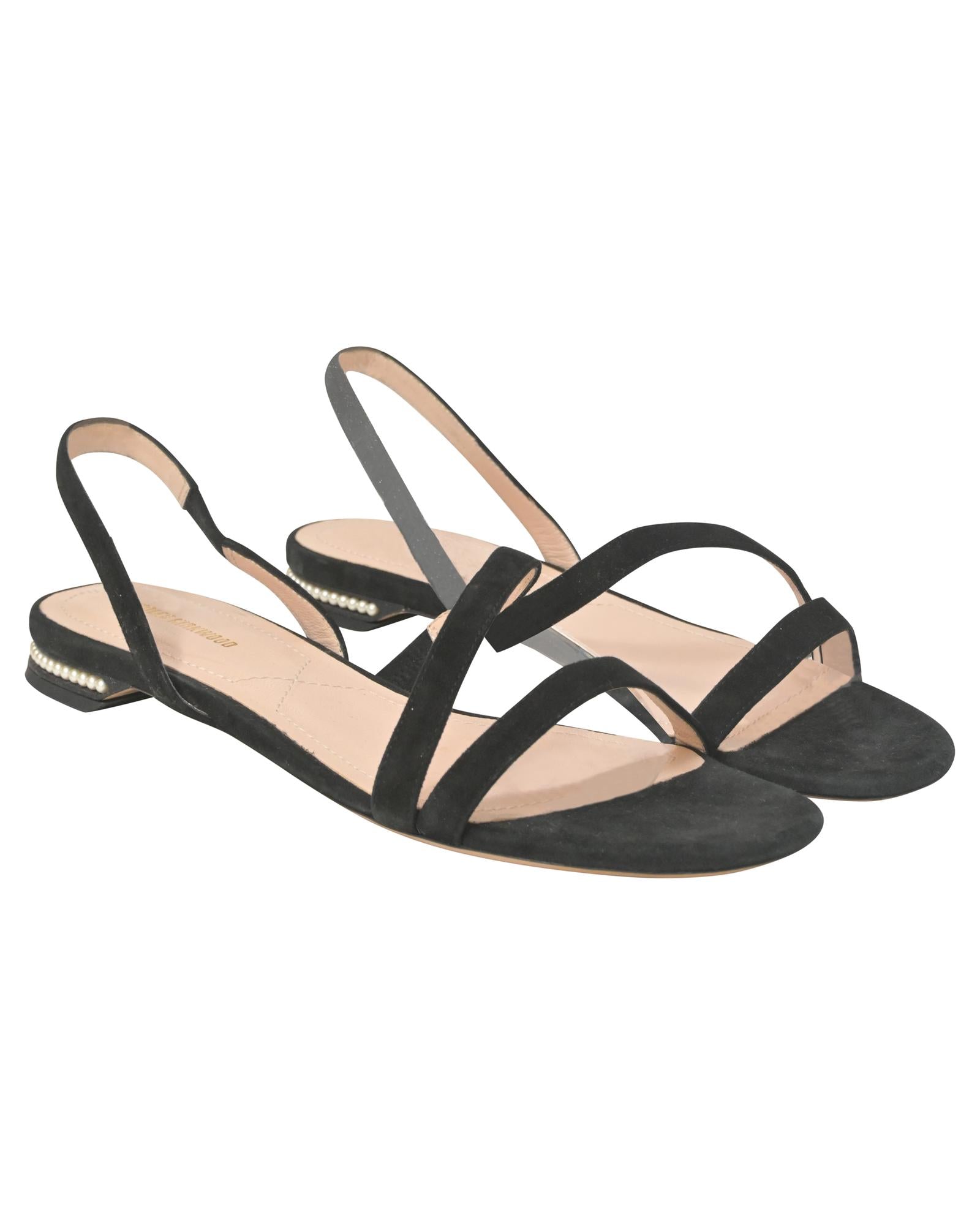 Pre-owned Cassia PearlEmbellished Suede Sandals