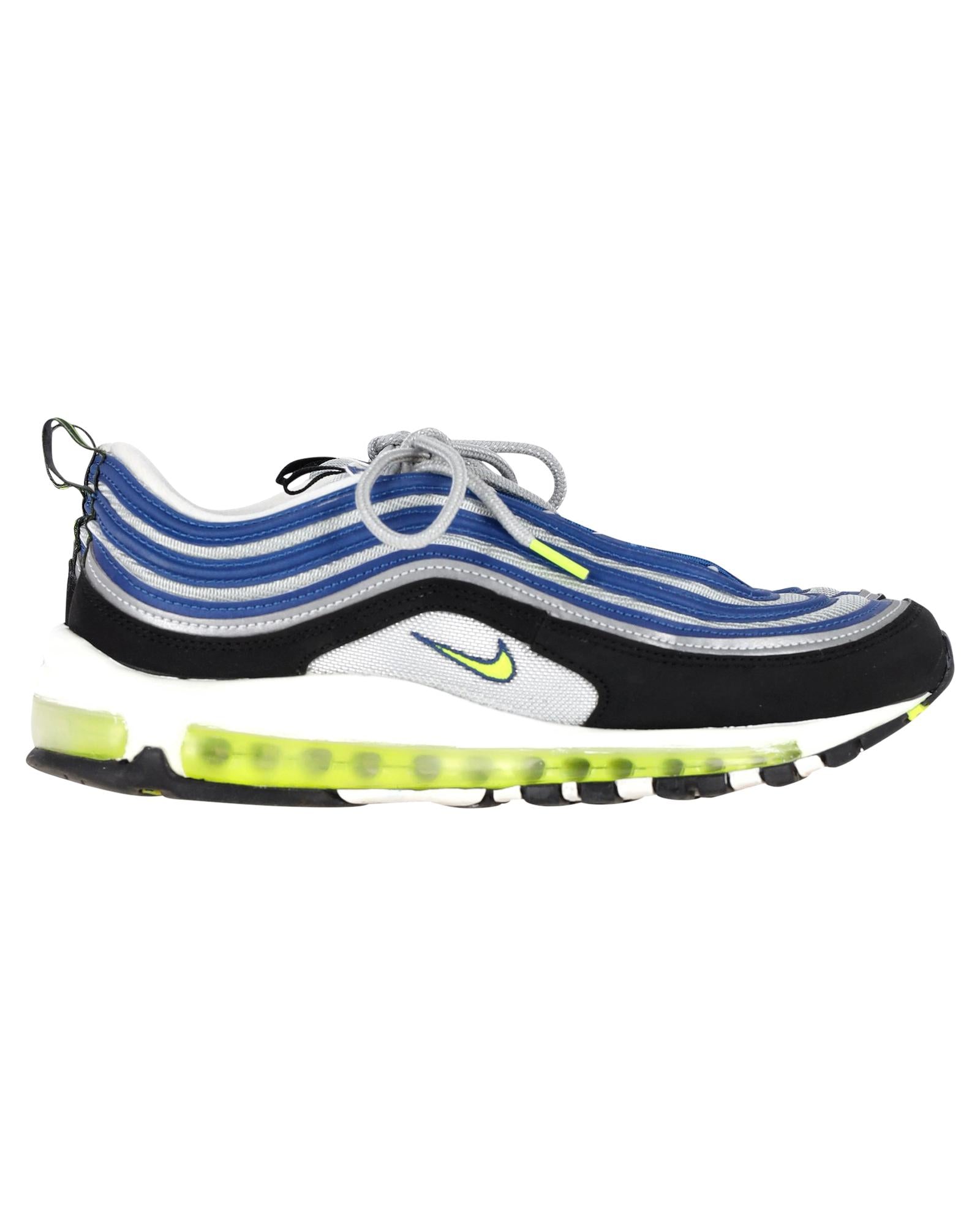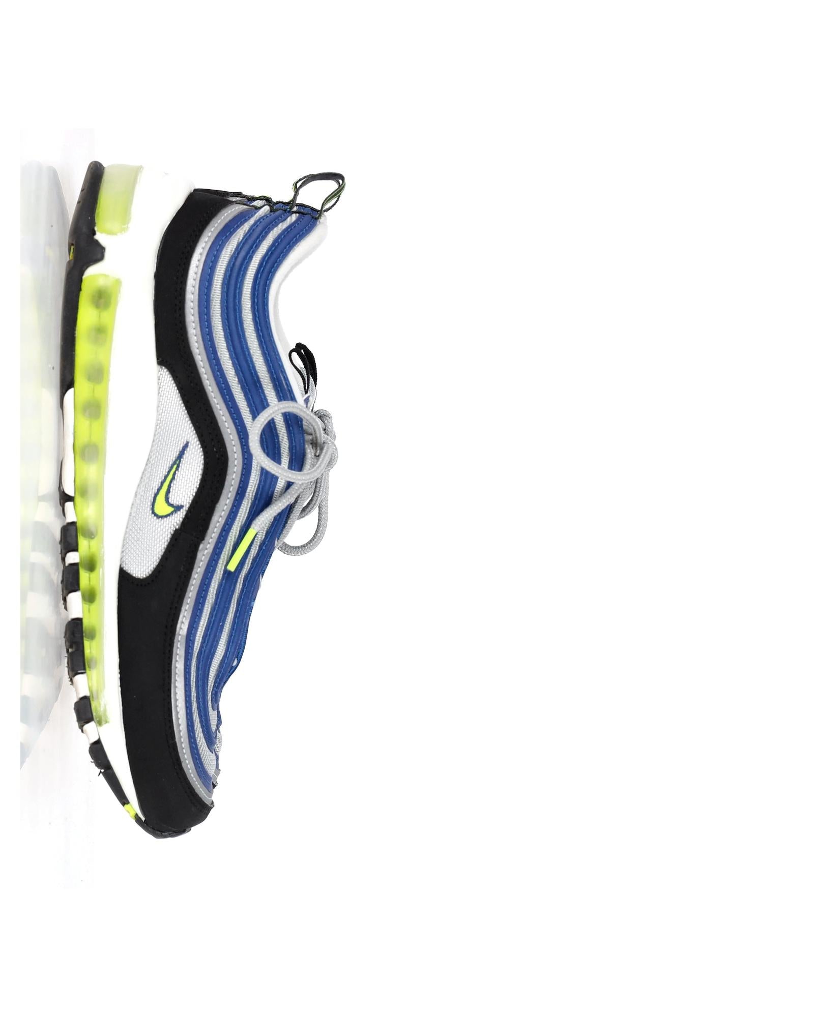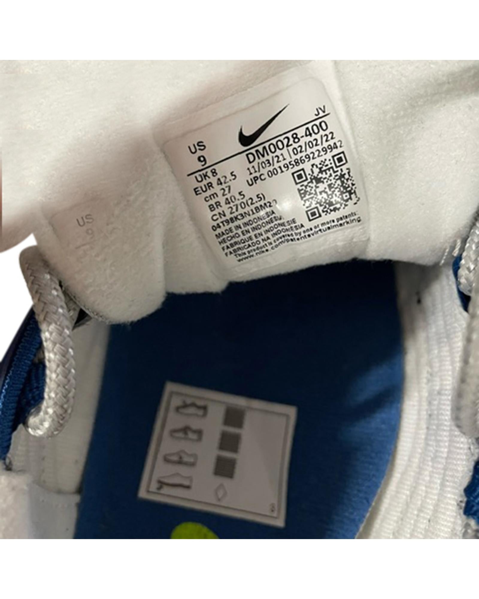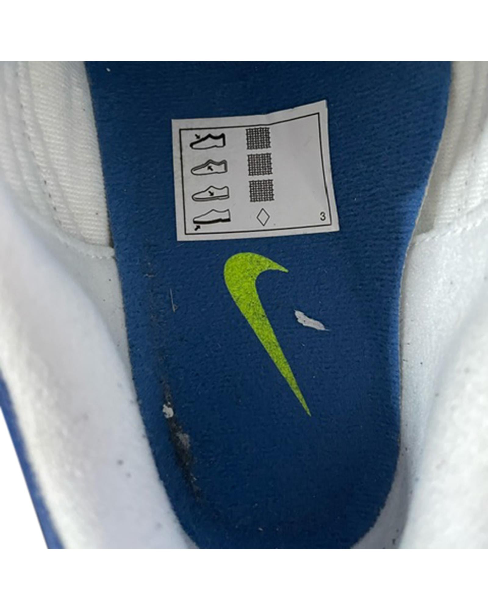 • Sky blue and fluorescent yellow leather with signature Swoosh logo