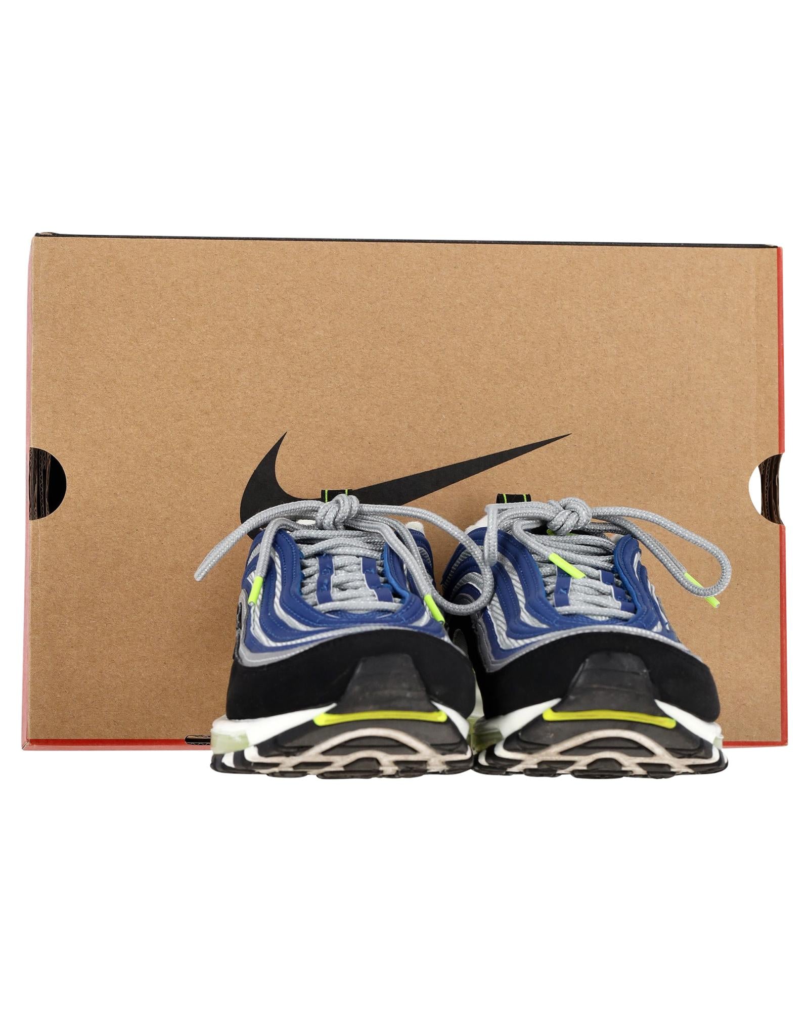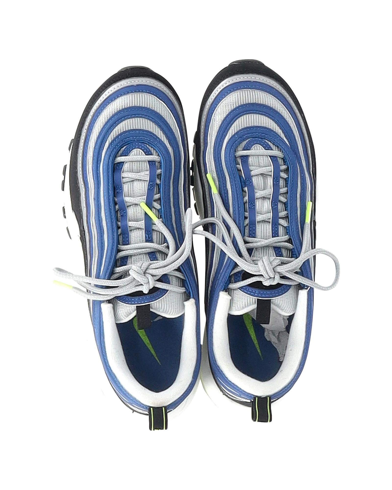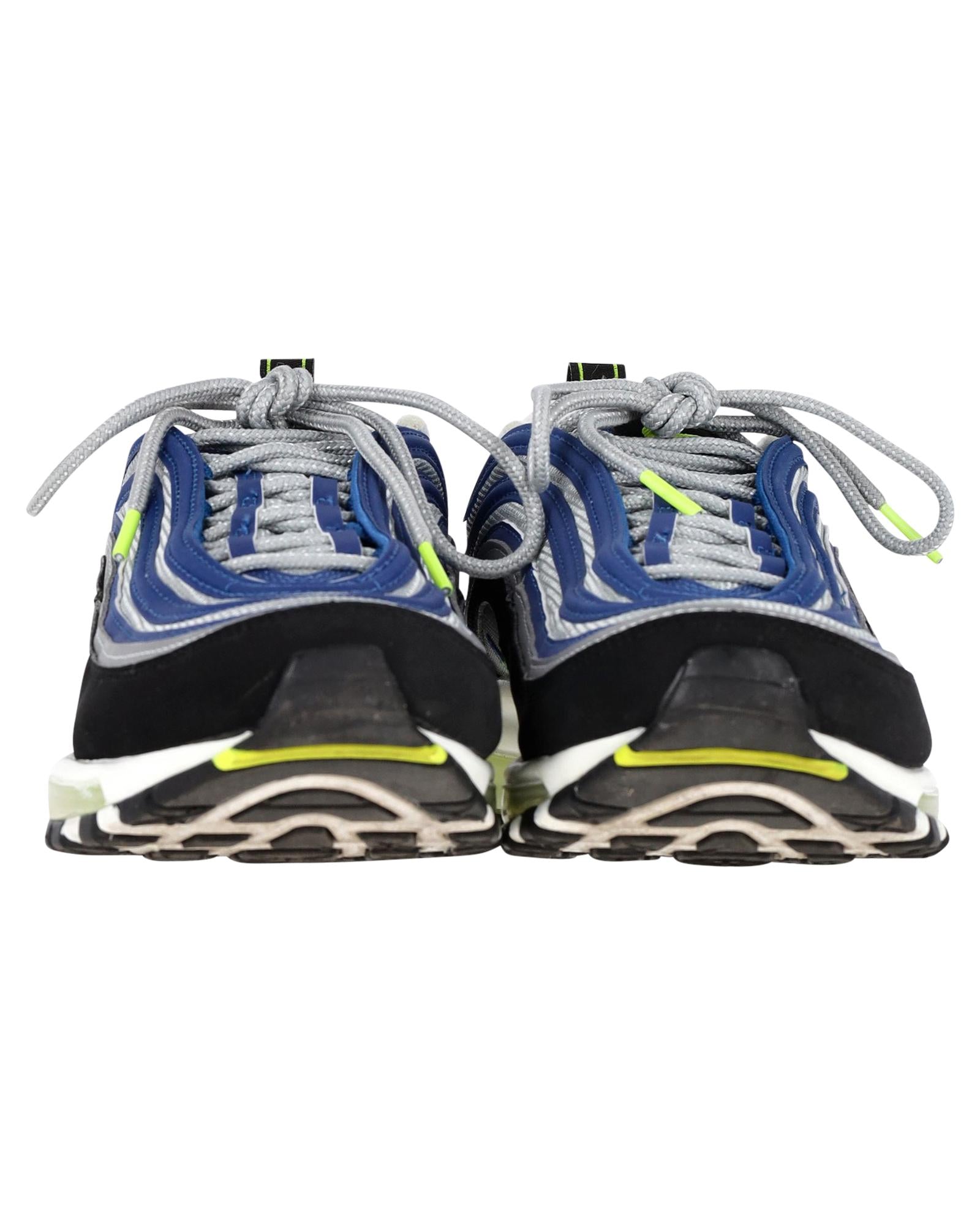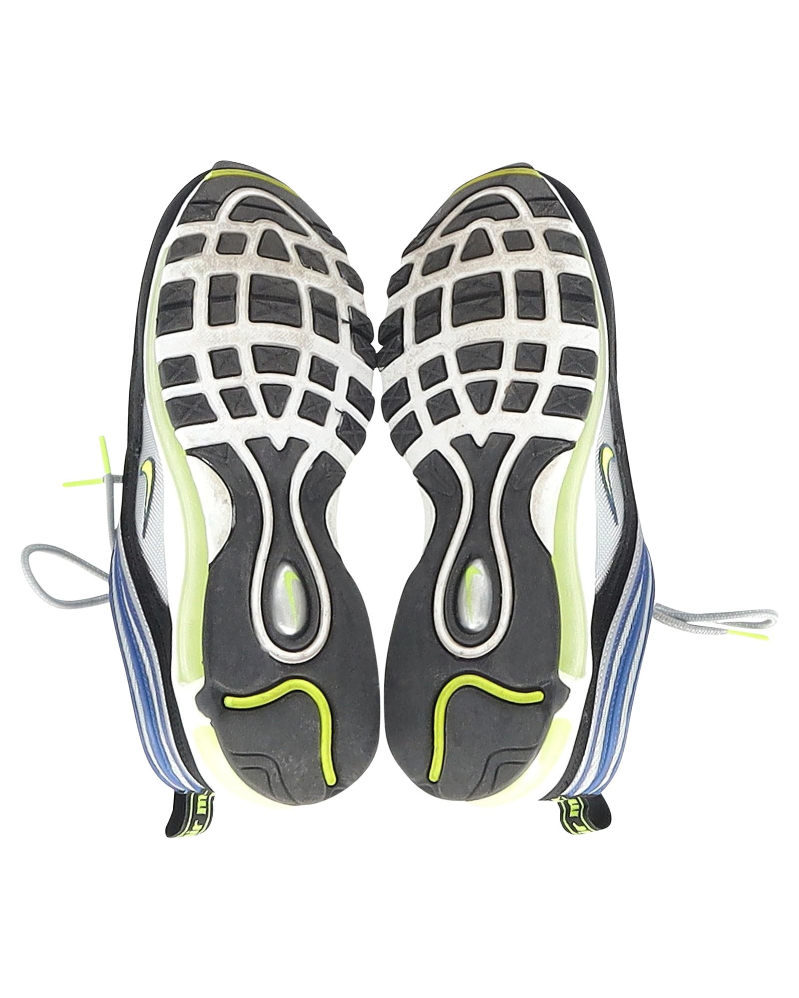 • Sky blue and fluorescent yellow leather with signature Swoosh logo