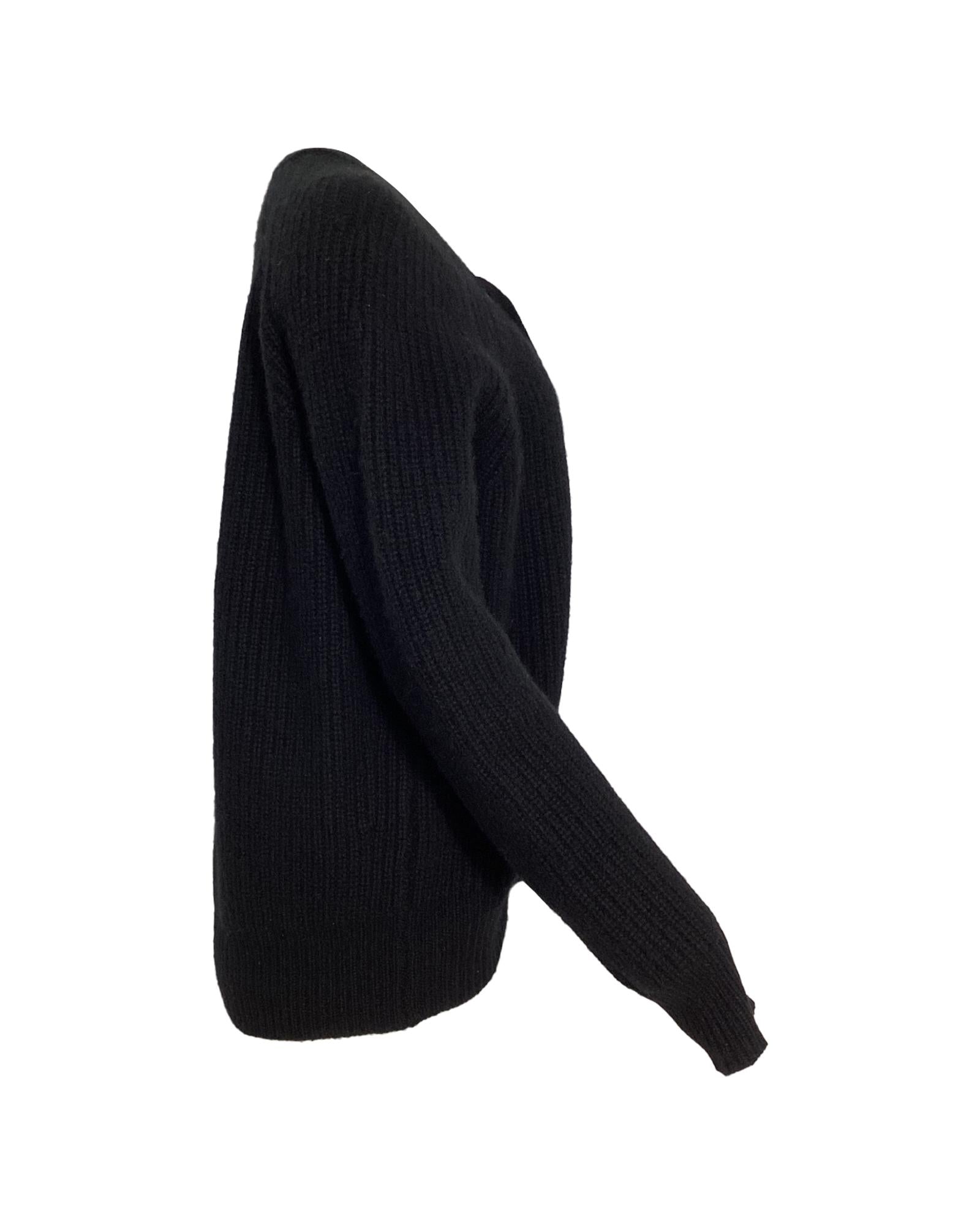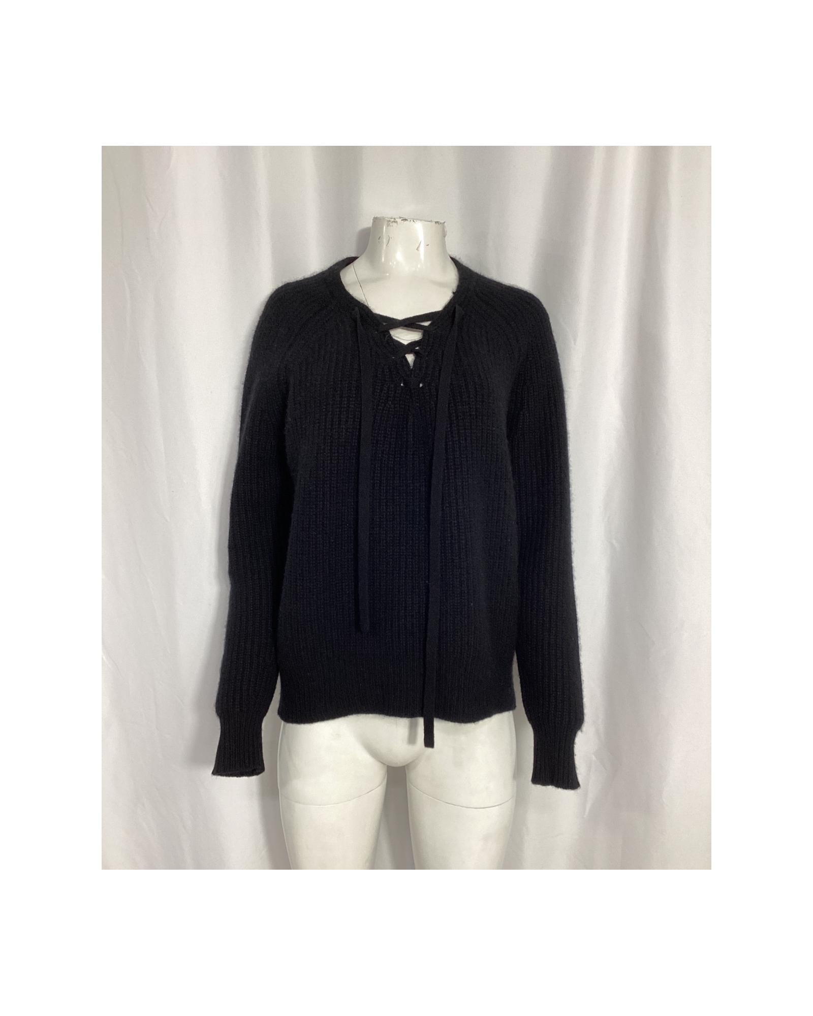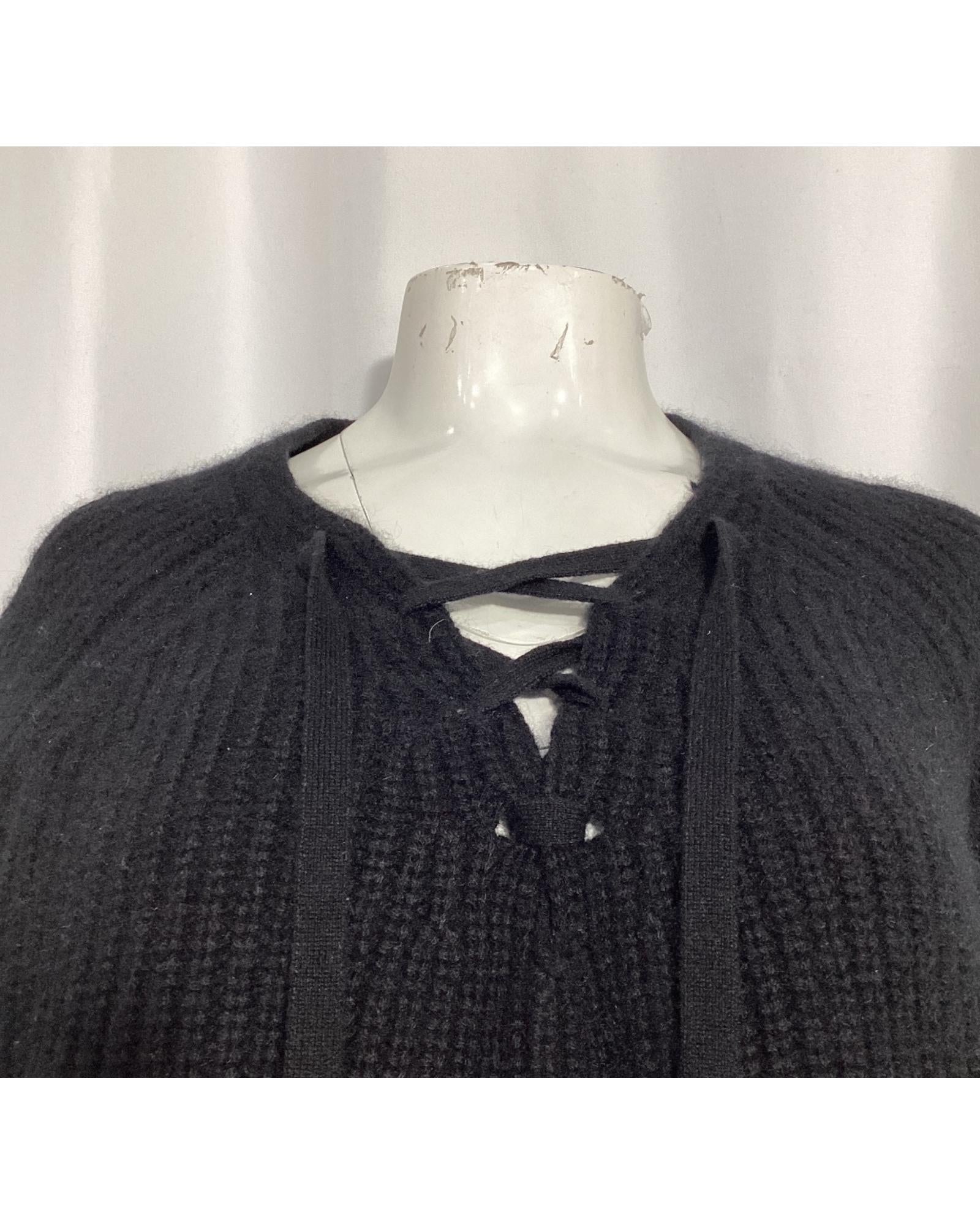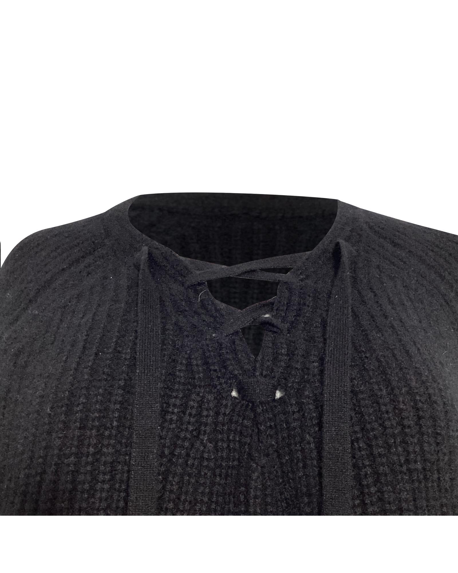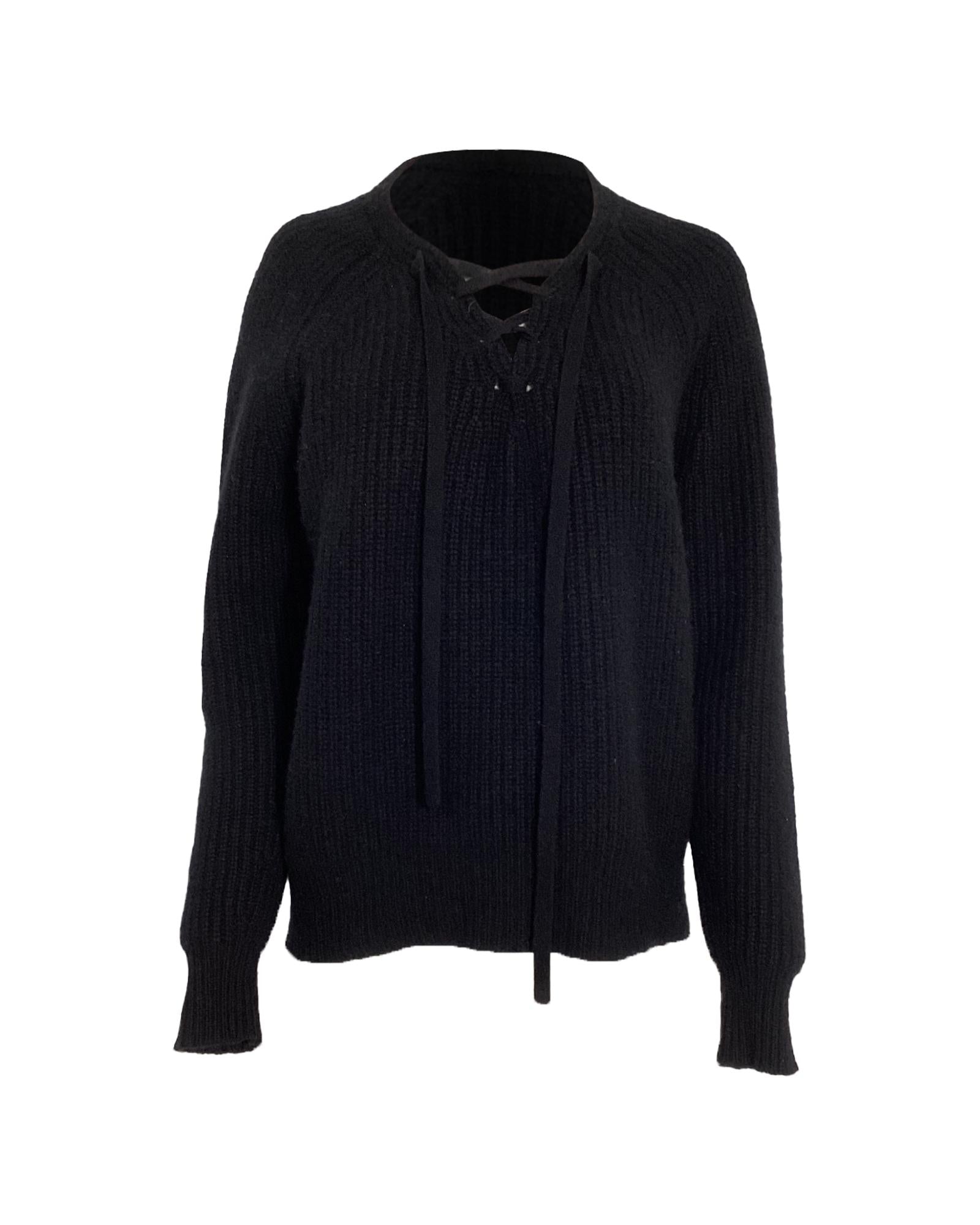 - Nili Lotan Knitted Lace Tie Sweater in Black Wool