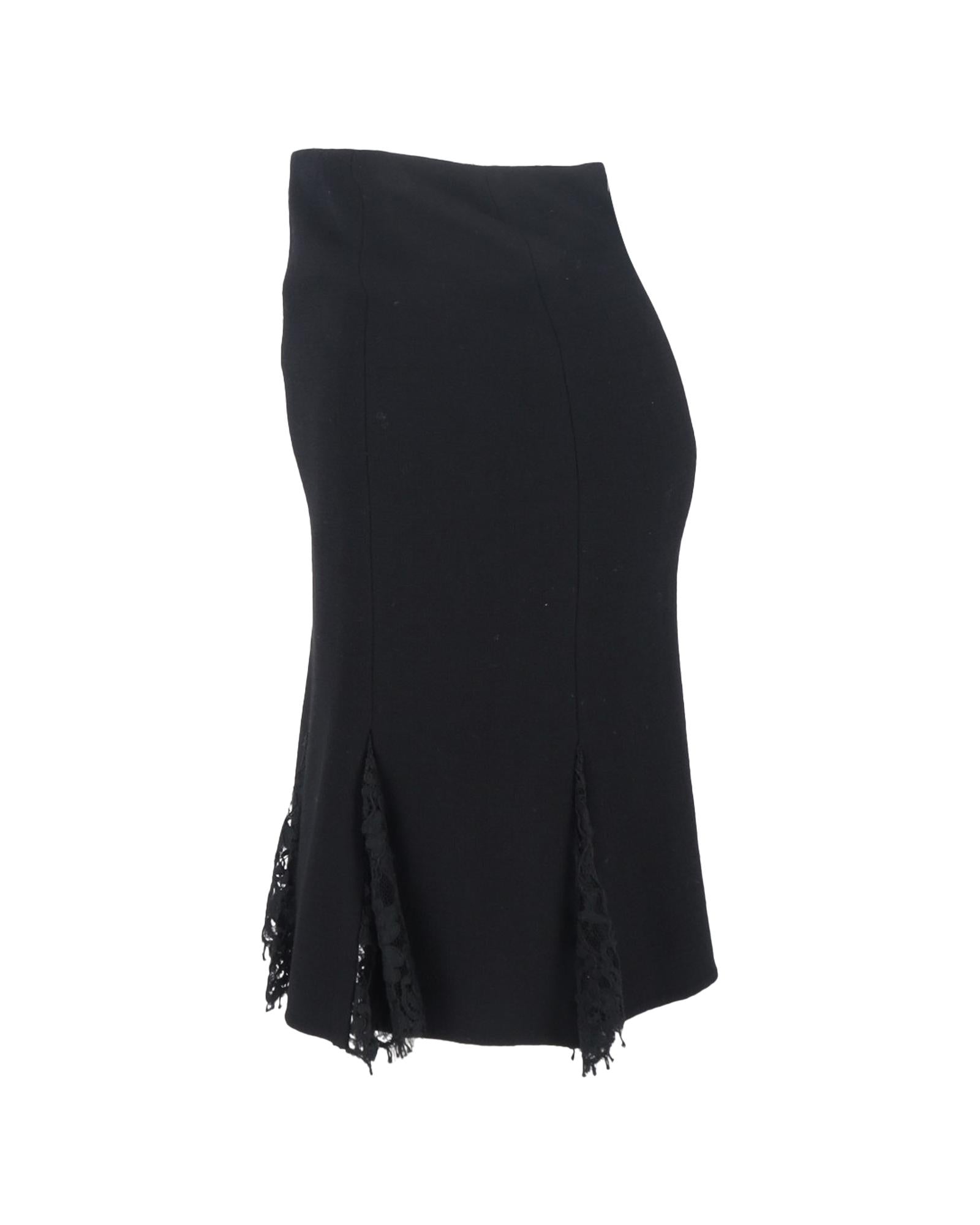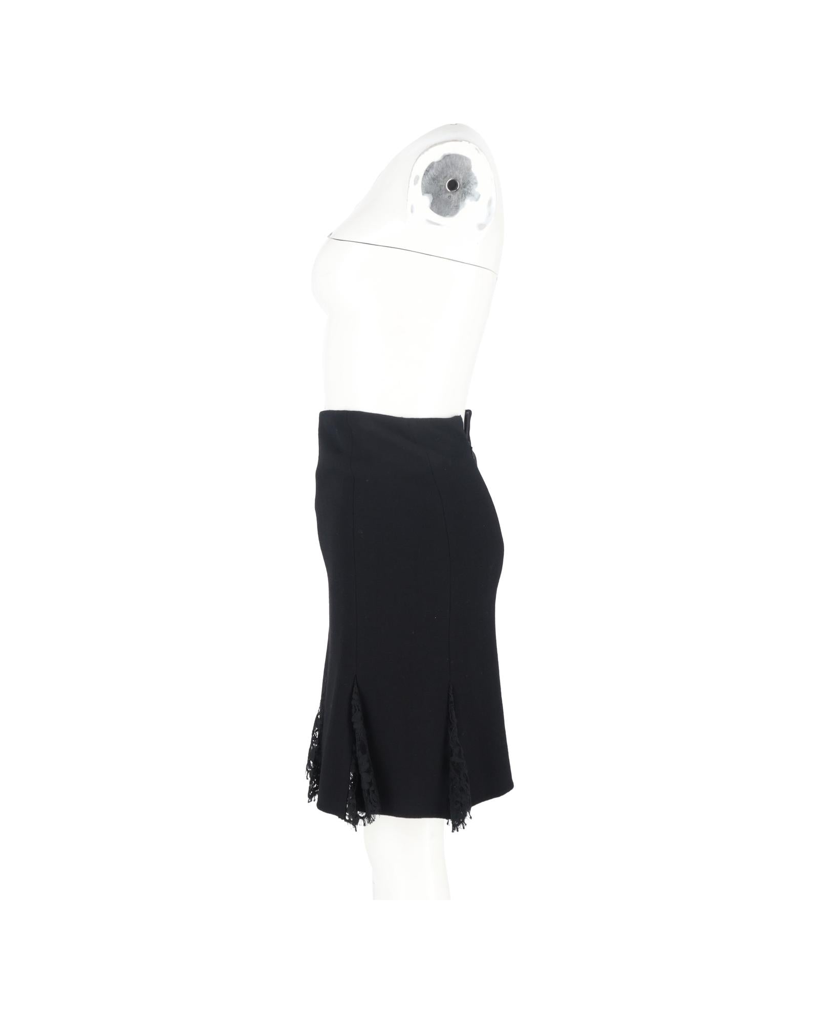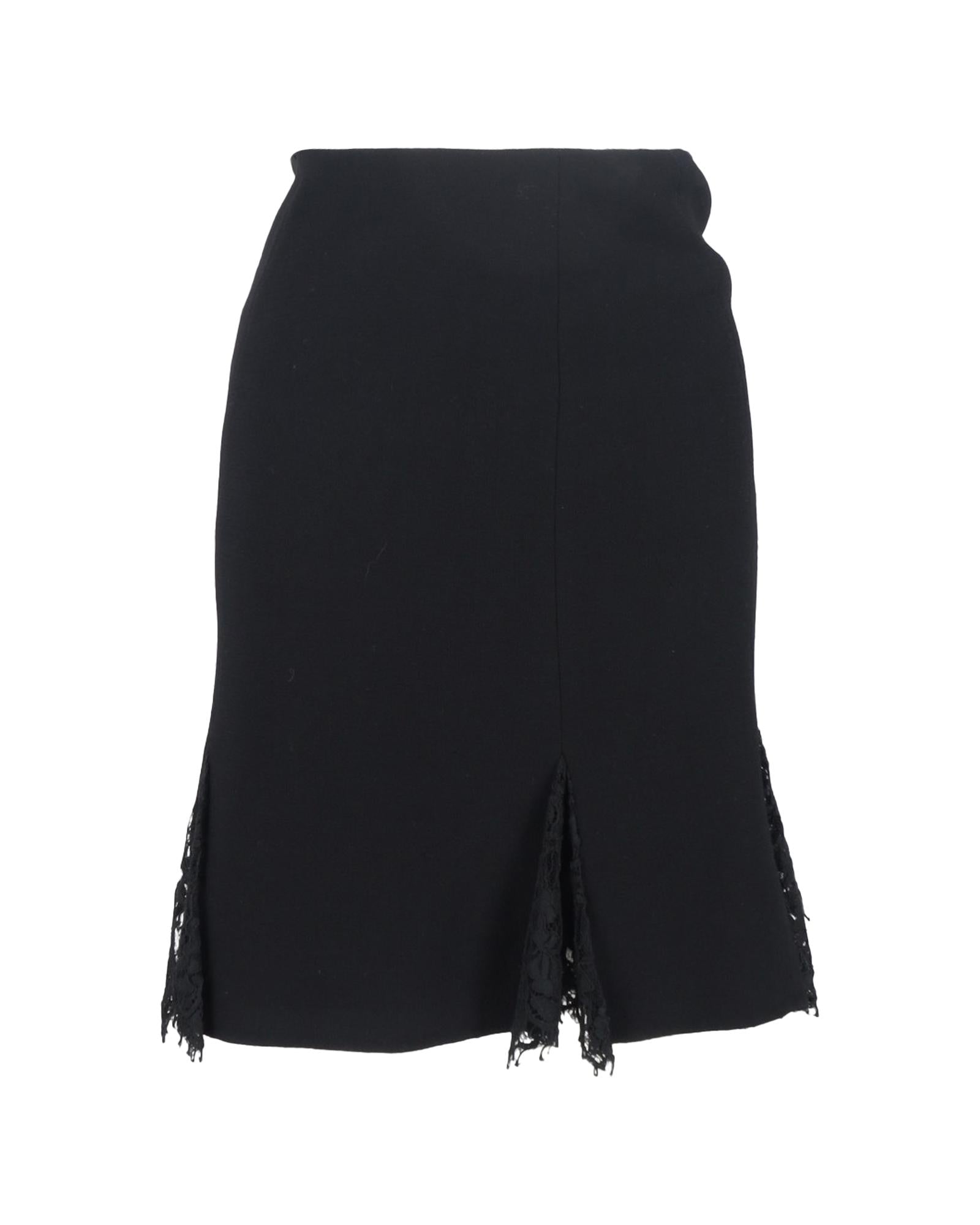 - Oscar de la Renta Knee Length Skirt with Lace Detail in Black Wool