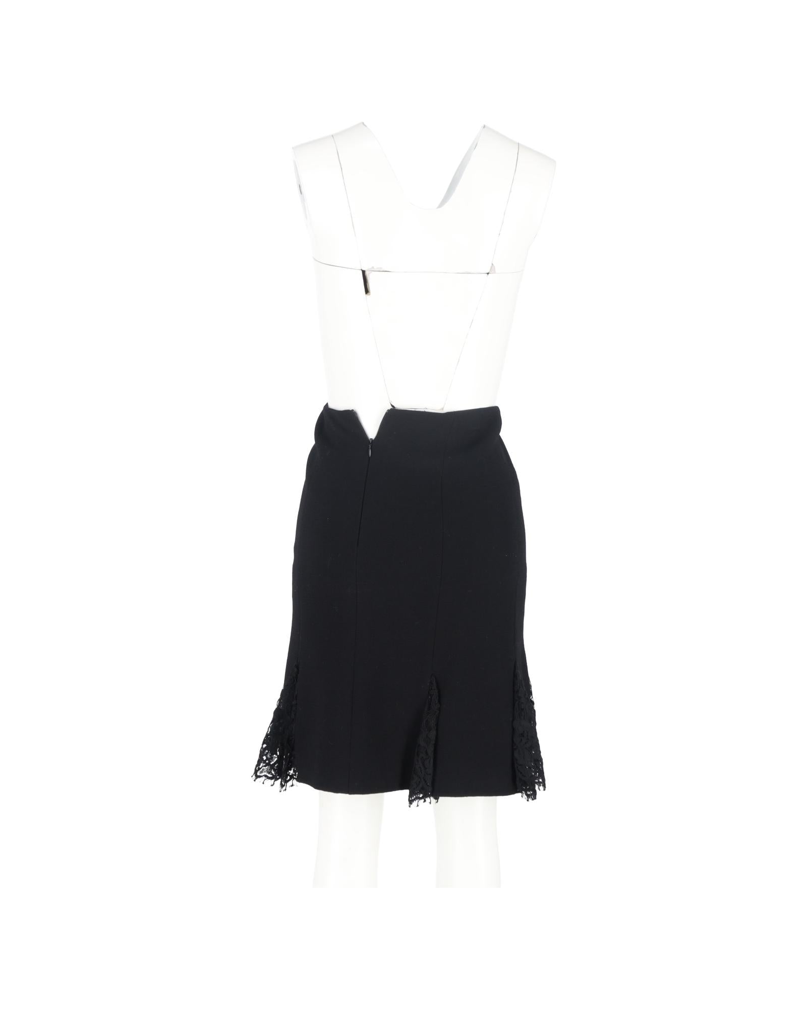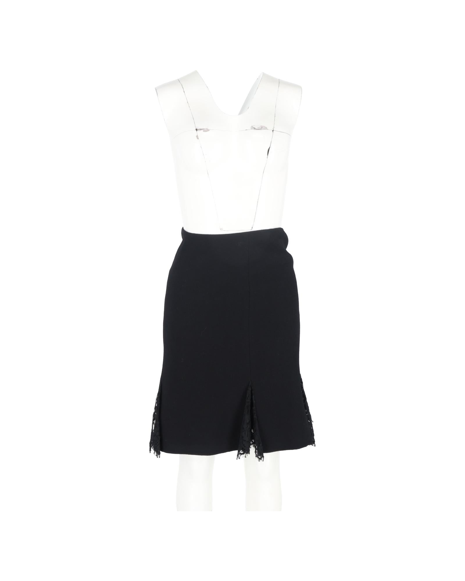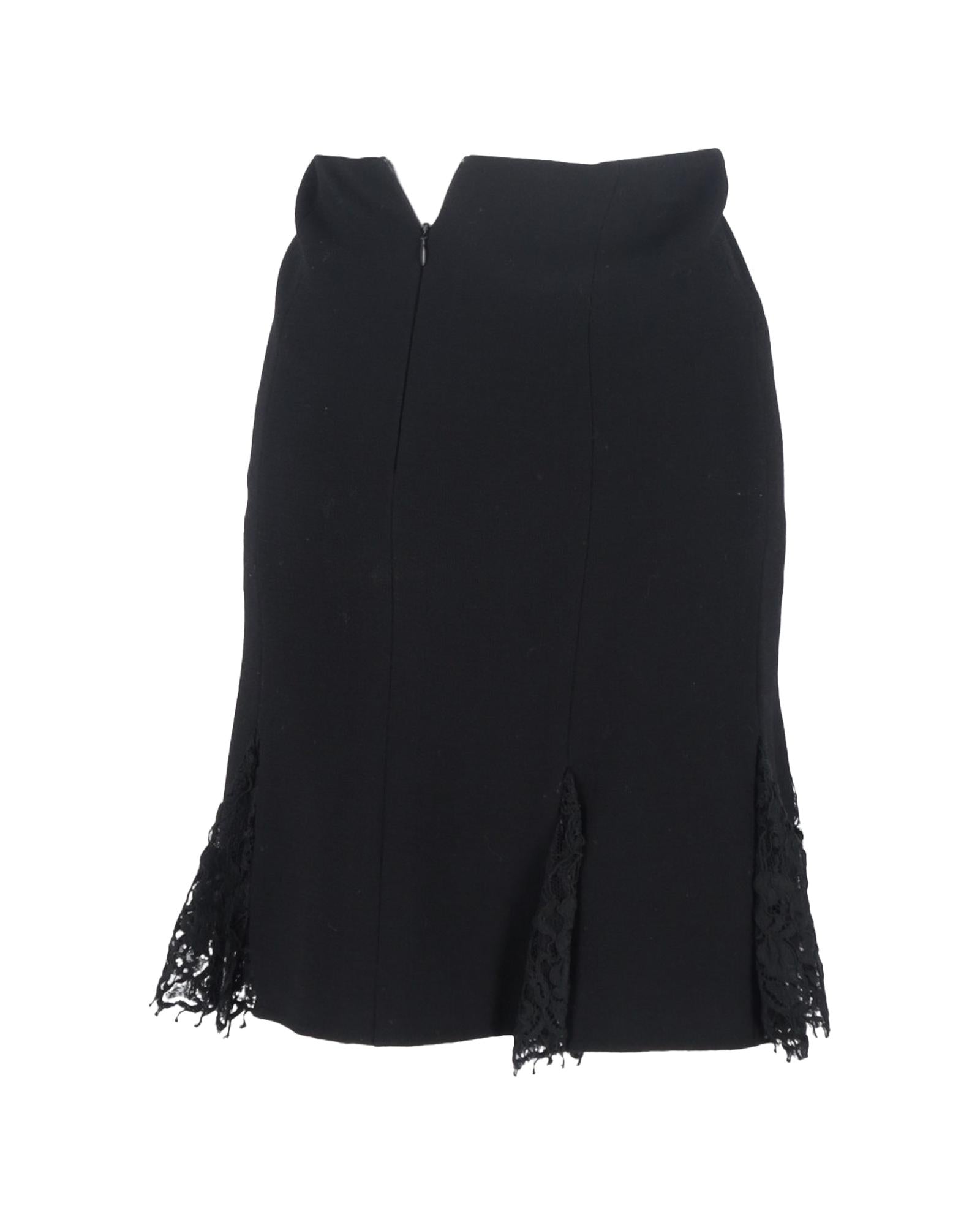 - Oscar de la Renta Knee Length Skirt with Lace Detail in Black Wool