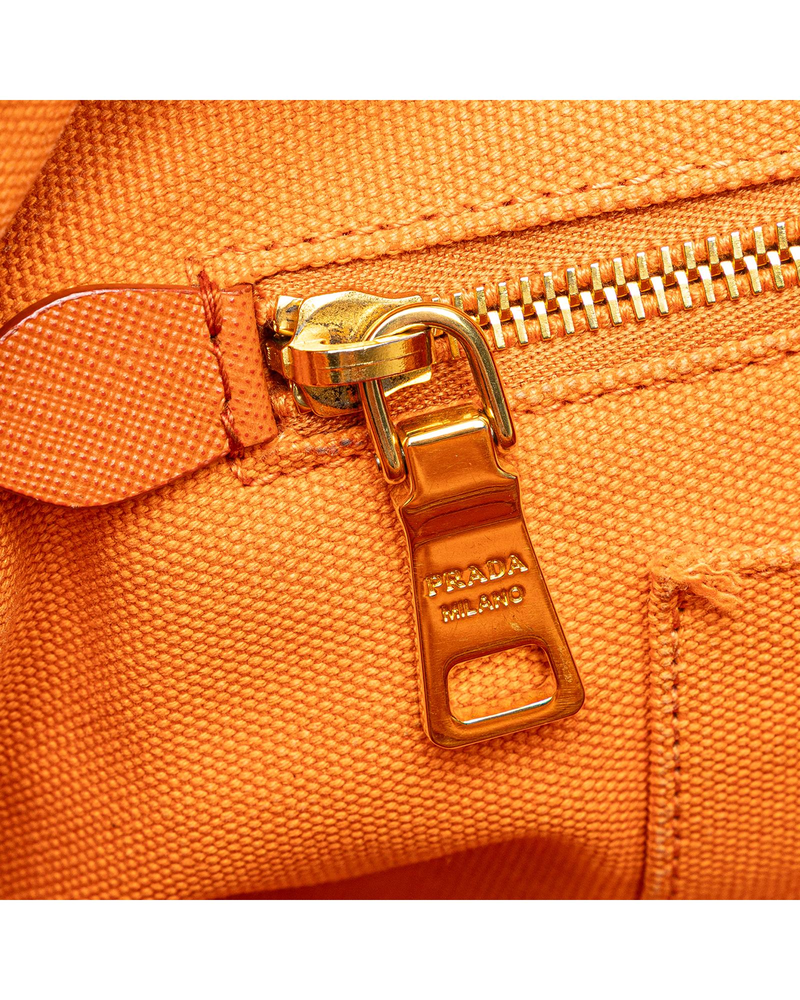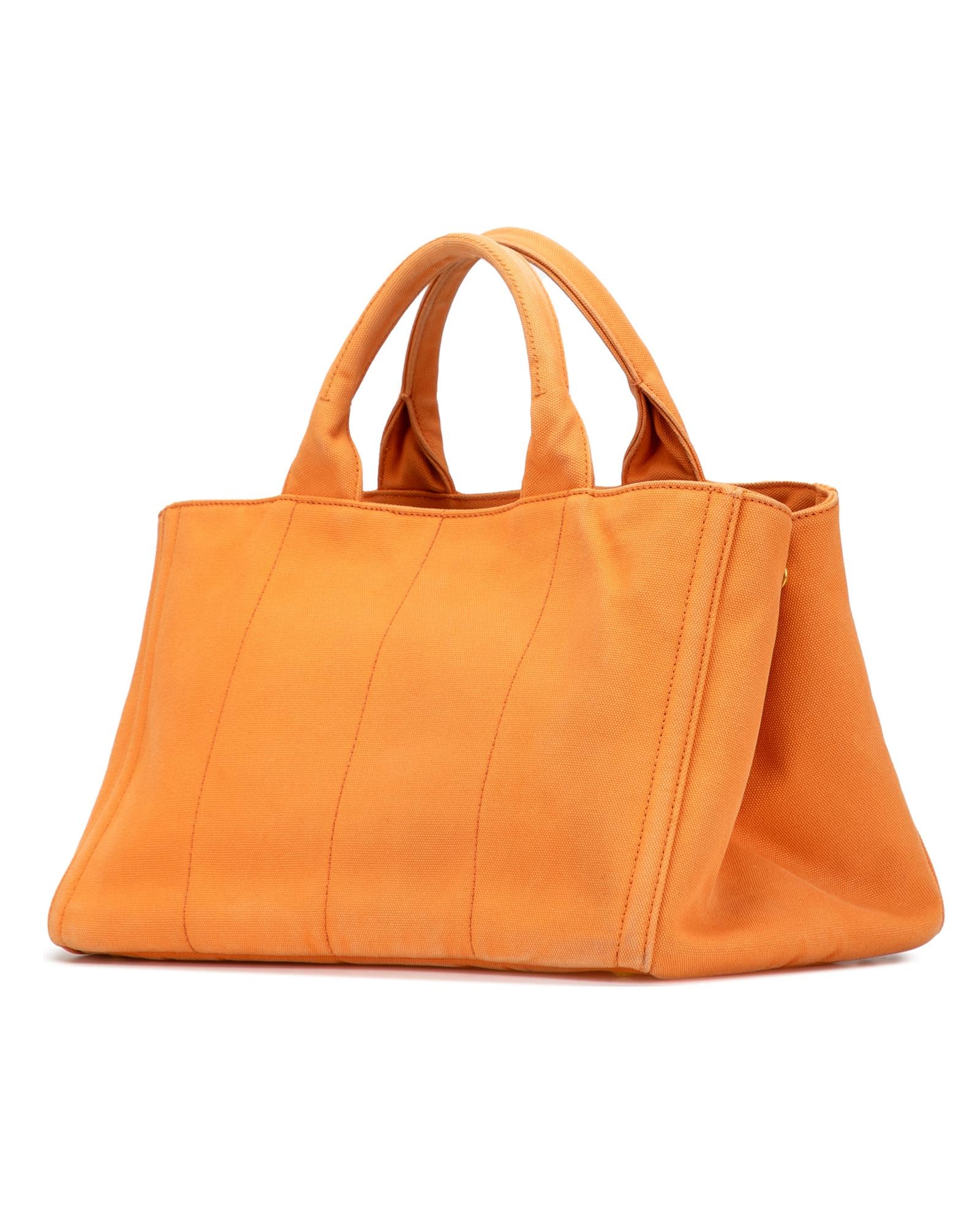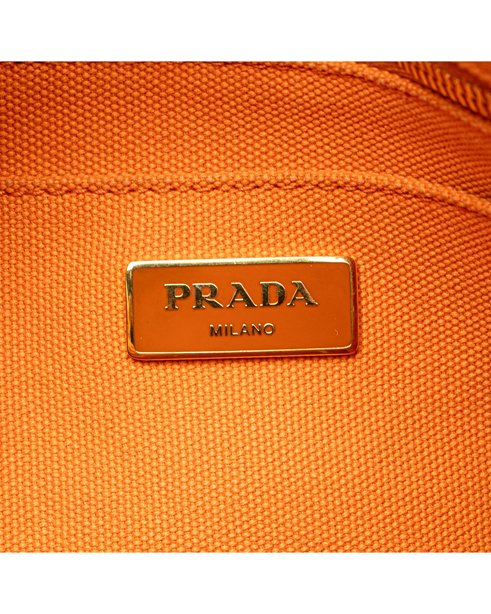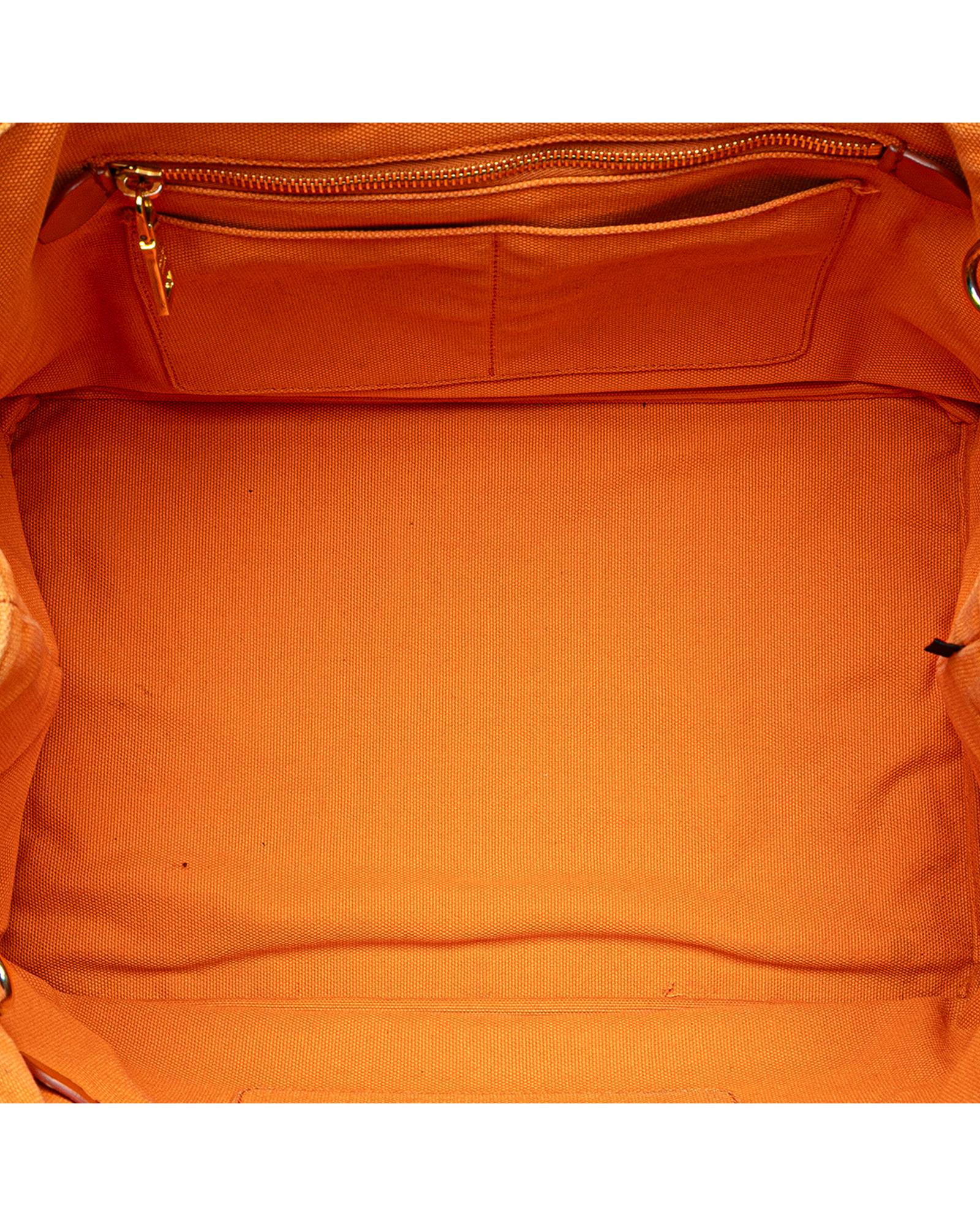 This satchel features a studded canvas body rolled top handles a detachable and adjustable flat shoulder strap an open top and interior zip and slip pockets.Brand: Prada Vintage