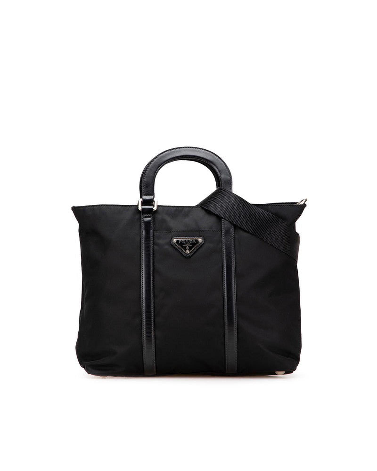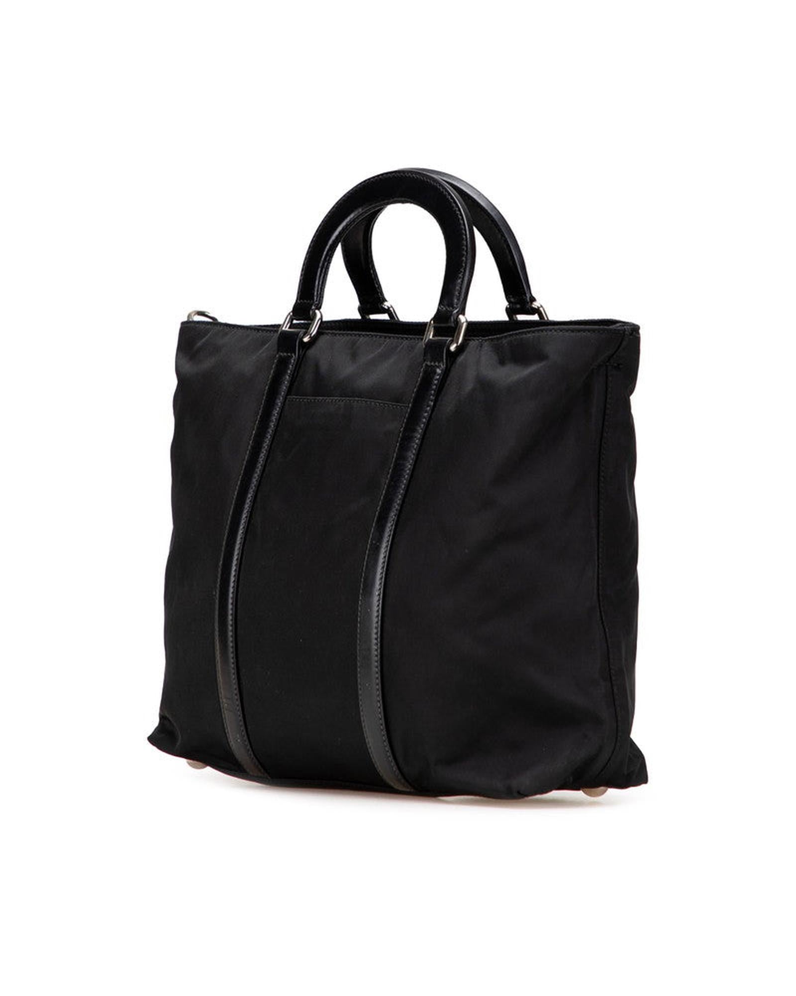 Pre-owned Convertible Nylon Tote Bag with Top Handle and Adjustable Shoulder Strap