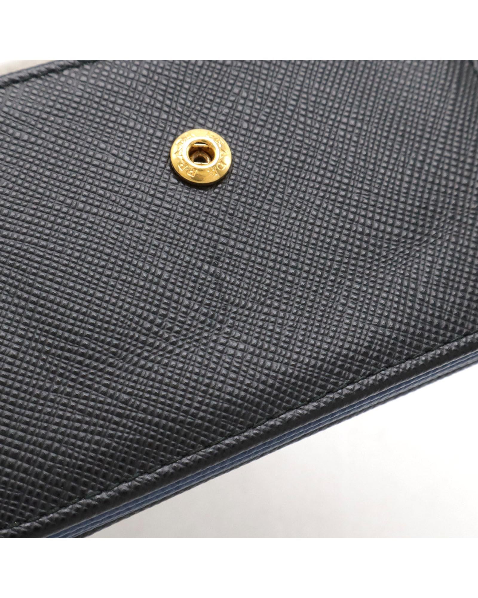 Pre-owned Textured Leather Card Holder with Snap Closure
