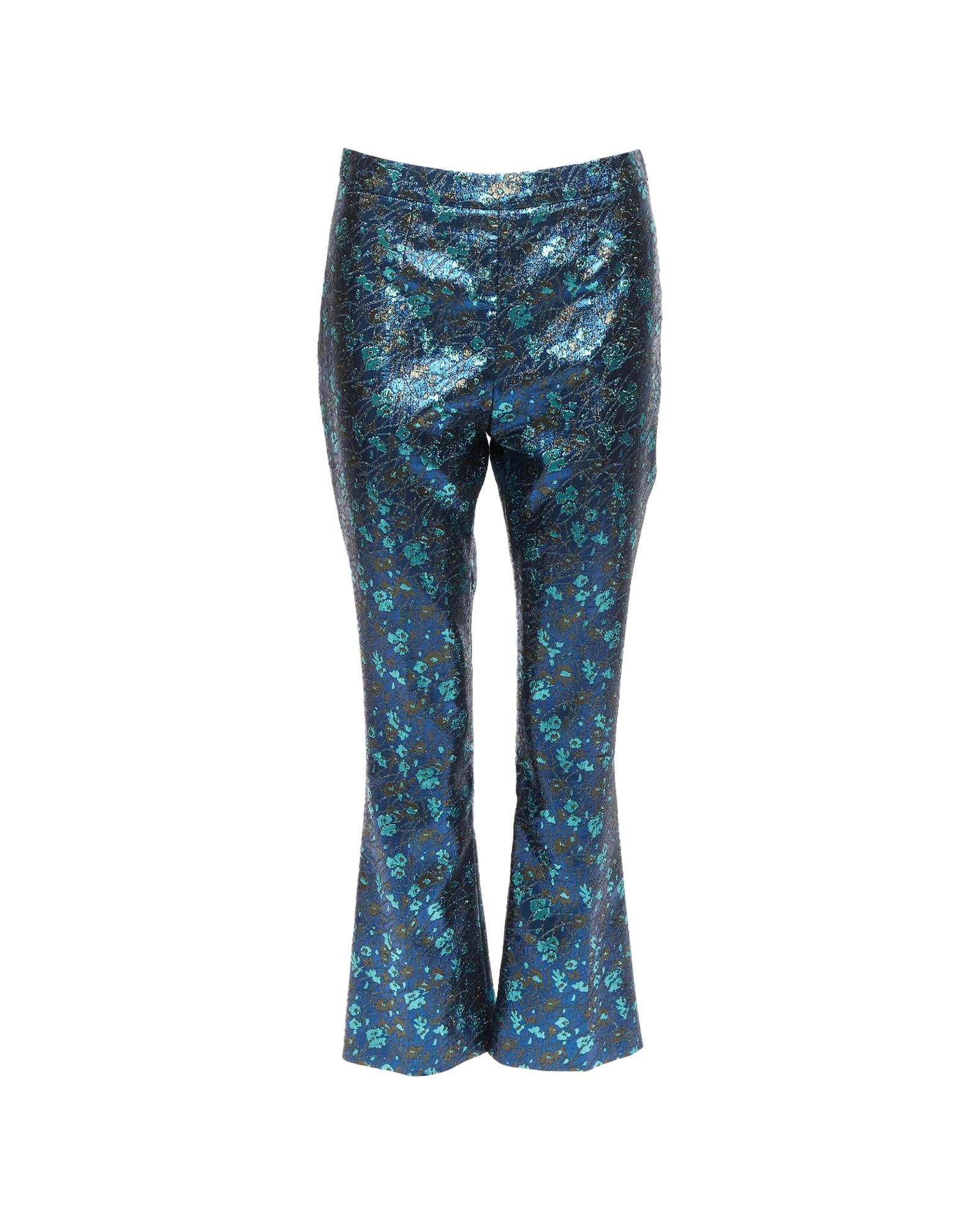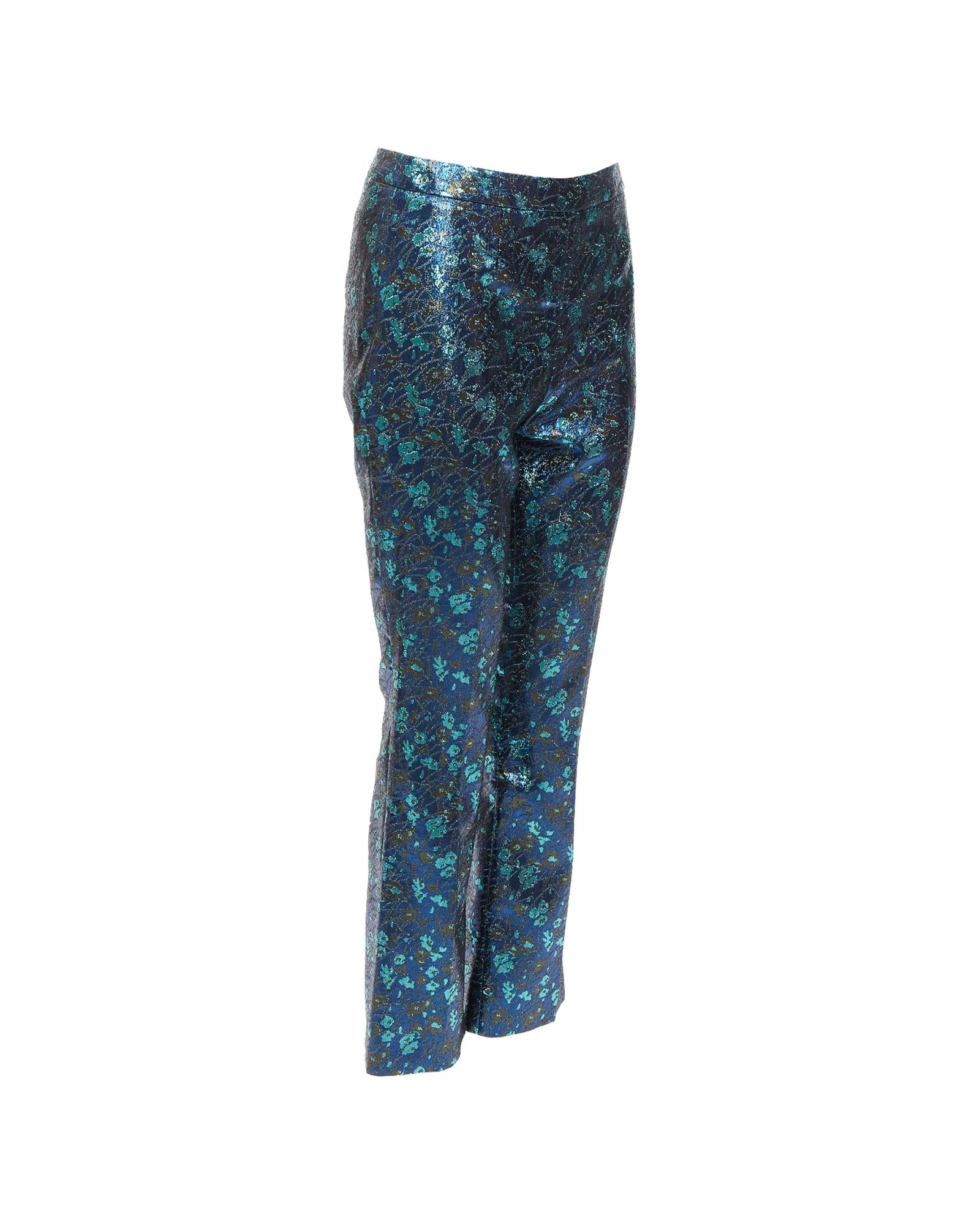 Pre-owned Floral Print Cropped Flare Leg Pants