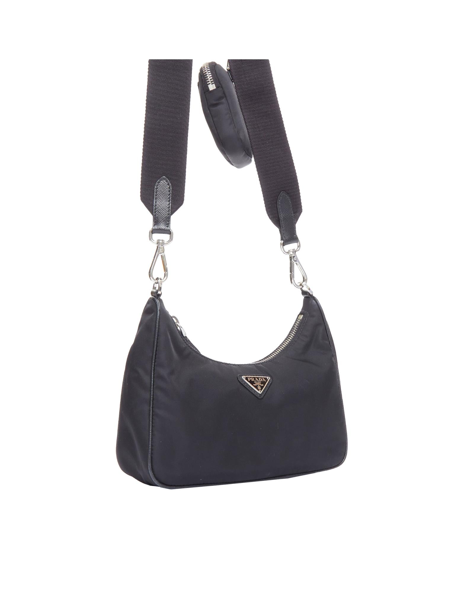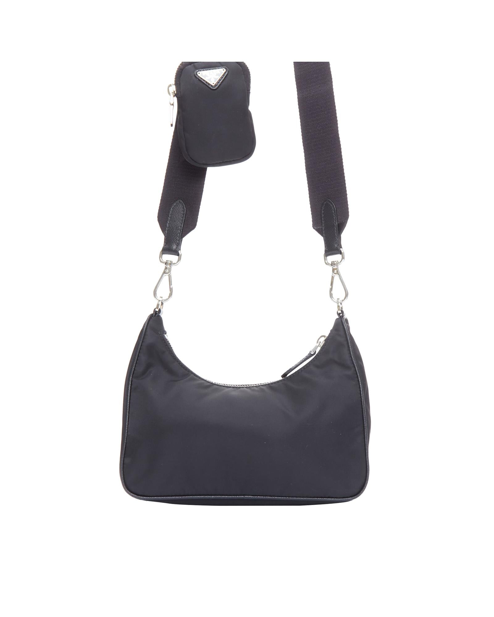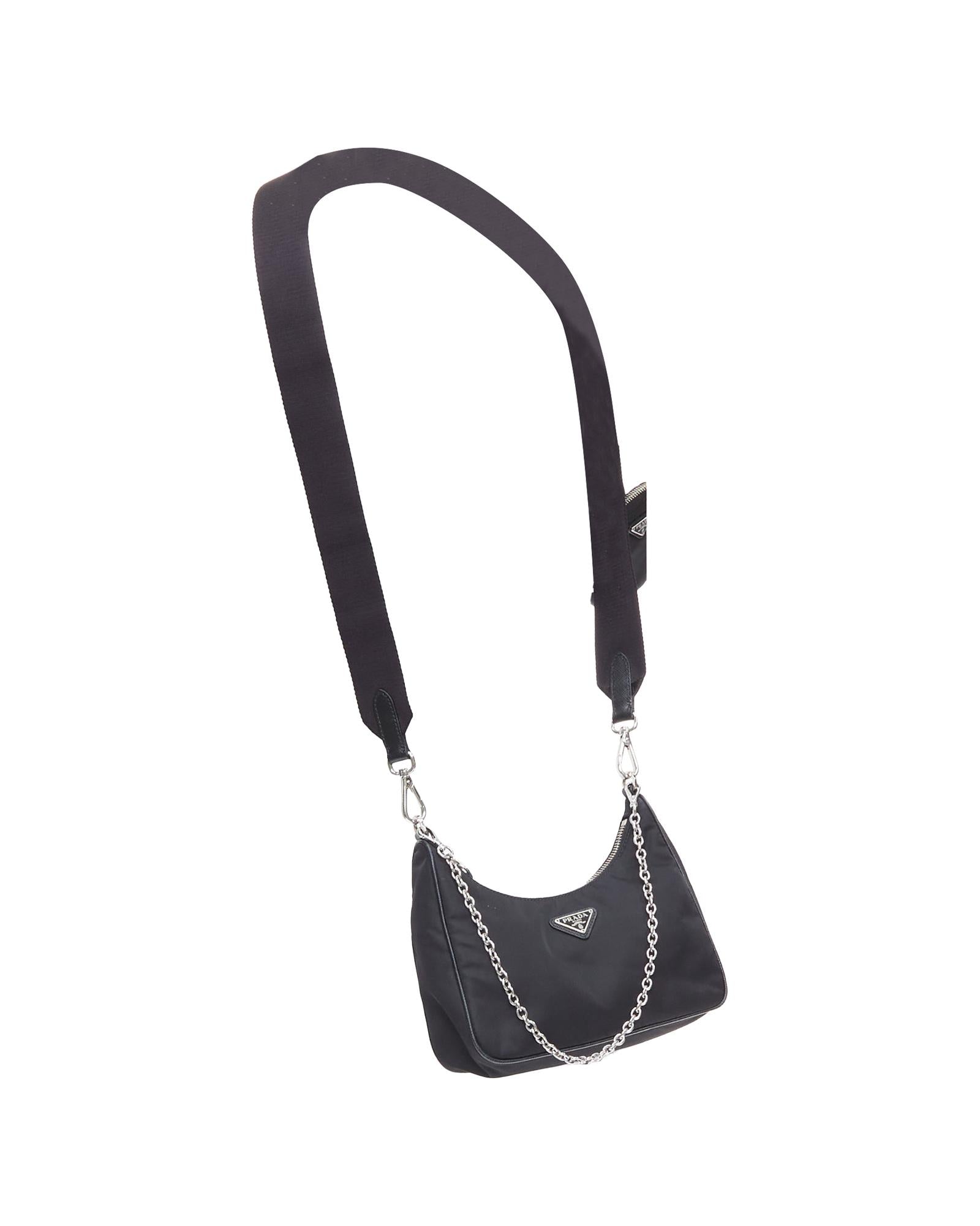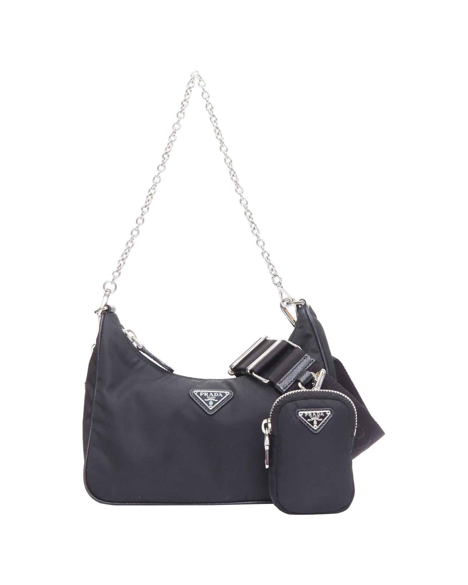 Pre-owned Nylon Shoulder Bag with Chain Strap and Detachable Pouch