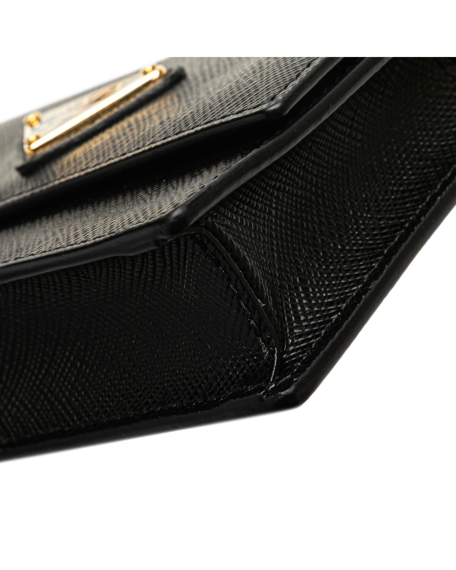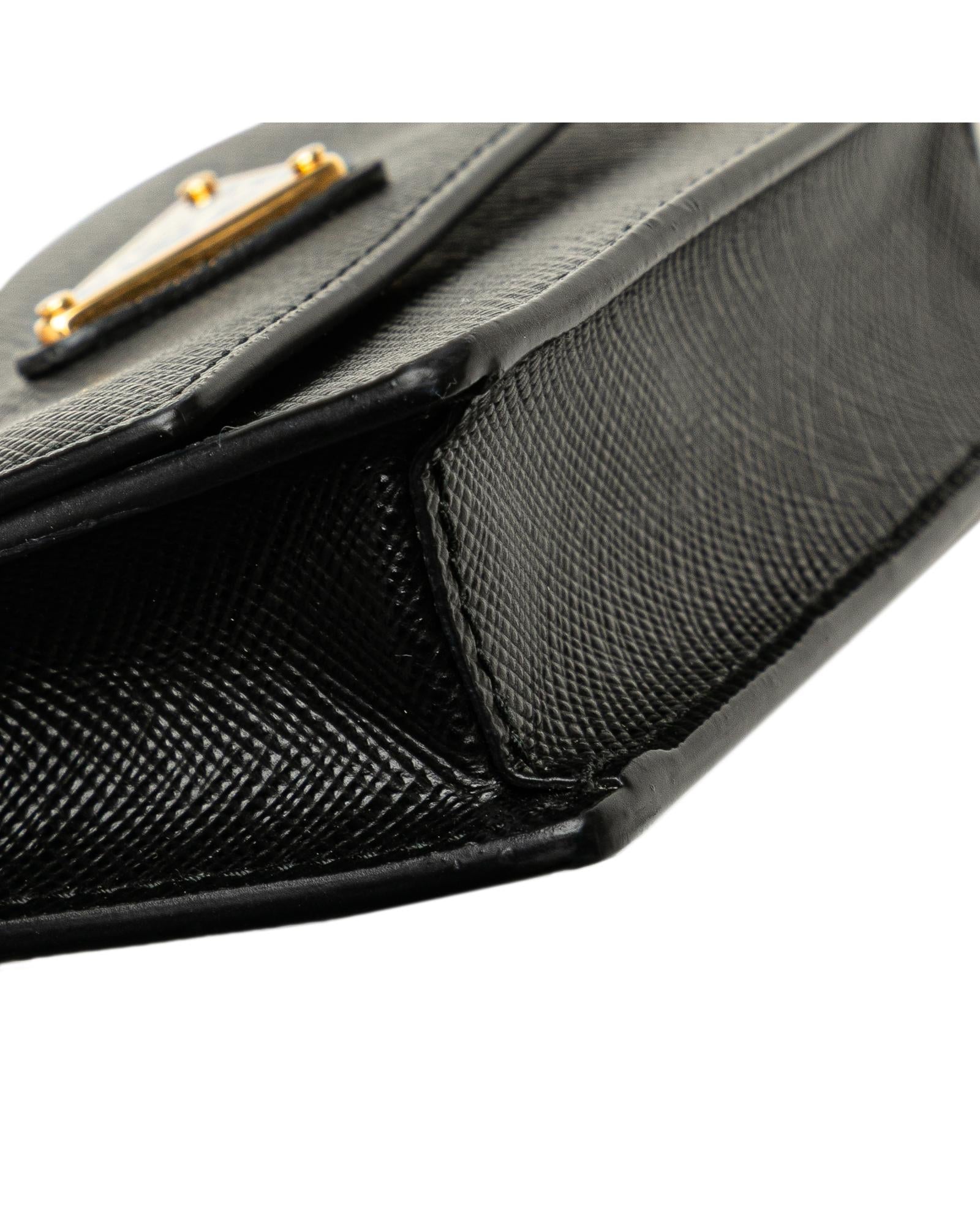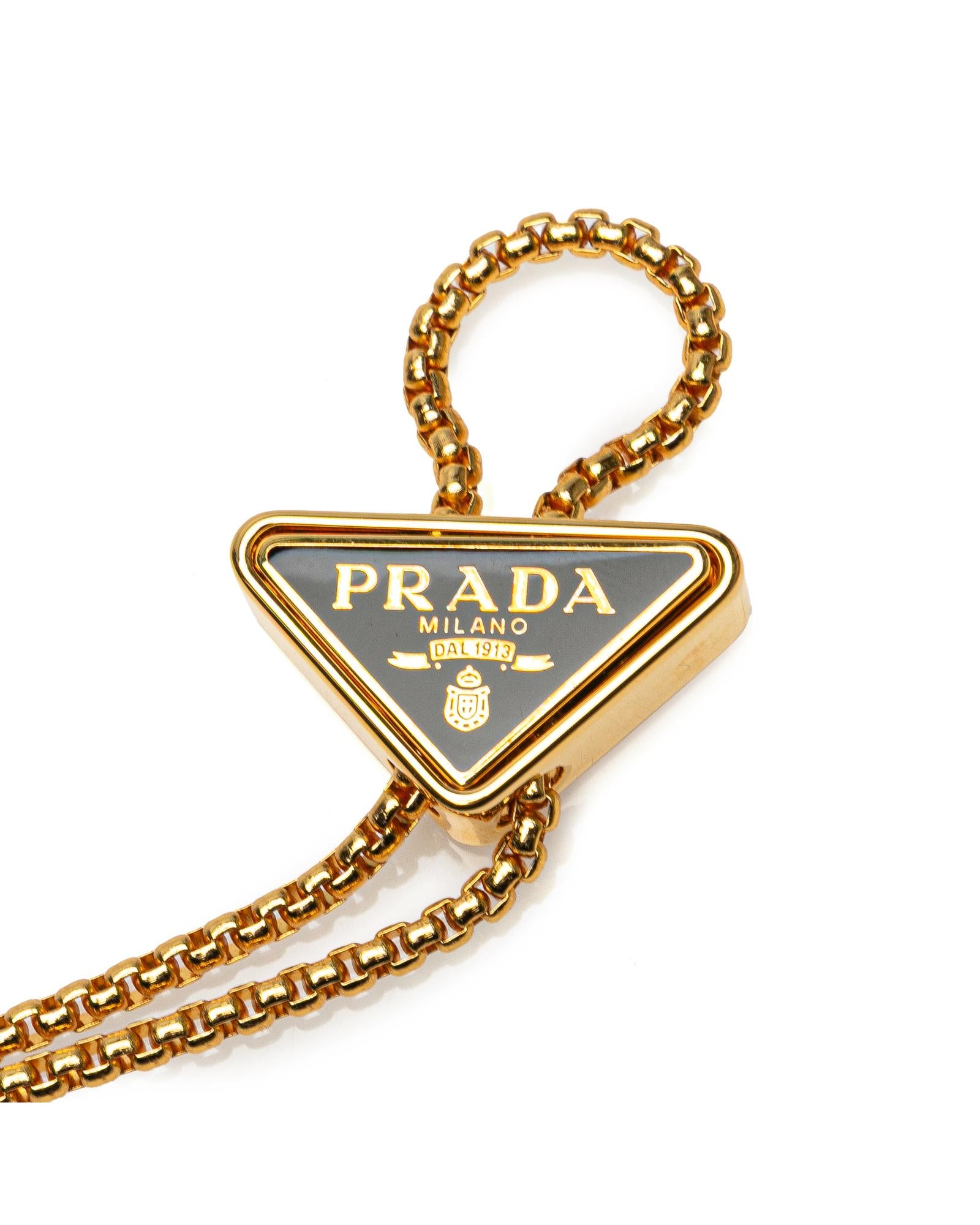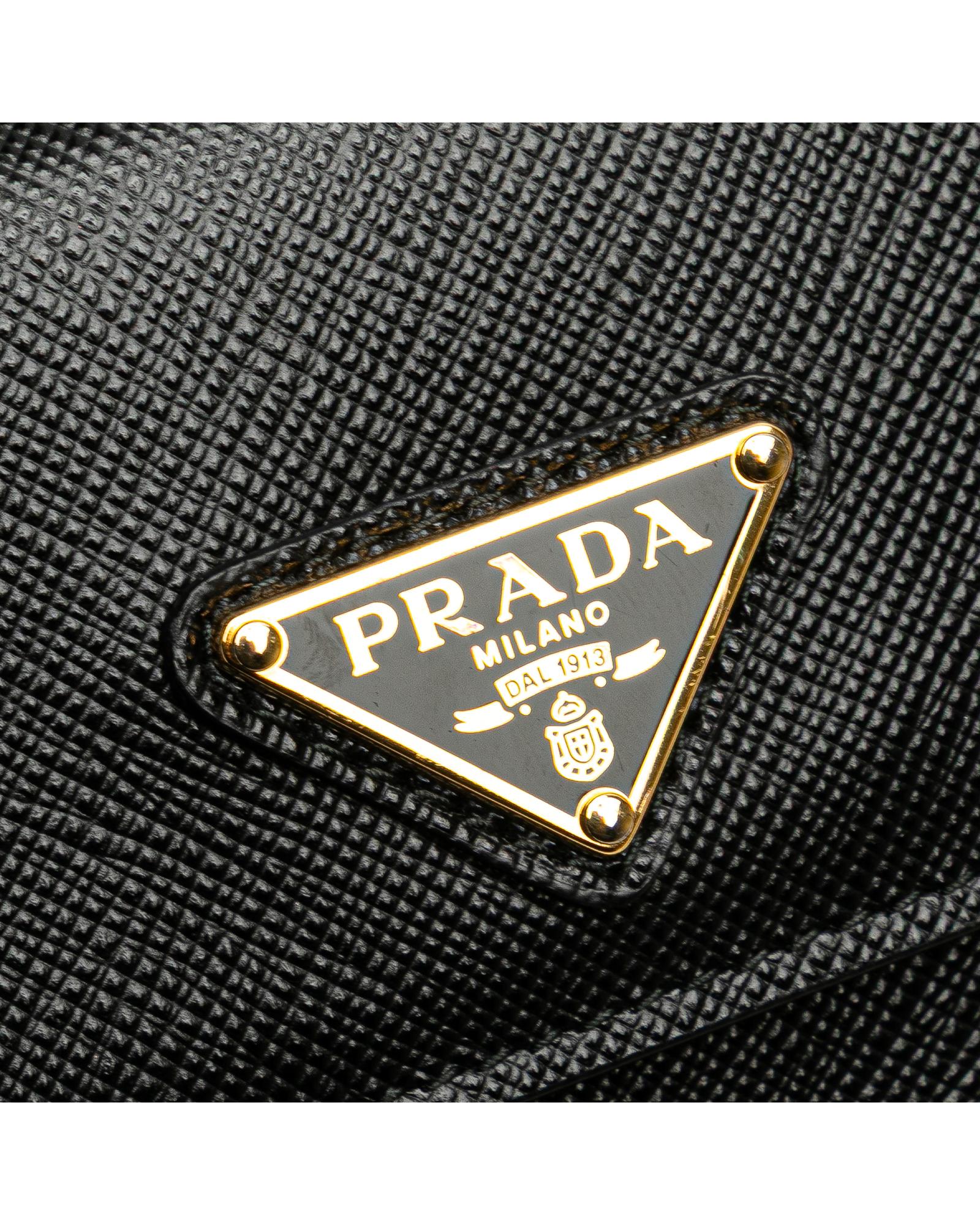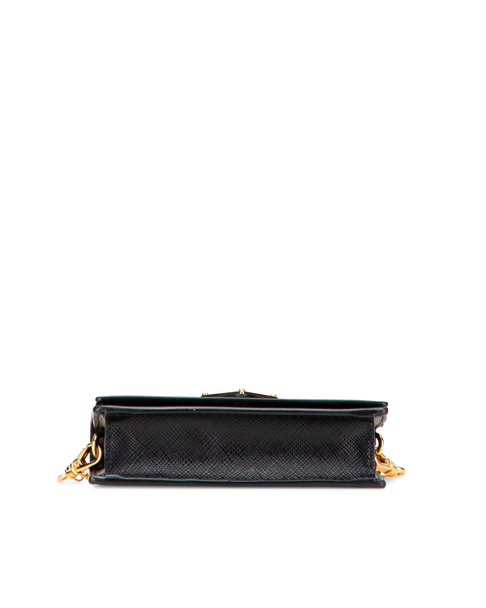 This crossbody features a saffiano leather body a curb chain strap with logo details a front flap with snap button closures and interior card slots.Brand: Prada Vintage
