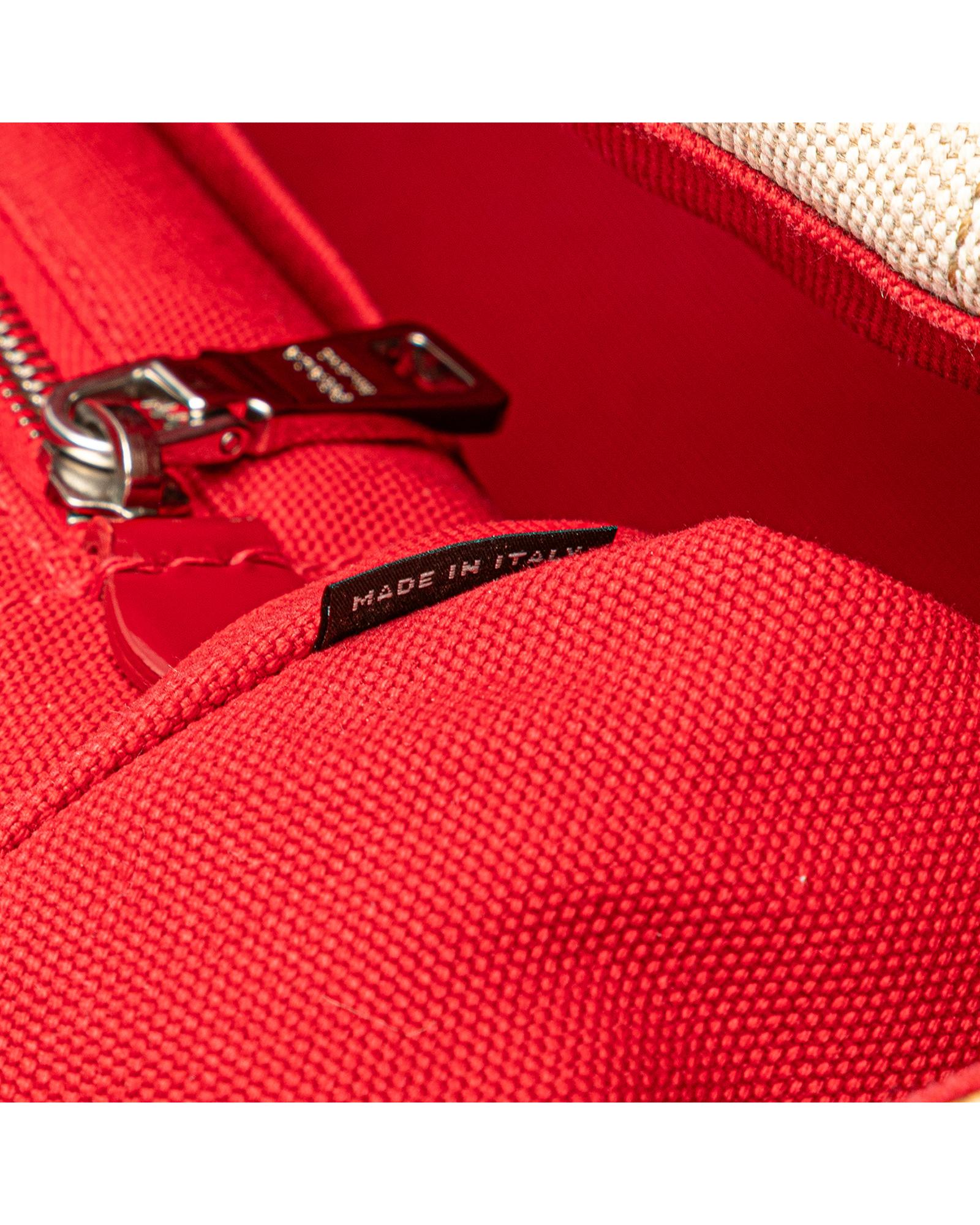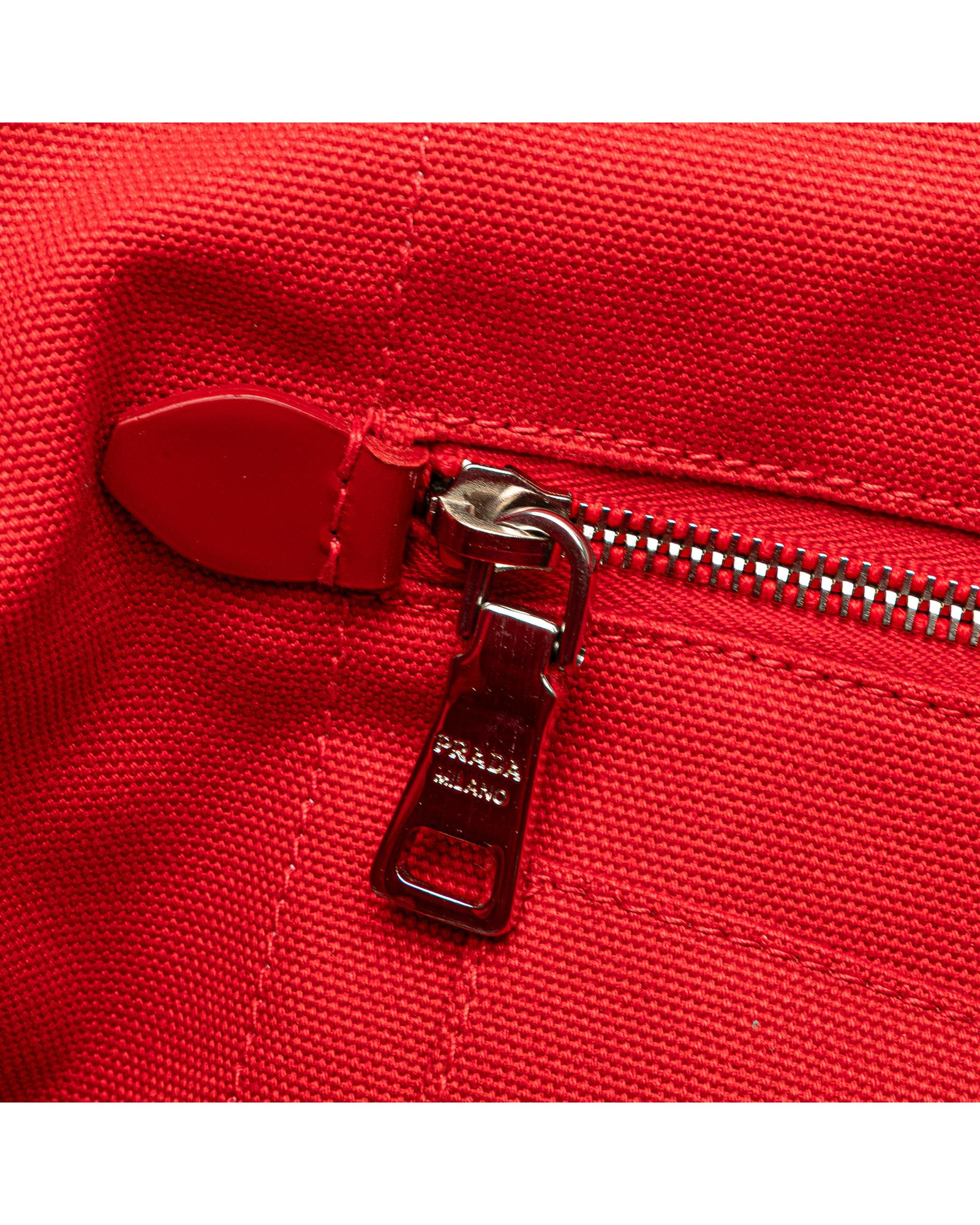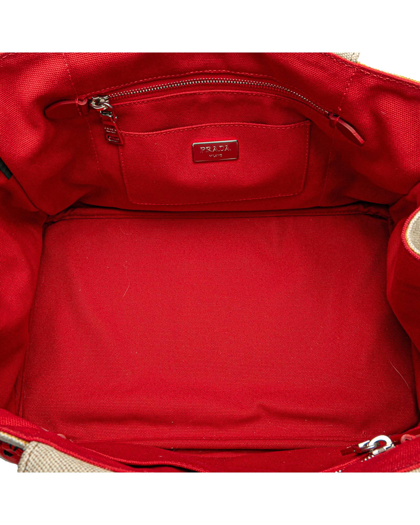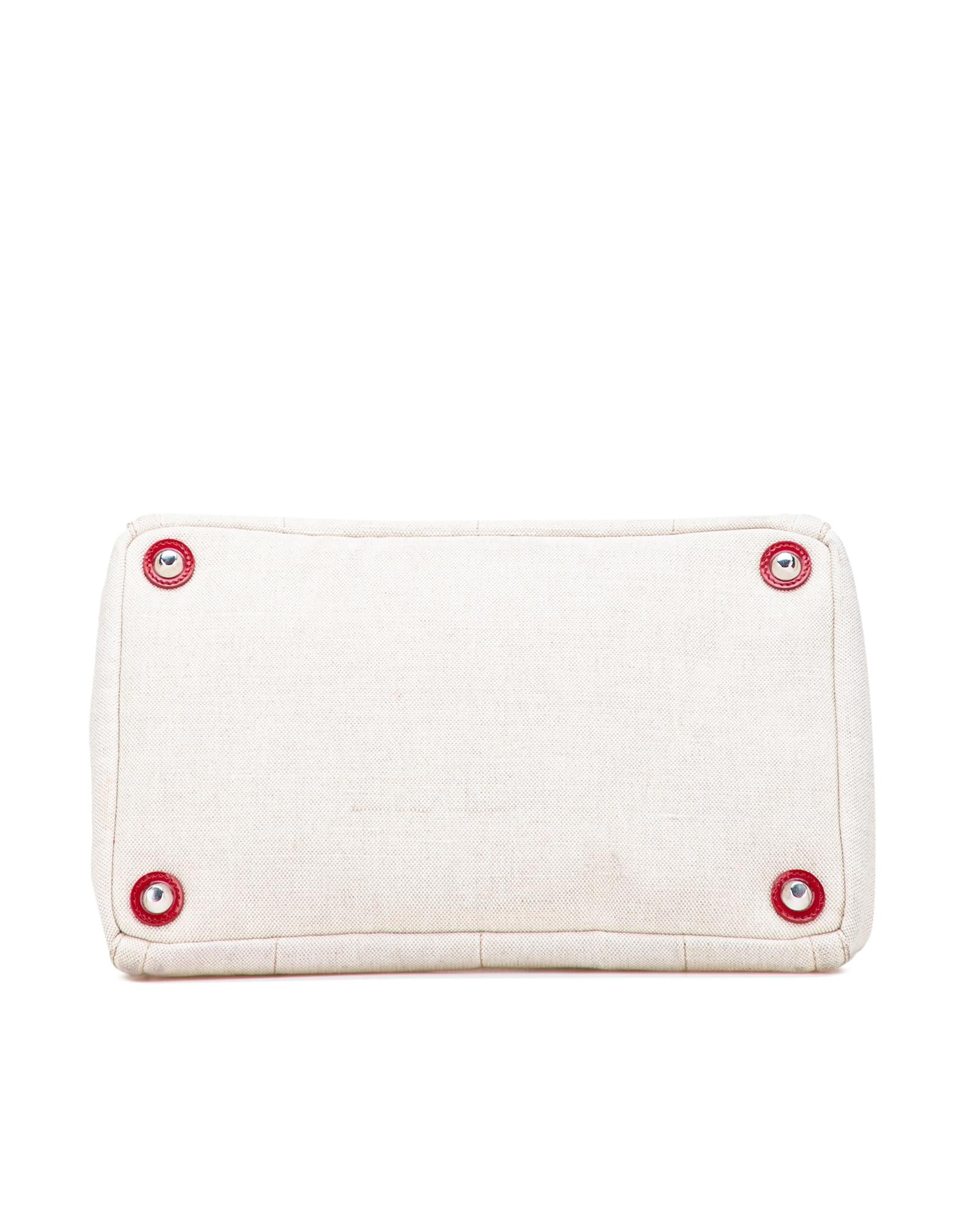 This tote features a canvas body with satin floral details rolled handles an open top and interior zip and slip pockets.Brand: Prada Vintage