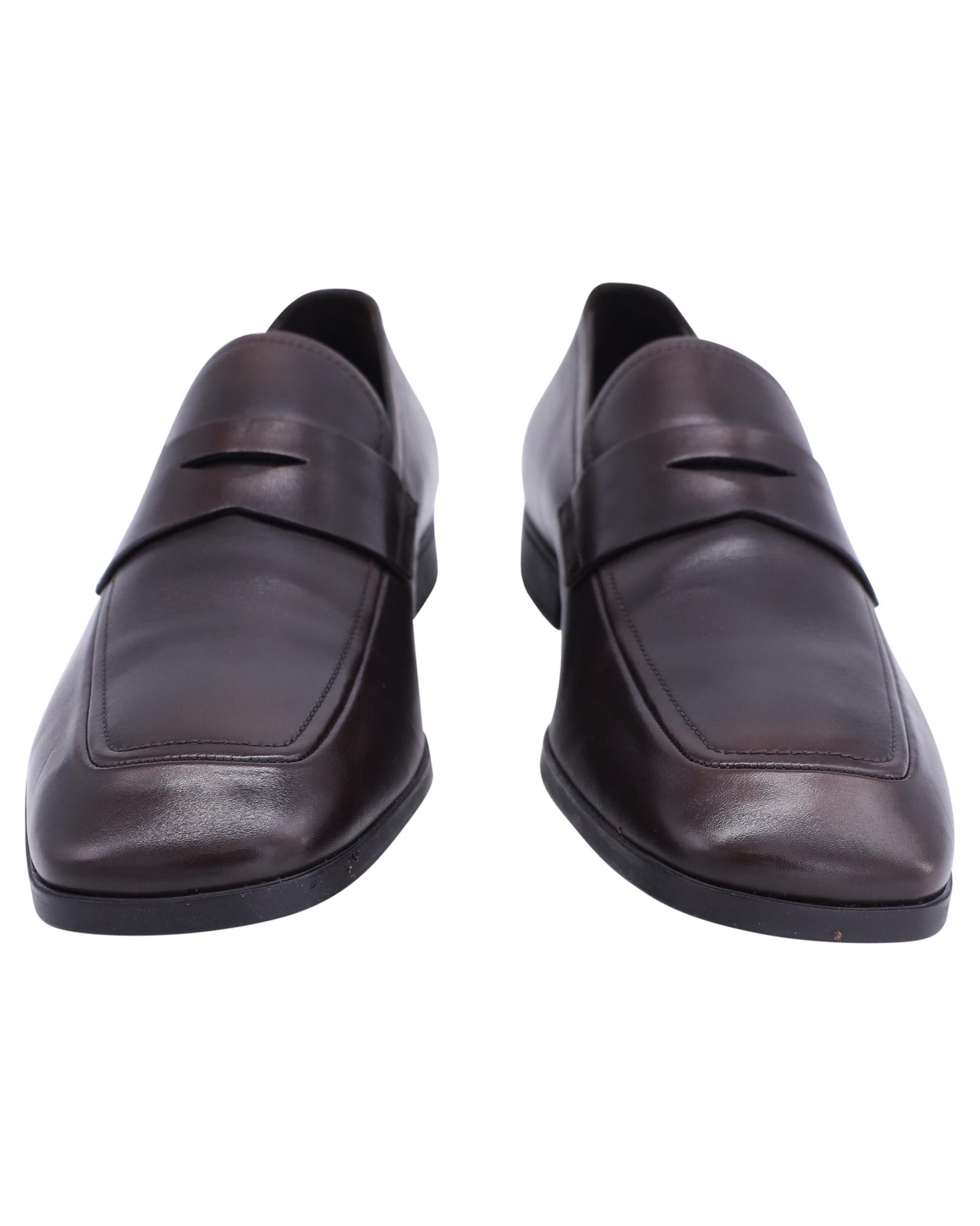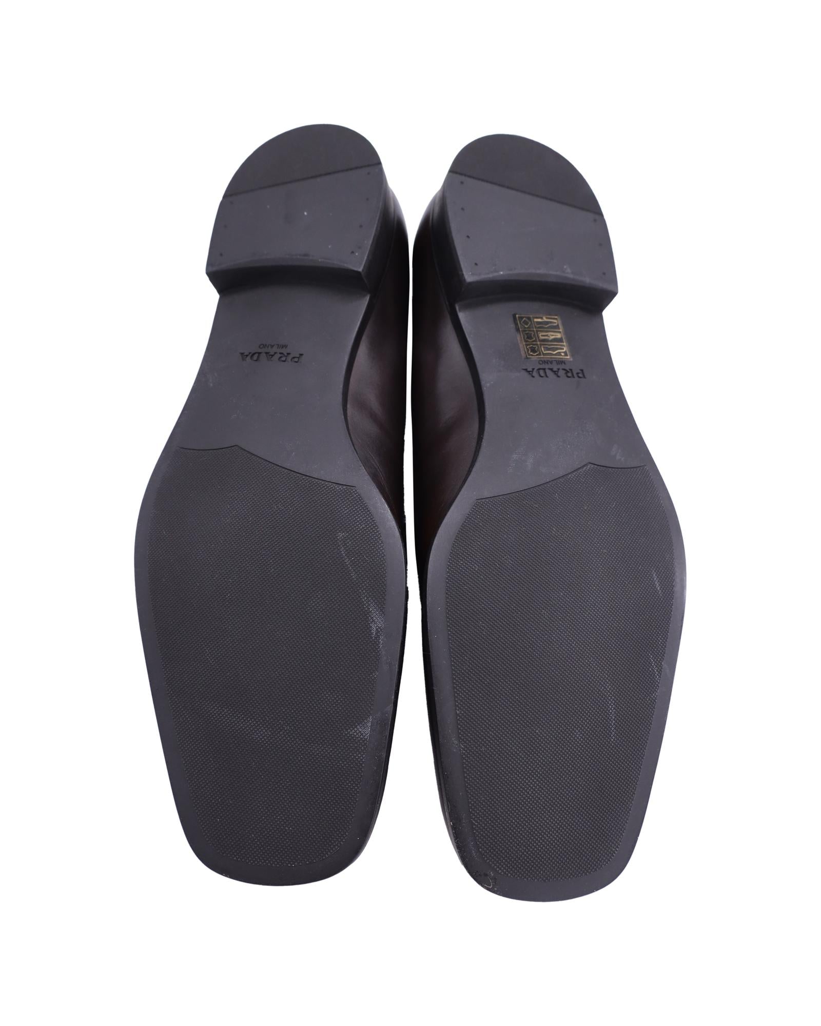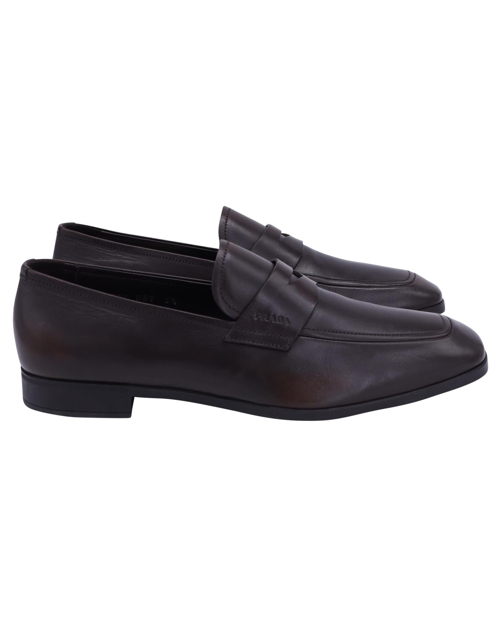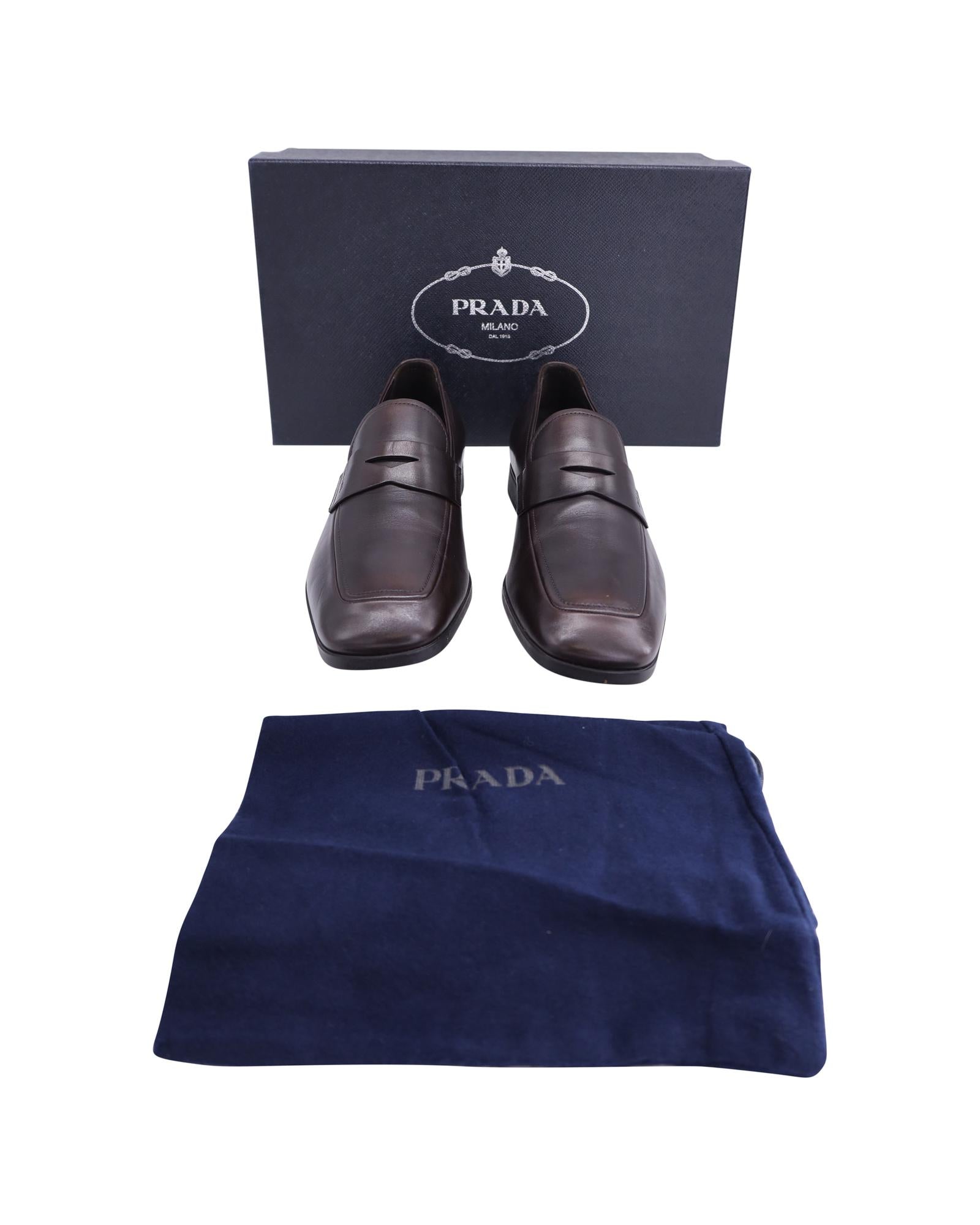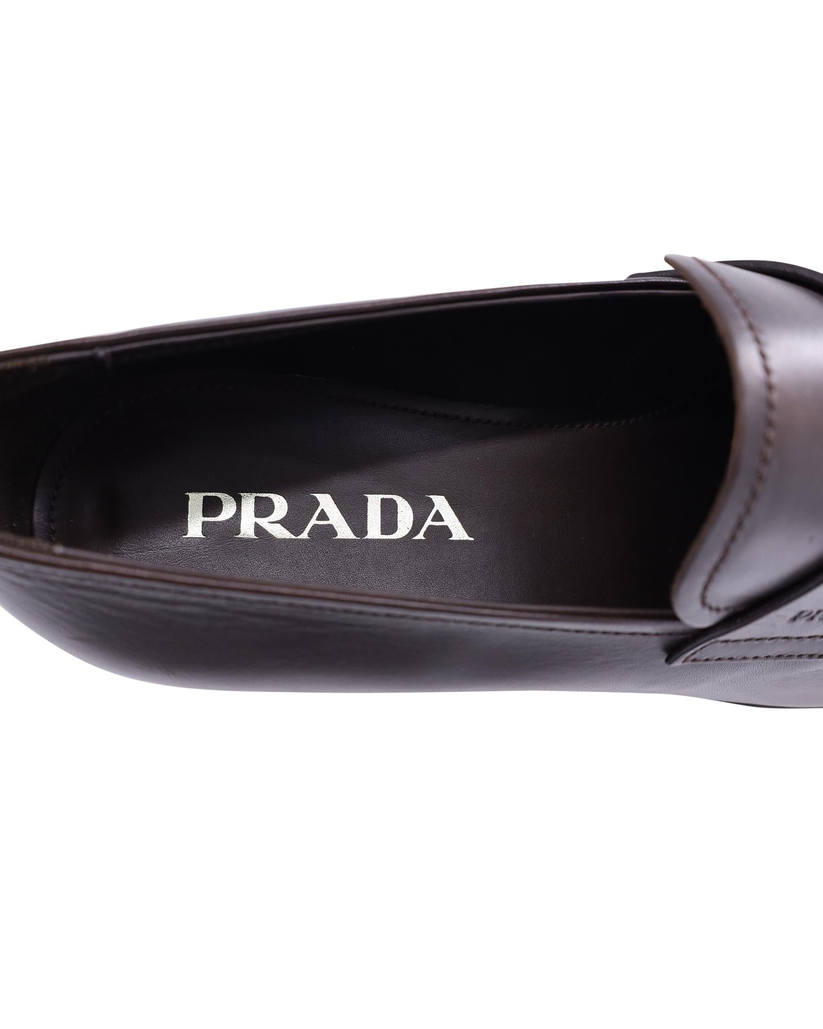 - Step into refined sophistication with Prada’s Brown Leather Loafers