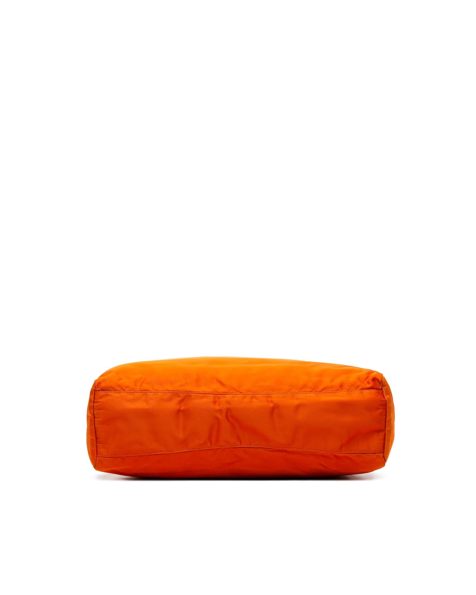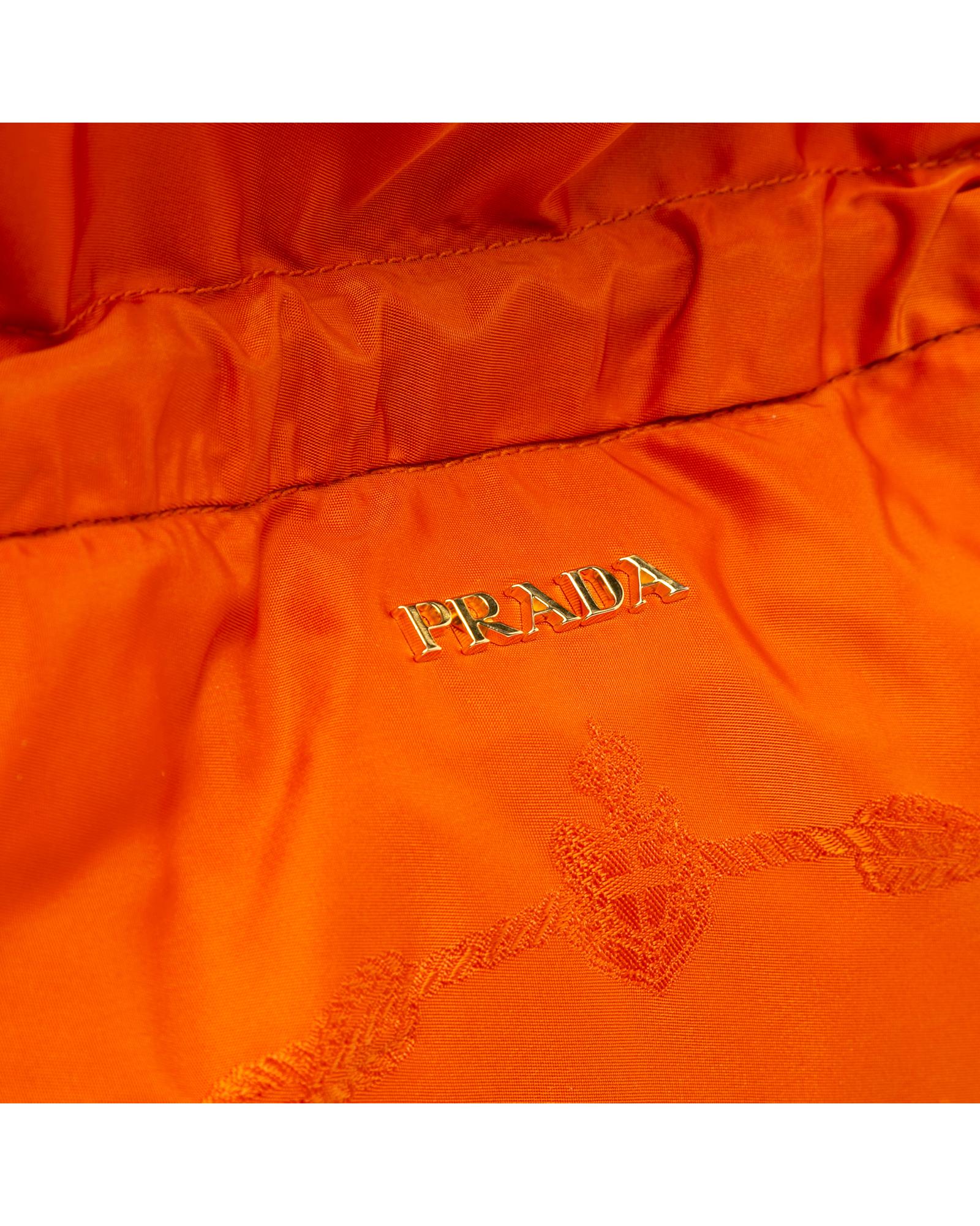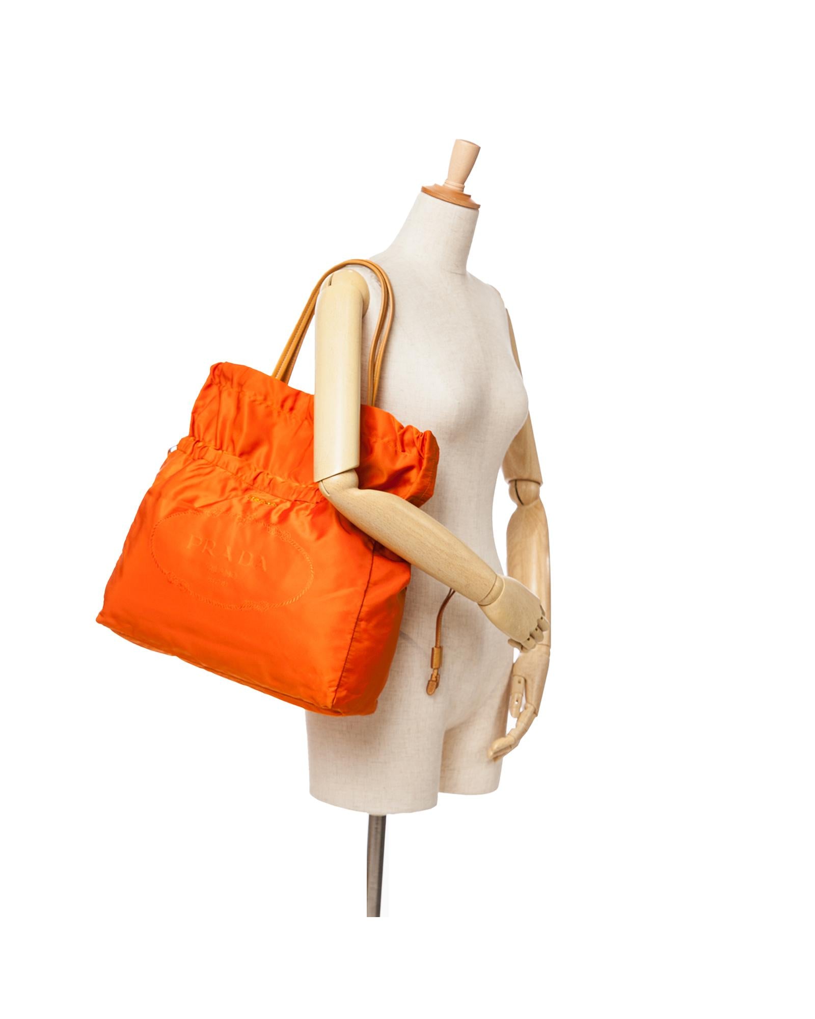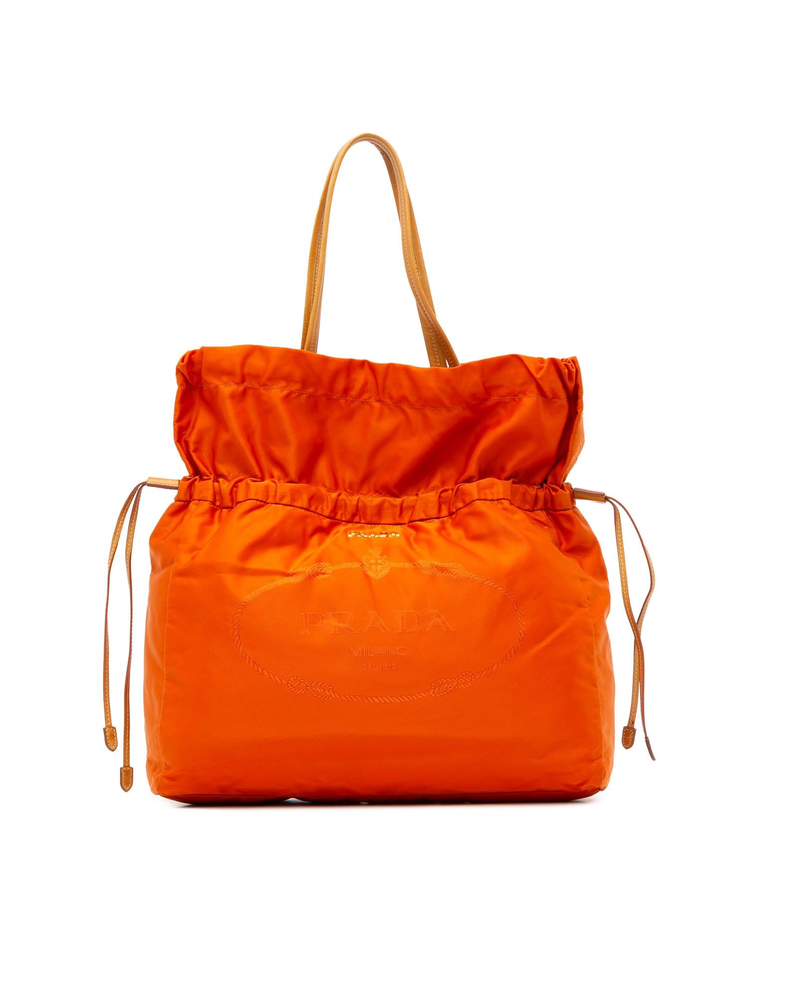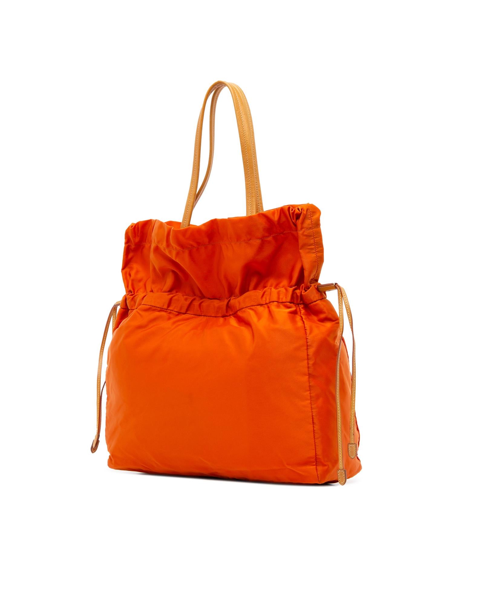 This tote bag features a nylon body flat leather shoulder straps a drawstring and magnetic snap closure and an interior zip pocket.Brand: Prada Vintage