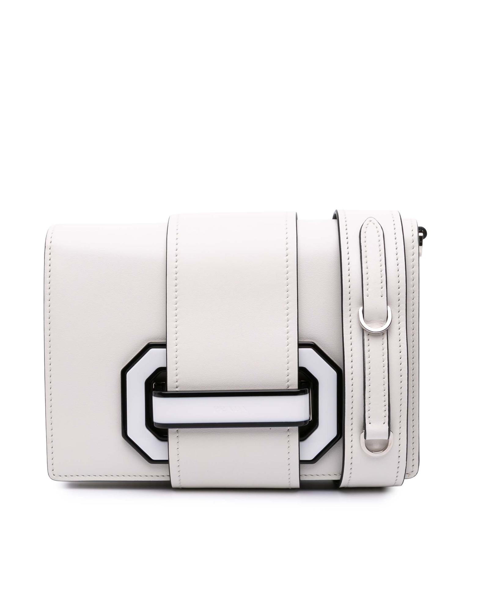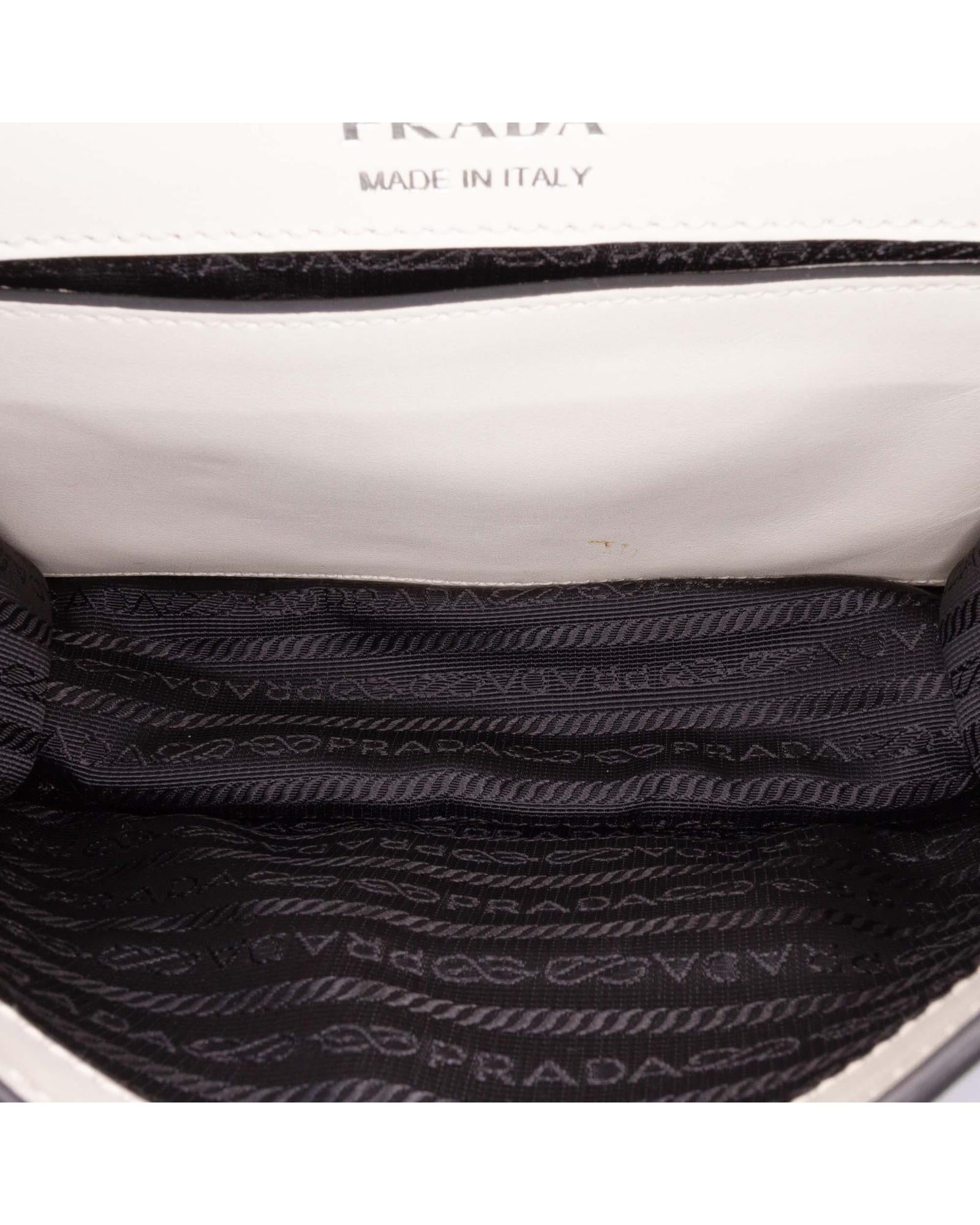 This crossbody bag features a leather body a flat leather strap a front flap with pull-through closure and interior slip pockets.Brand: Prada Vintage