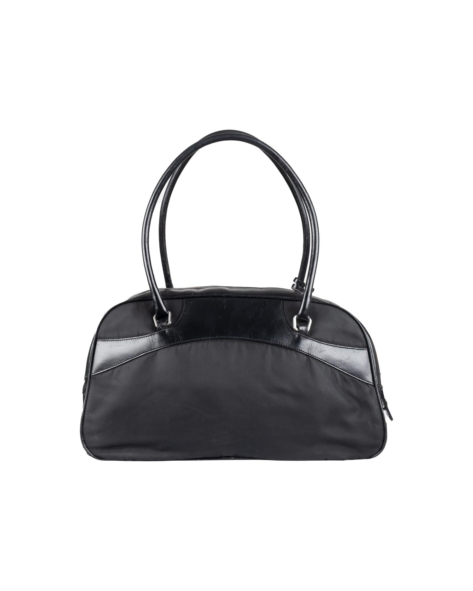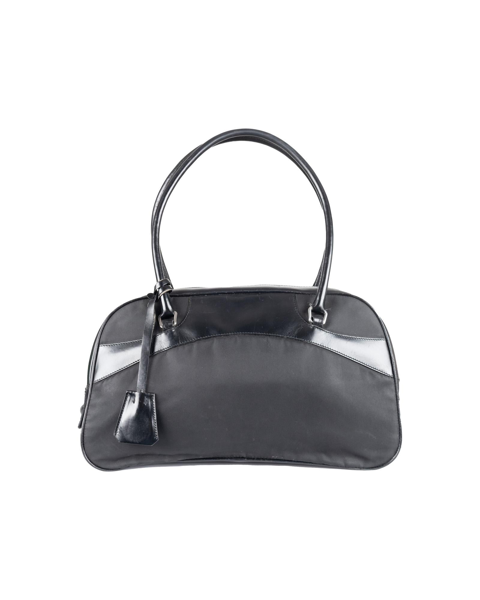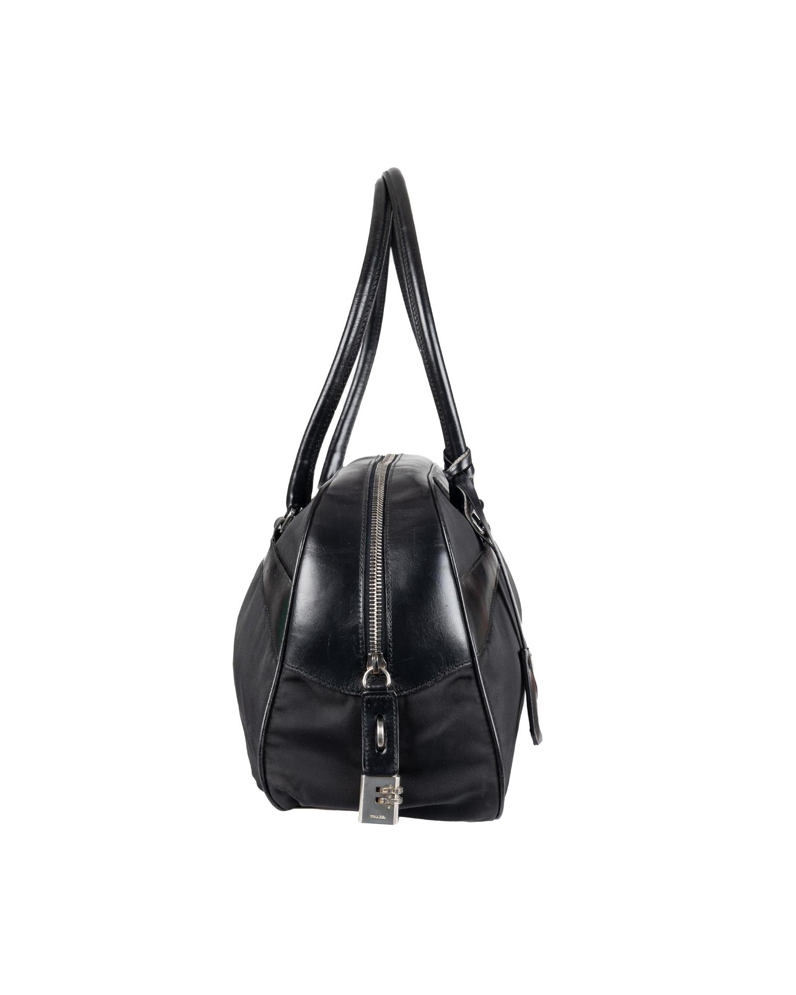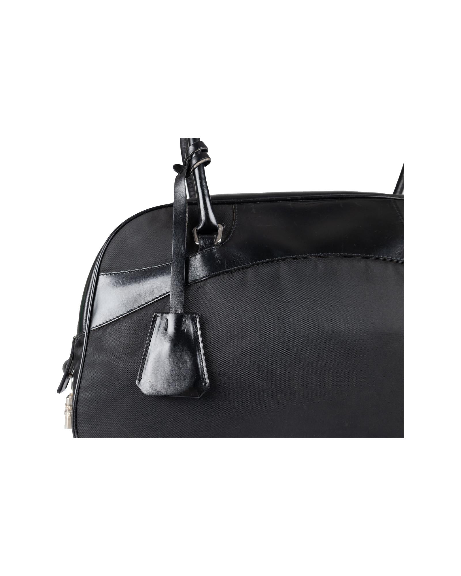 Vintage-Style Nylon and Leather Bowling Bag with Enameled Logo and Silver-Tone Hardware