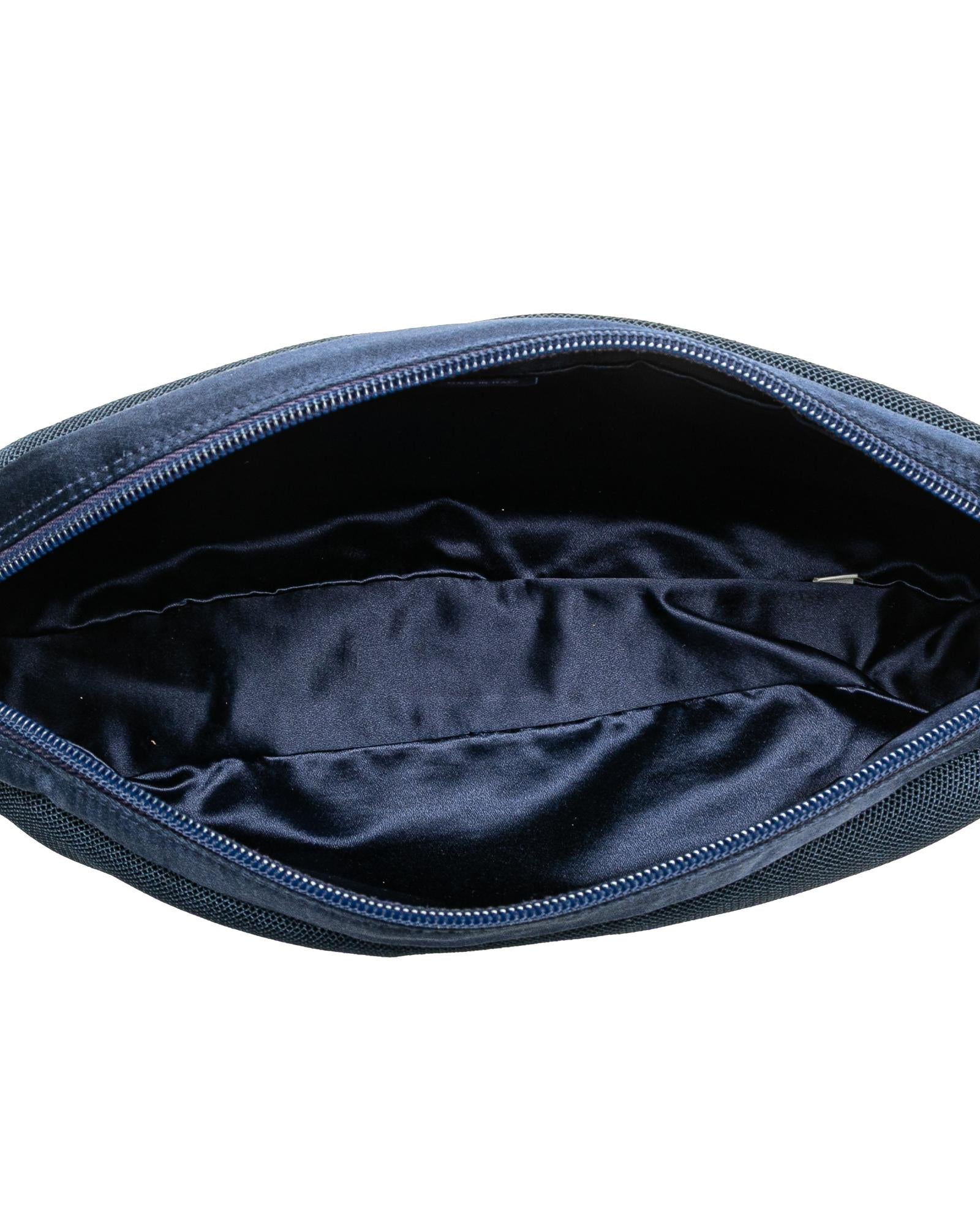 This shoulder bag features a mesh body a detachable flat strap and a top zip closure.