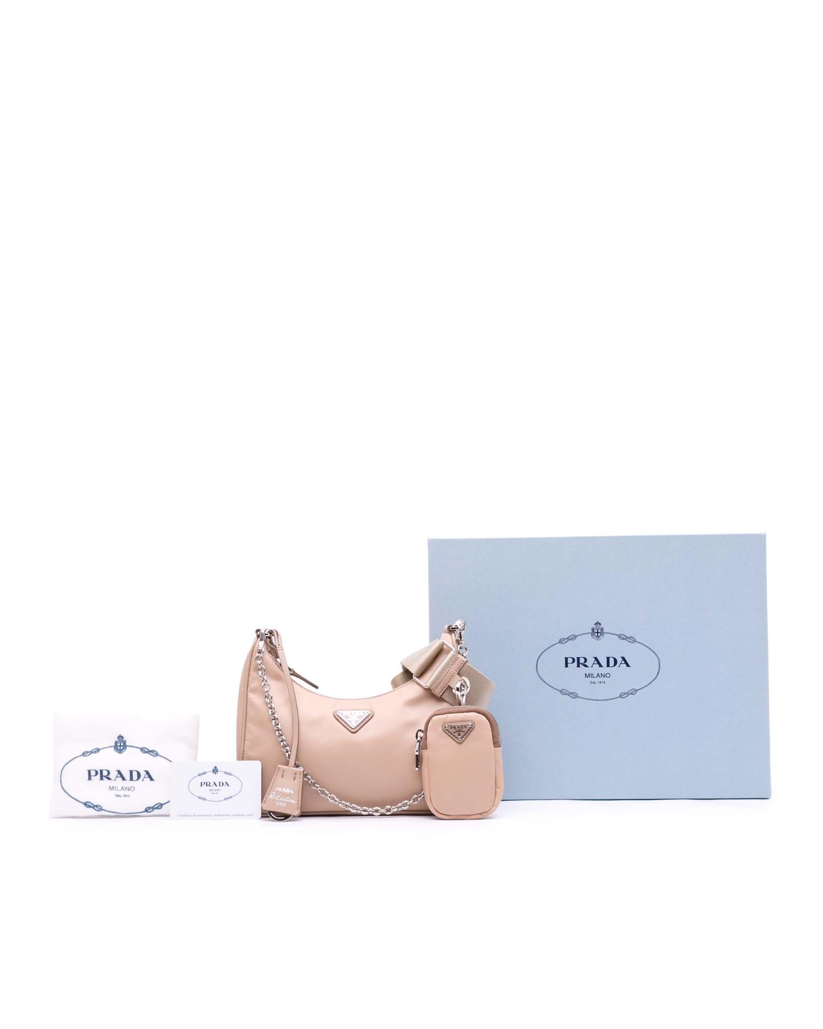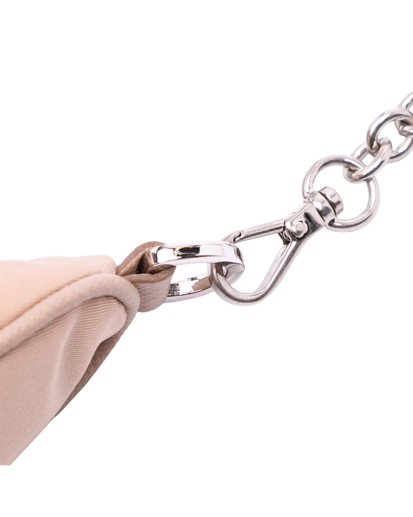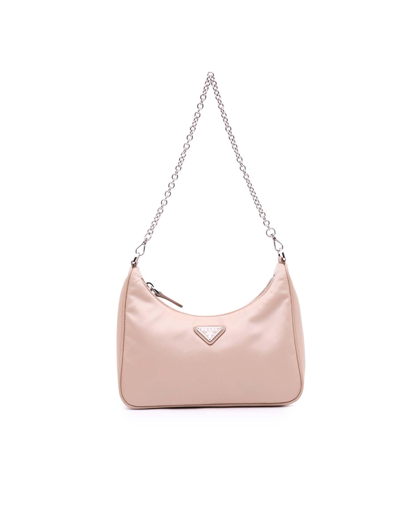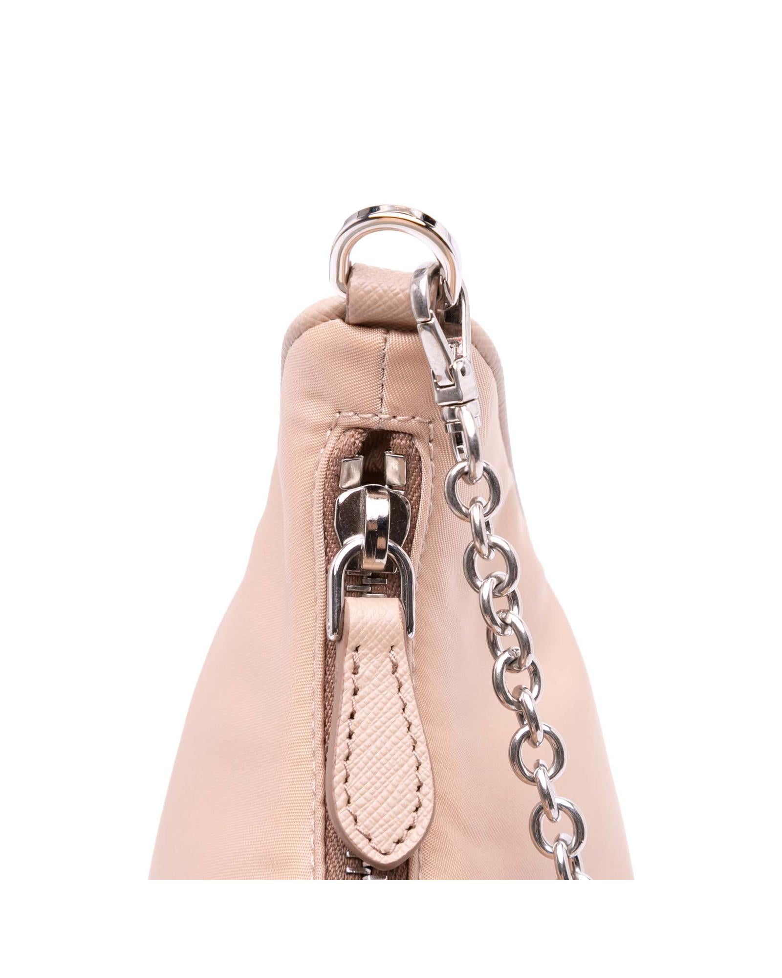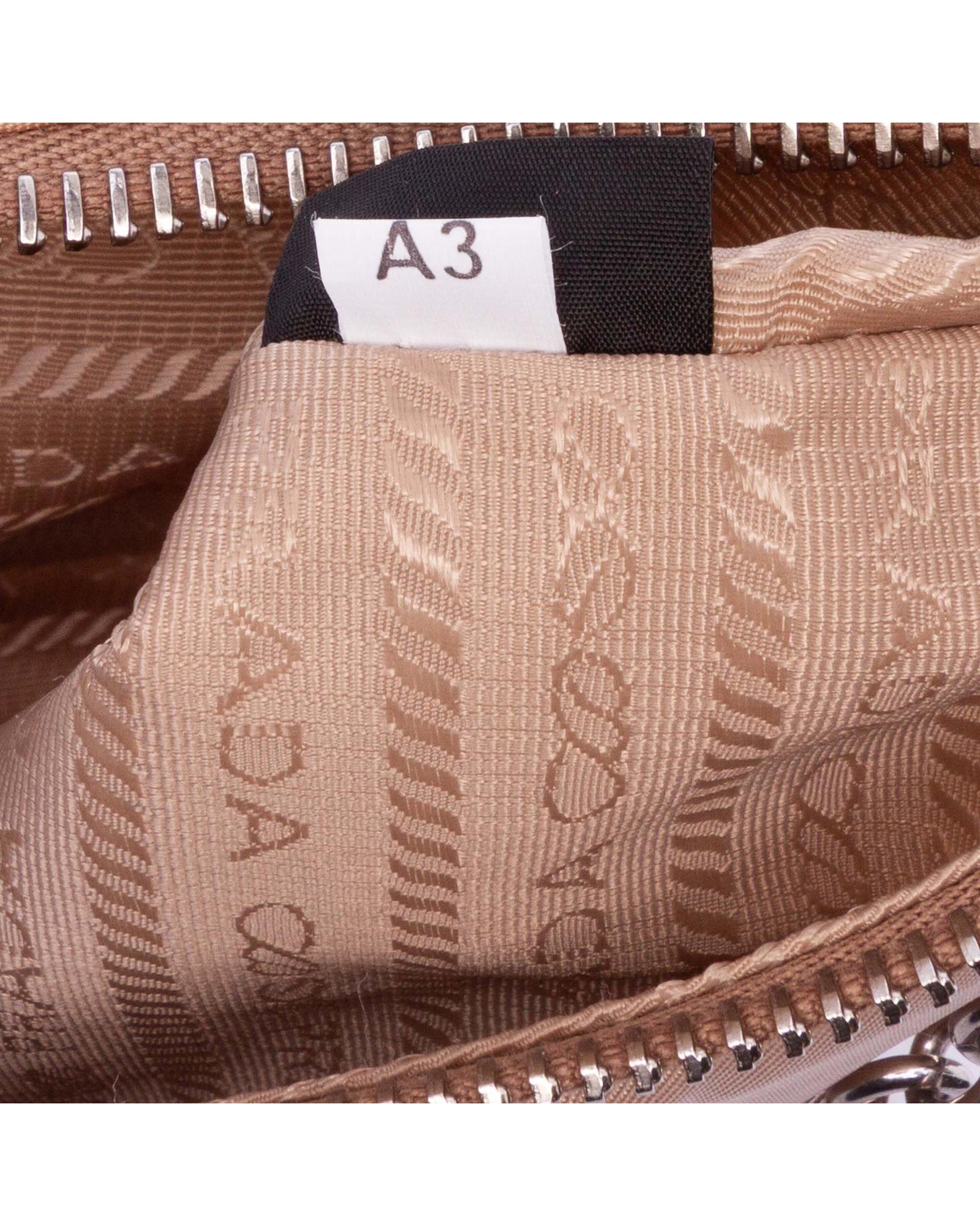 This satchel features a nylon body a silver-tone chain strap a detachable flat strap and a top zip closure.Brand: Prada