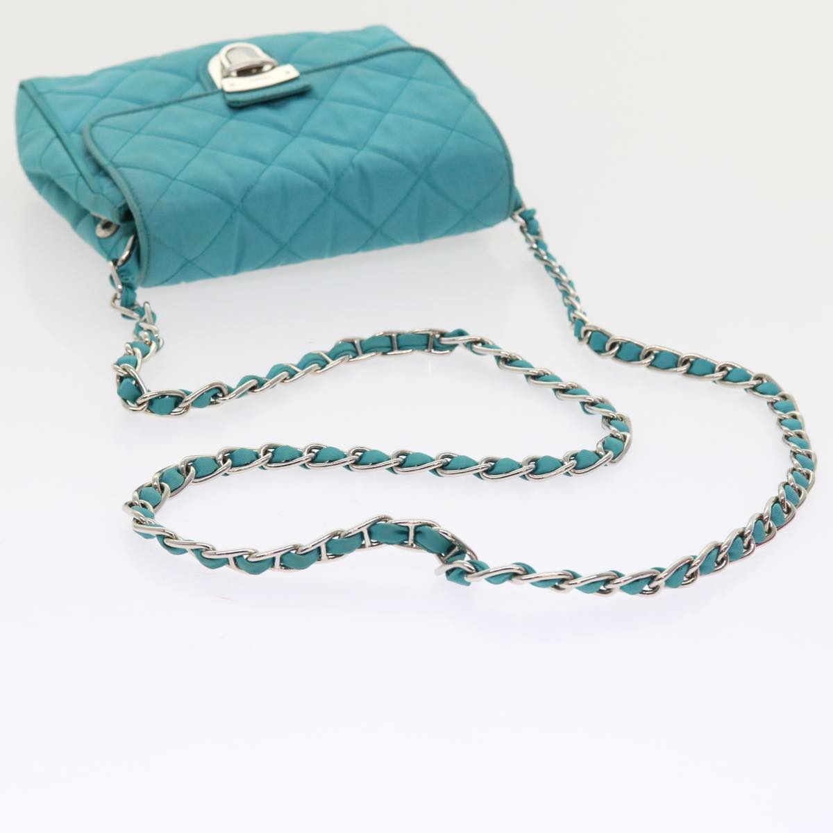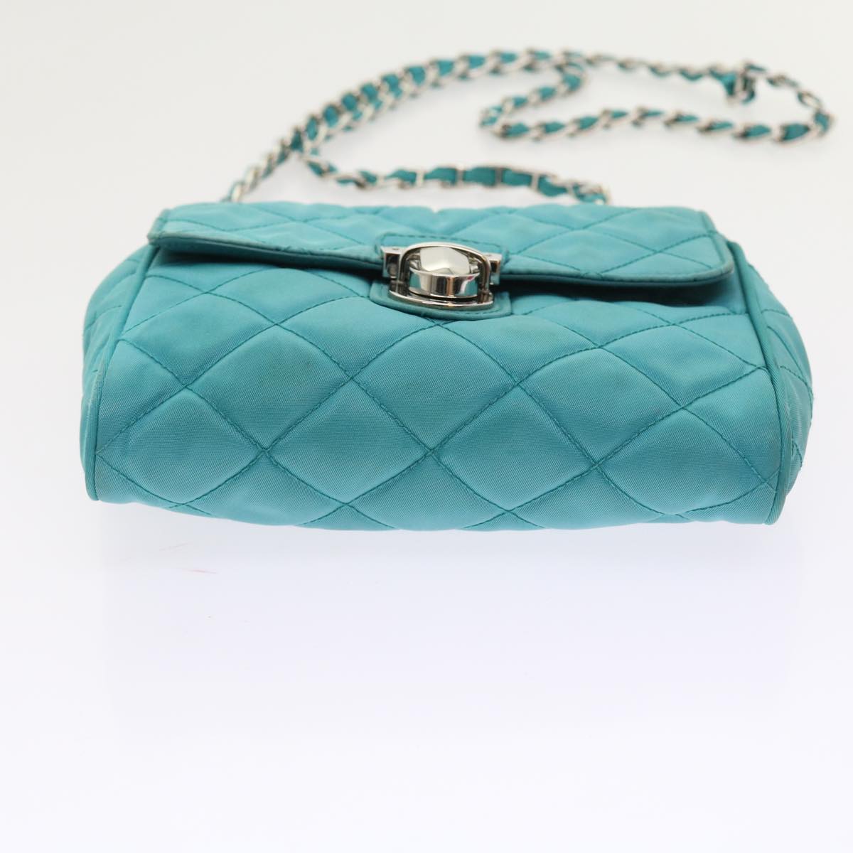 The Prada Tessuto in a vibrant Turquoise Blue shade is a stylish shoulder bag crafted from Nylon in Italy.
