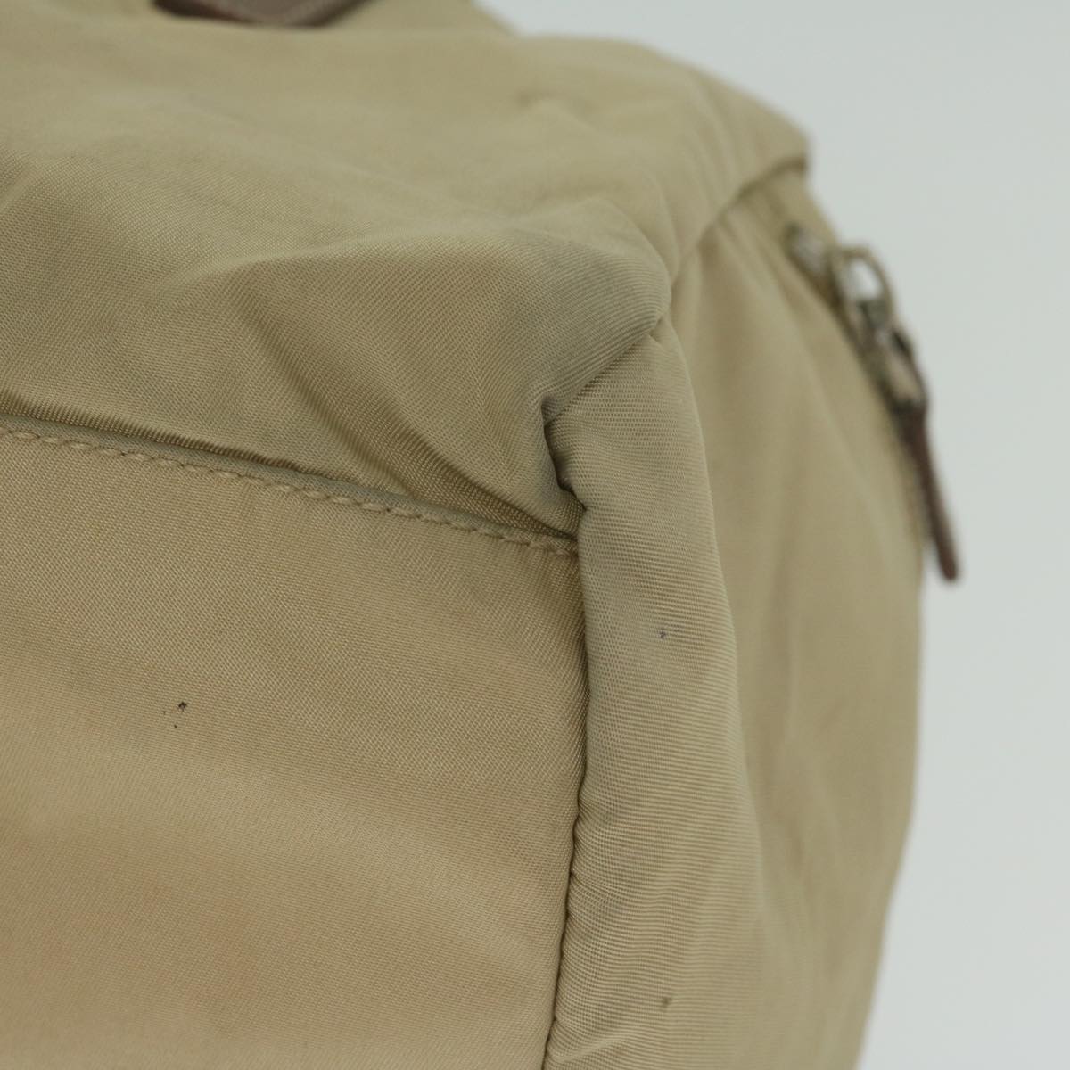 Outside the surface exhibits rubbing and a slight stain with the handle also showing signs of rubbing. Additionally there are scratches on the metal fittings. Inside there's rubbing and partial staining while the pocket is not specified. The corners display rubbing and there's a noticeable storage odor.