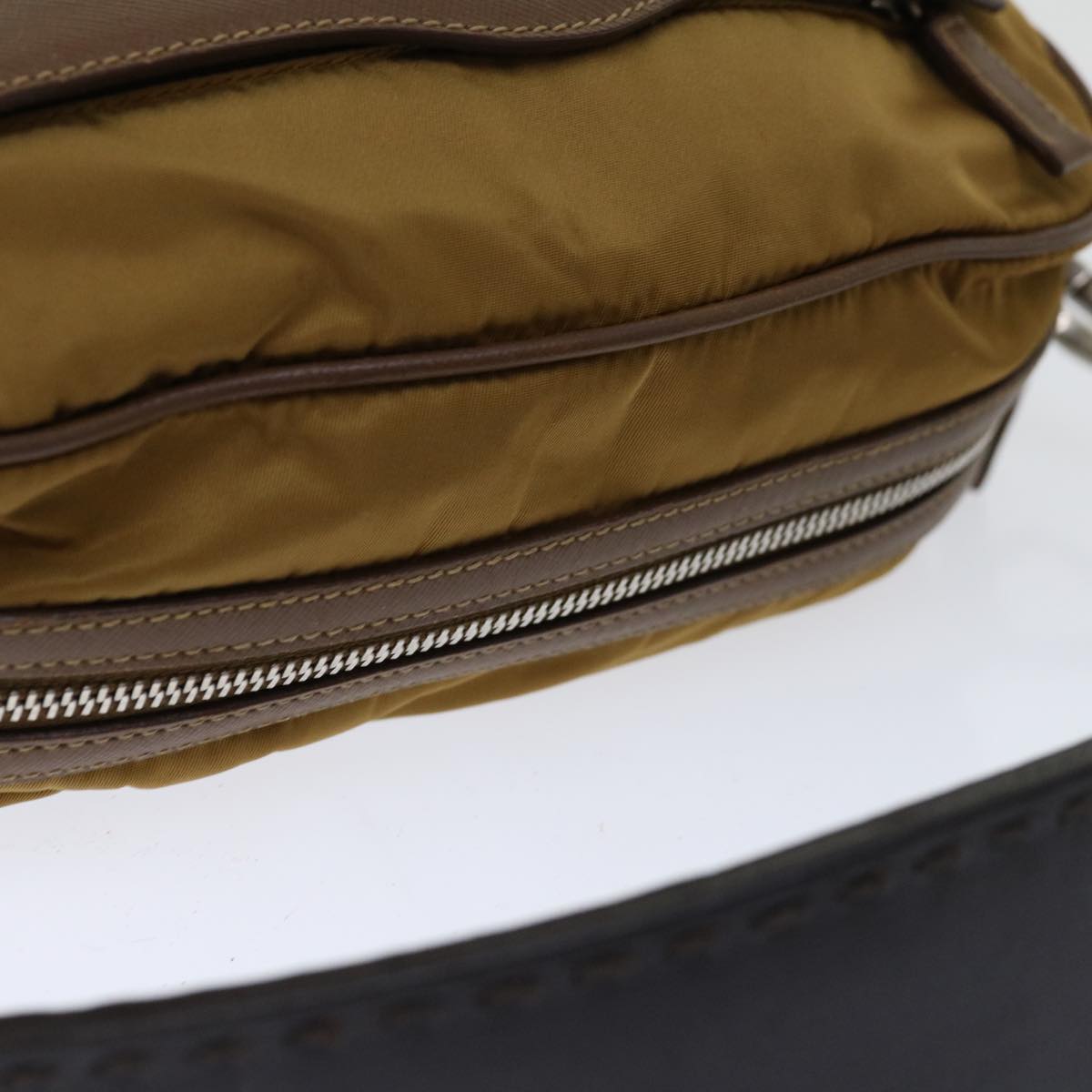 Brand: Prada Model: Tessuto Color: Brown Material: Synthetic Inclusions: / Dimensions: W24cm x H17cm x D8cm/ Shoulder Drop:20cm Serial number: 58 Country of origin: Italy Condition: AB - good condition. The Prada Tessuto shoulder bag in brown nylon embodies casual elegance and sophisticated practicality. With its terracotta color and durable nylon material it perfectly blends style and functionality. Its sleek design and quality finishes reflect Prada's signature craftsmanship. Spacious and well-organized this shoulder bag offers ample space for your daily essentials while its adjustable shoulder strap ensures comfortable carrying. On the outside there's slight deformation with lightly rubbed corners while the shoulder strap also shows light rubbing. Inside there are a few traces of rubbing accompanied by a storage odor. We recommend that you look at all the pictures before making your purchase to ensure that you are satisfied with the condition of the item.