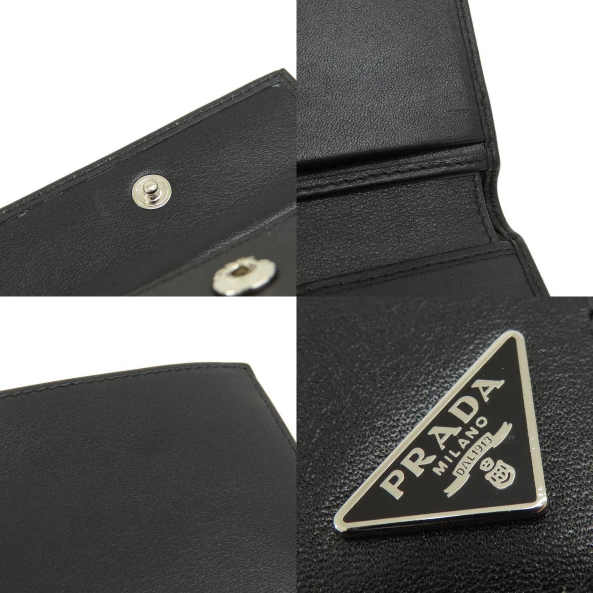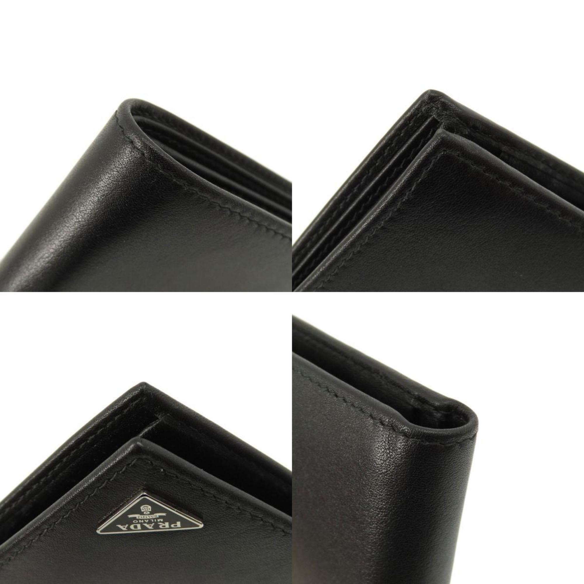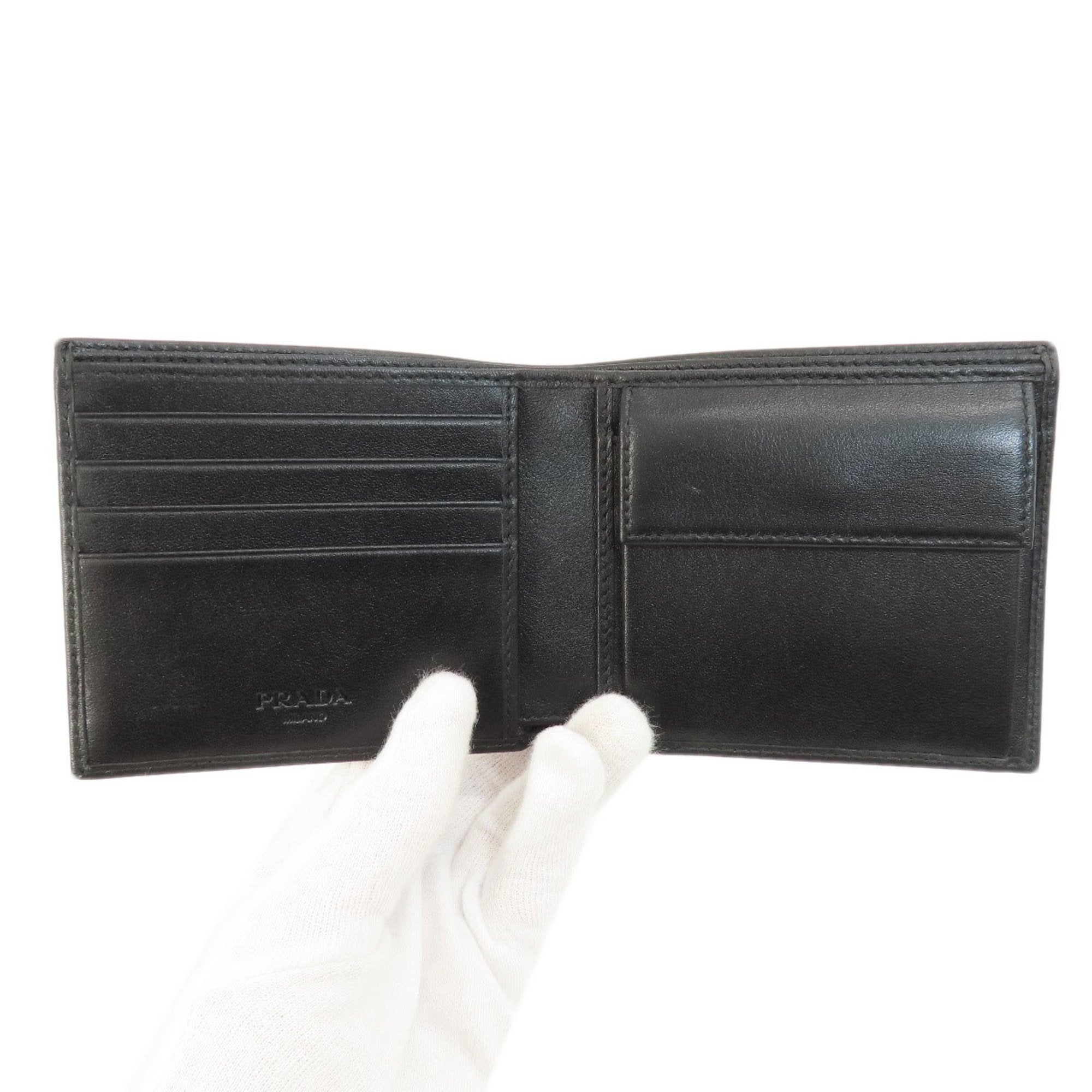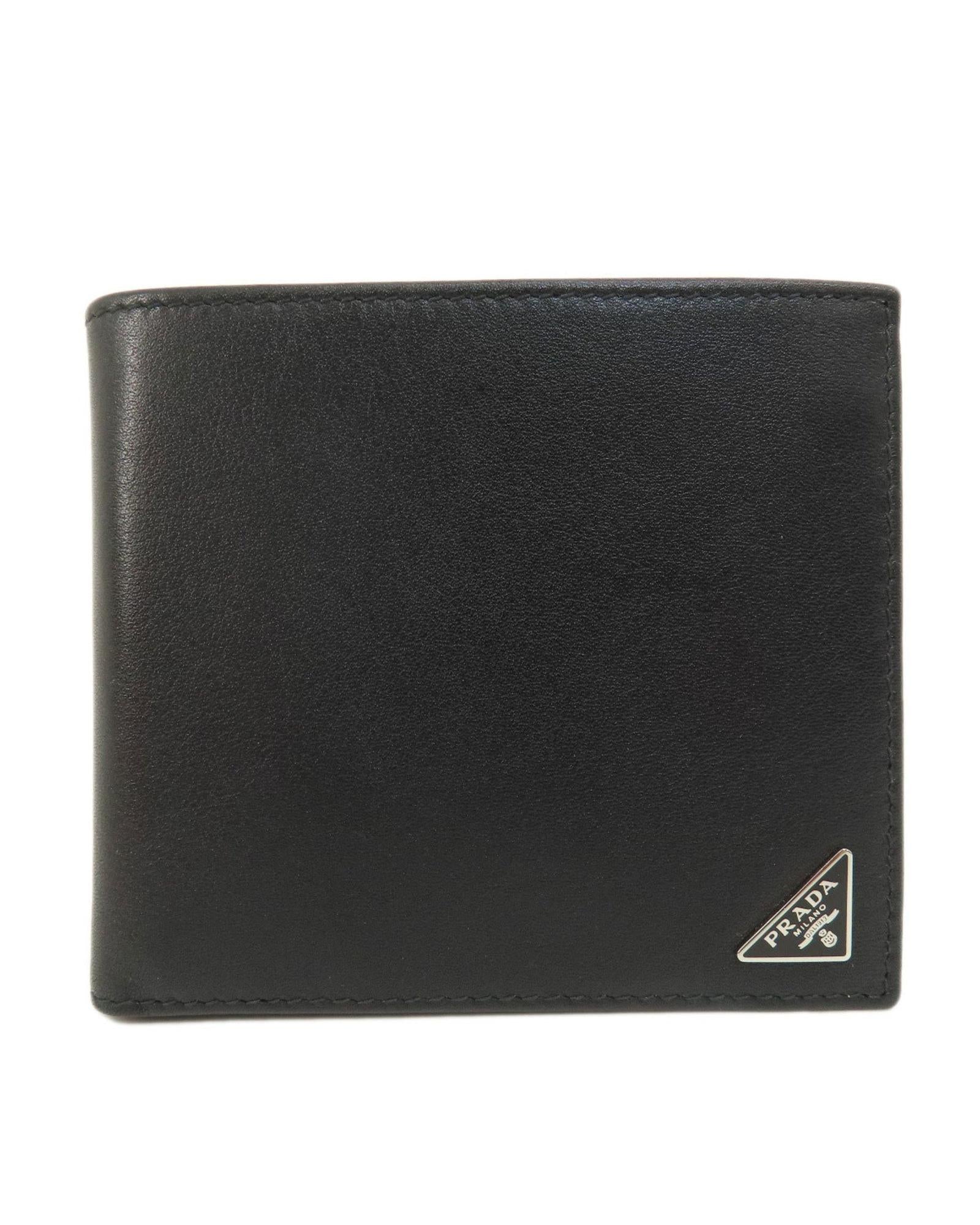 The Prada Saffiano two-fold wallet is a unisex luxury accessory in black leather. Its sophisticated design and Saffiano leather workmanship make it an elegant and durable choice for organizing your cards and money.