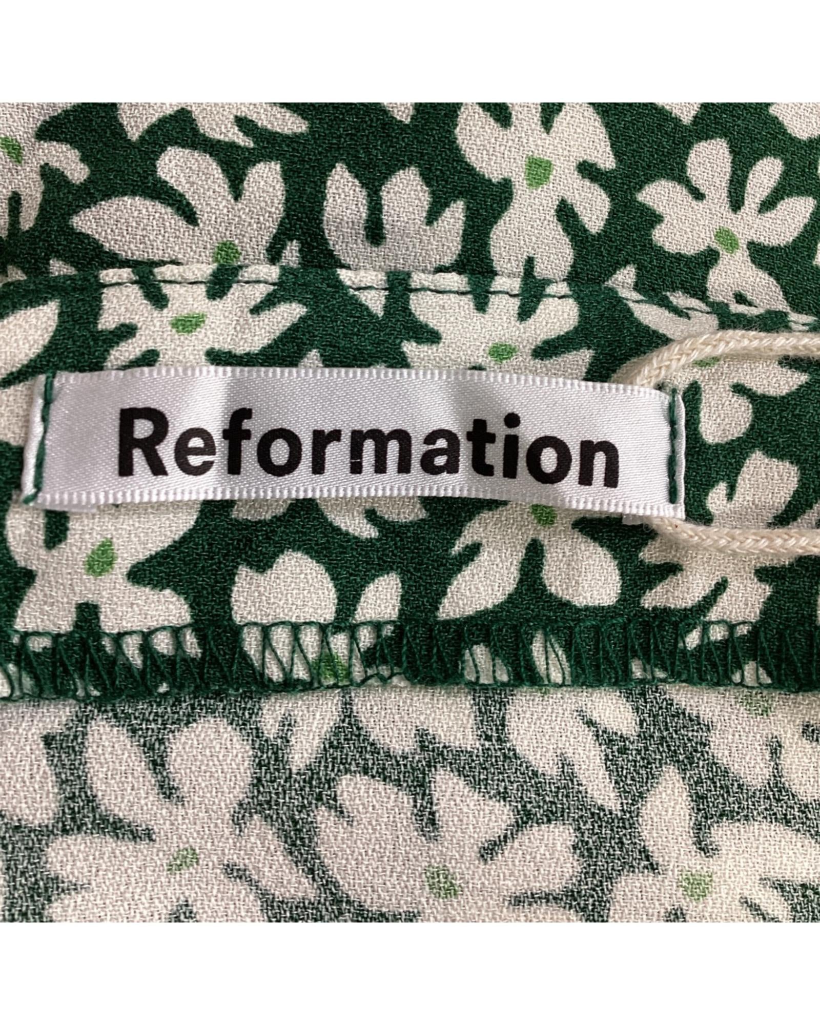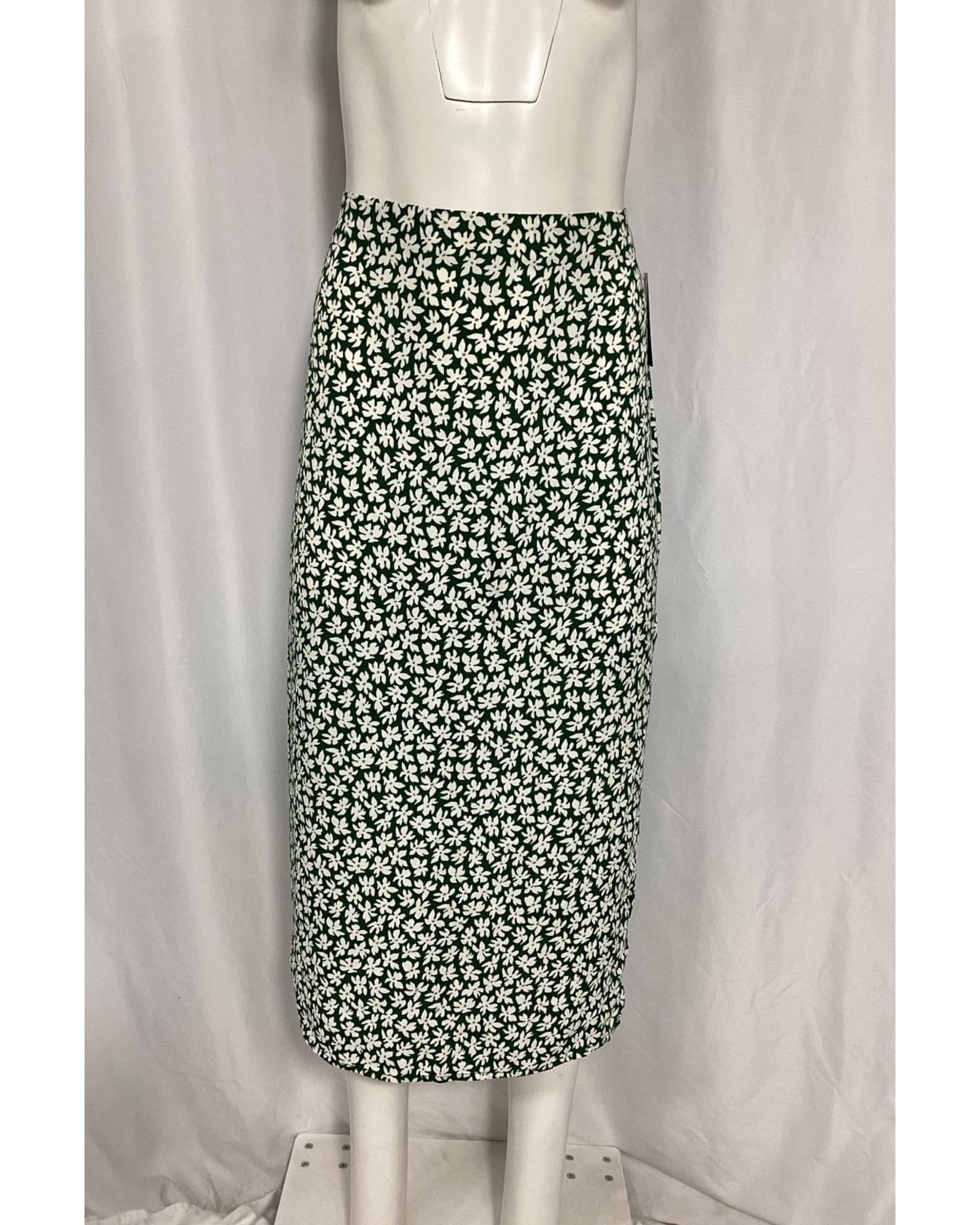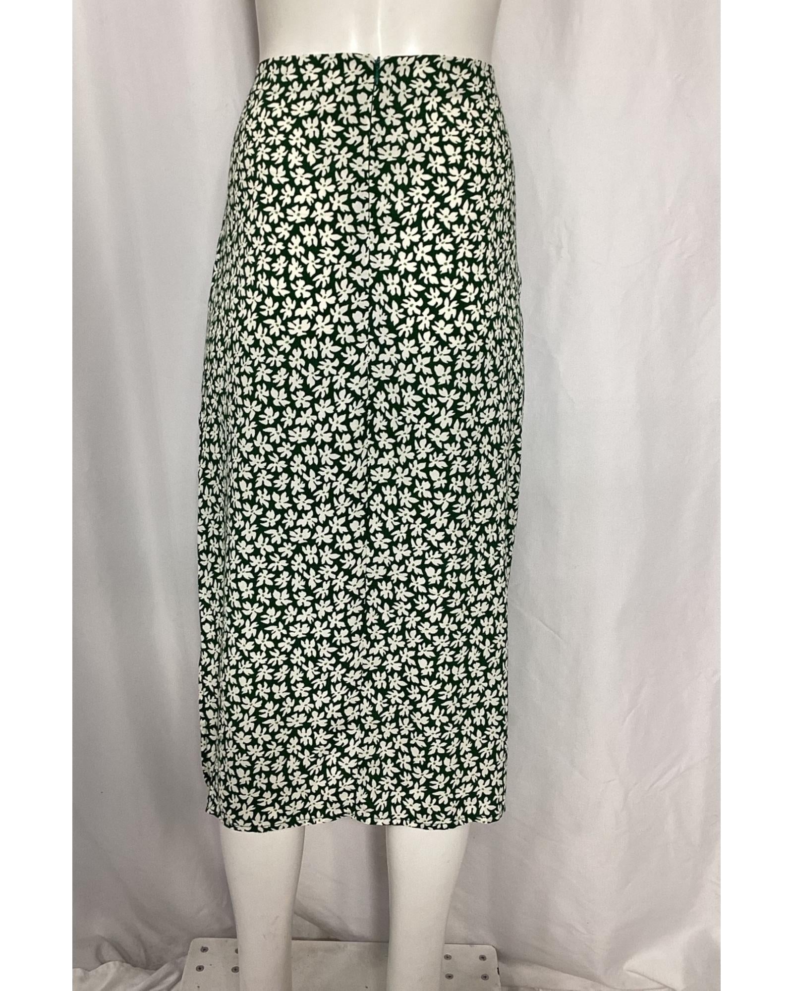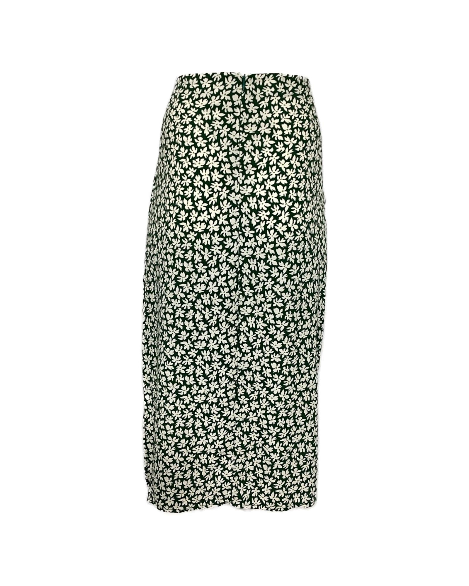 - Reformation Floral Printed Slit Midi Skirt in green viscose