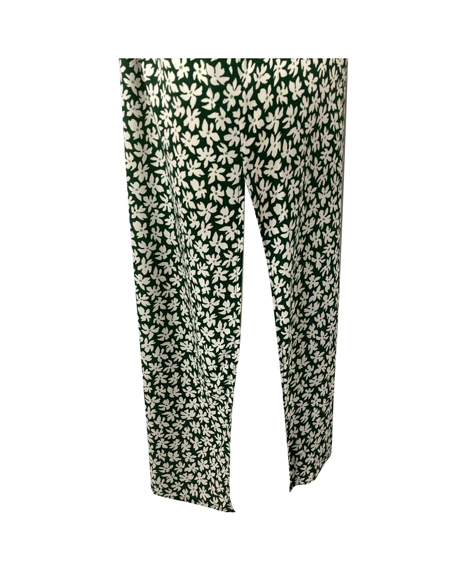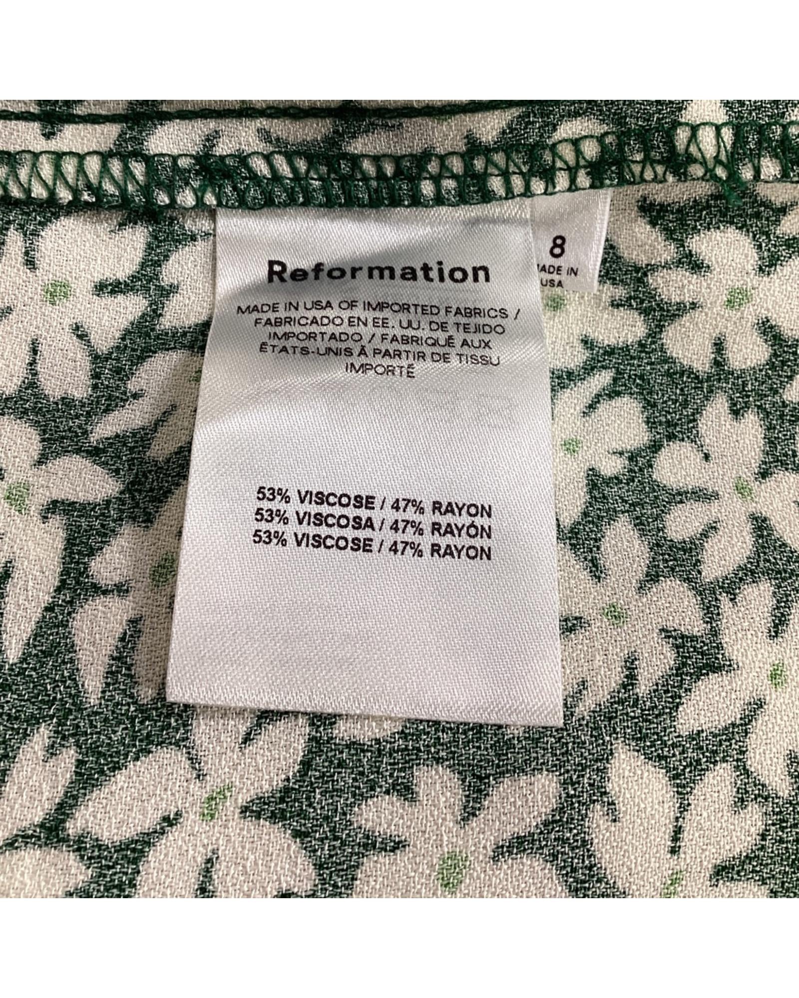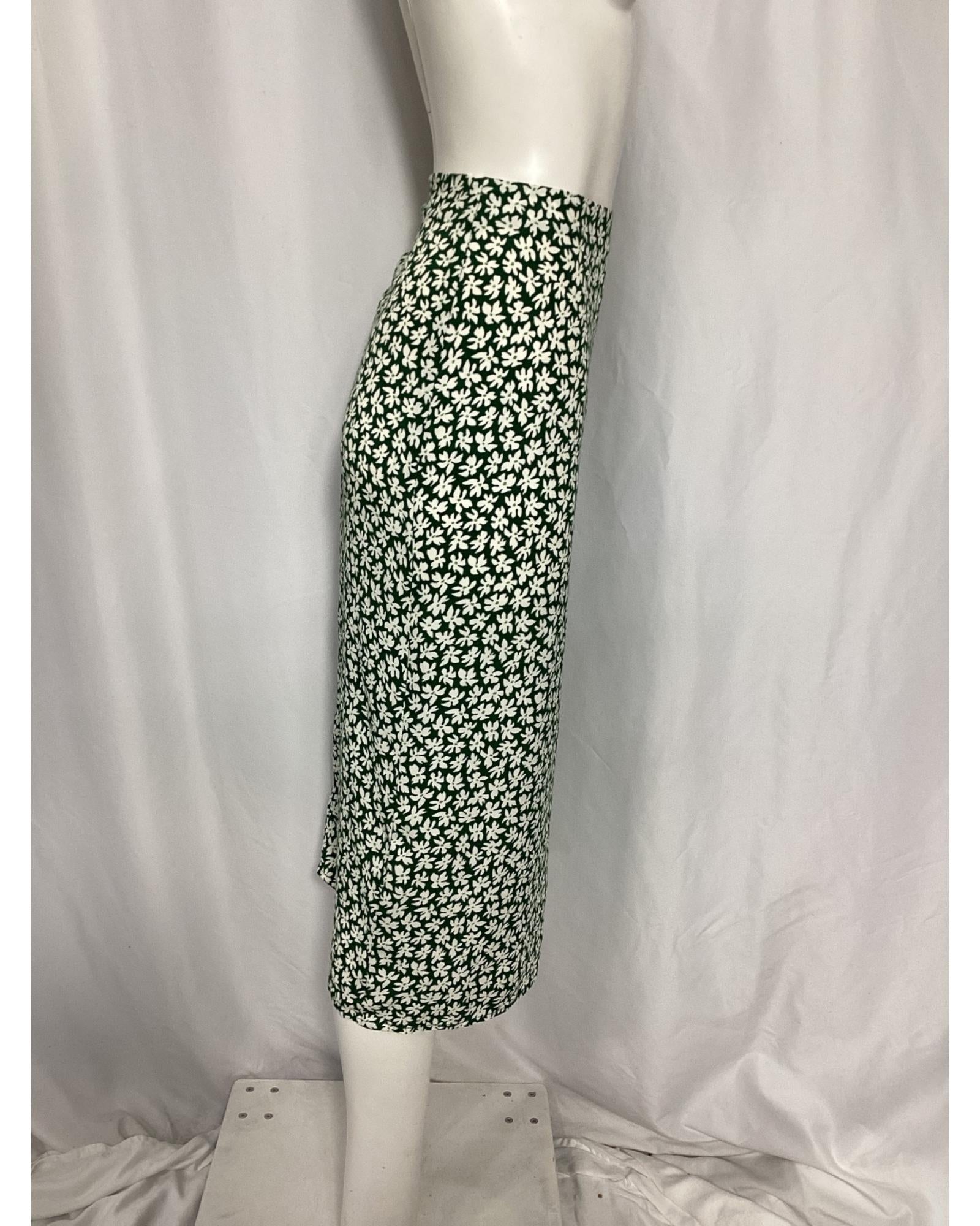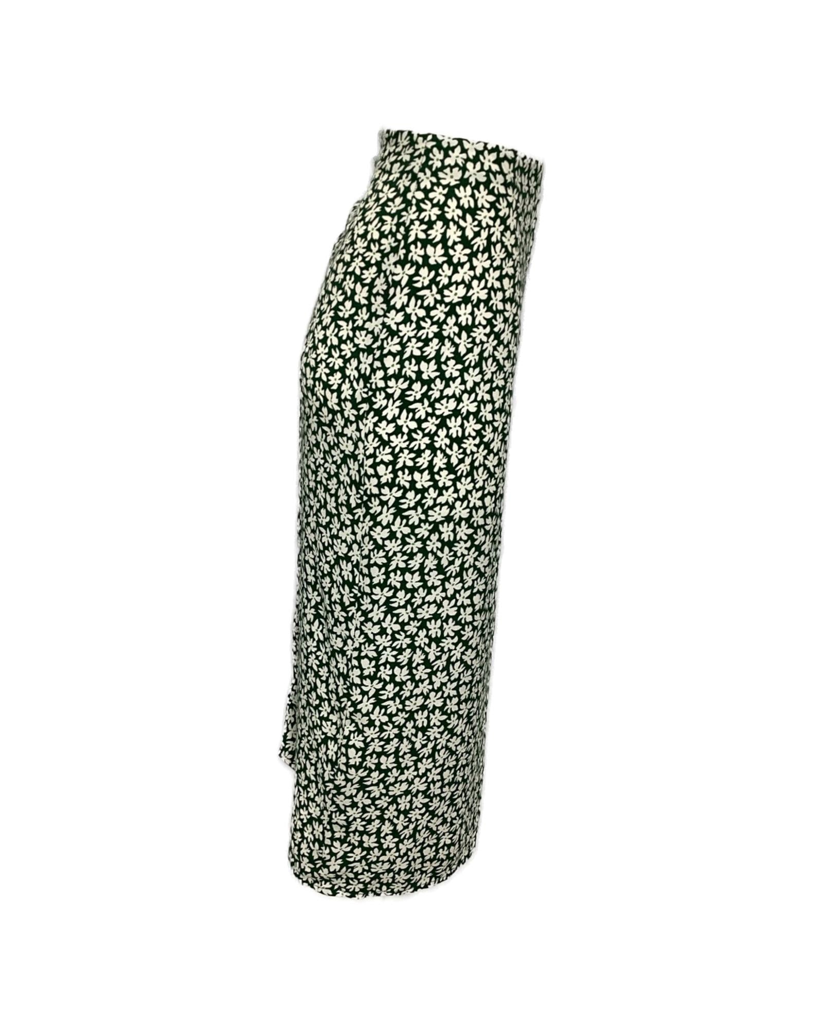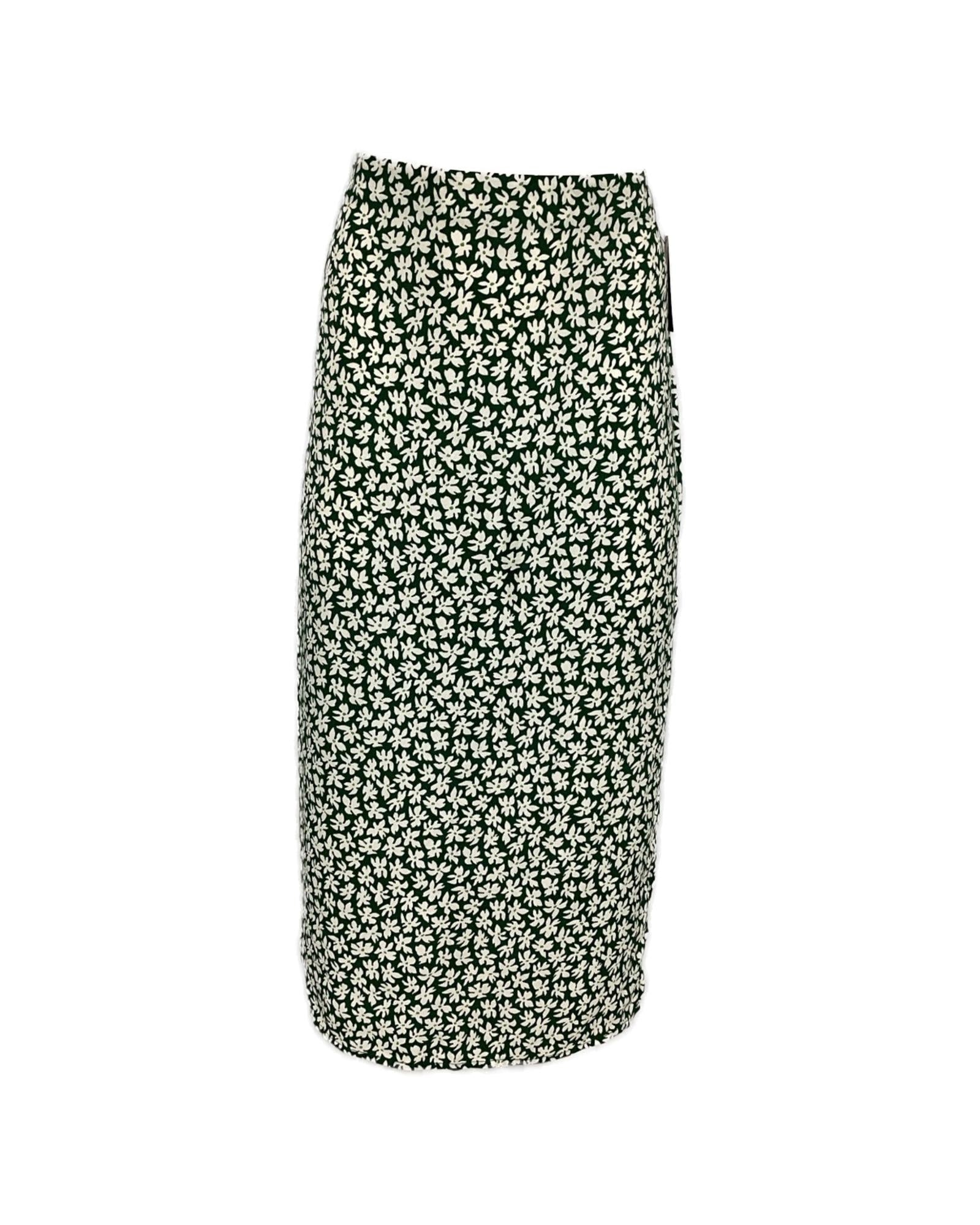 - Reformation Floral Printed Slit Midi Skirt in green viscose