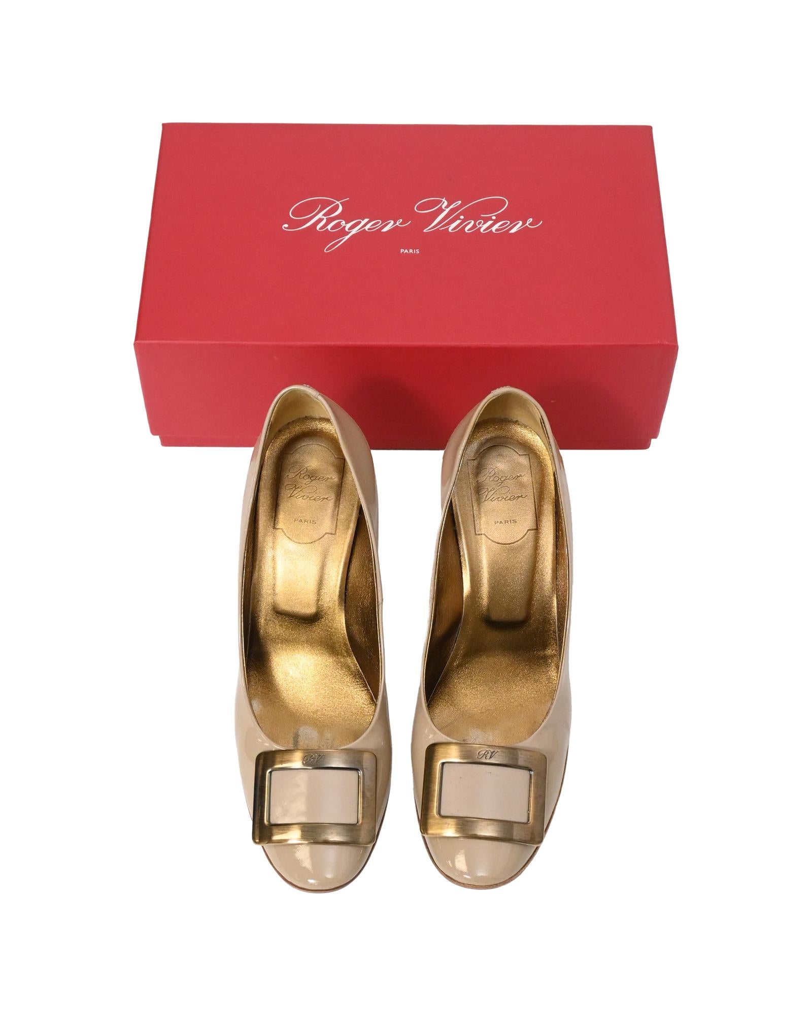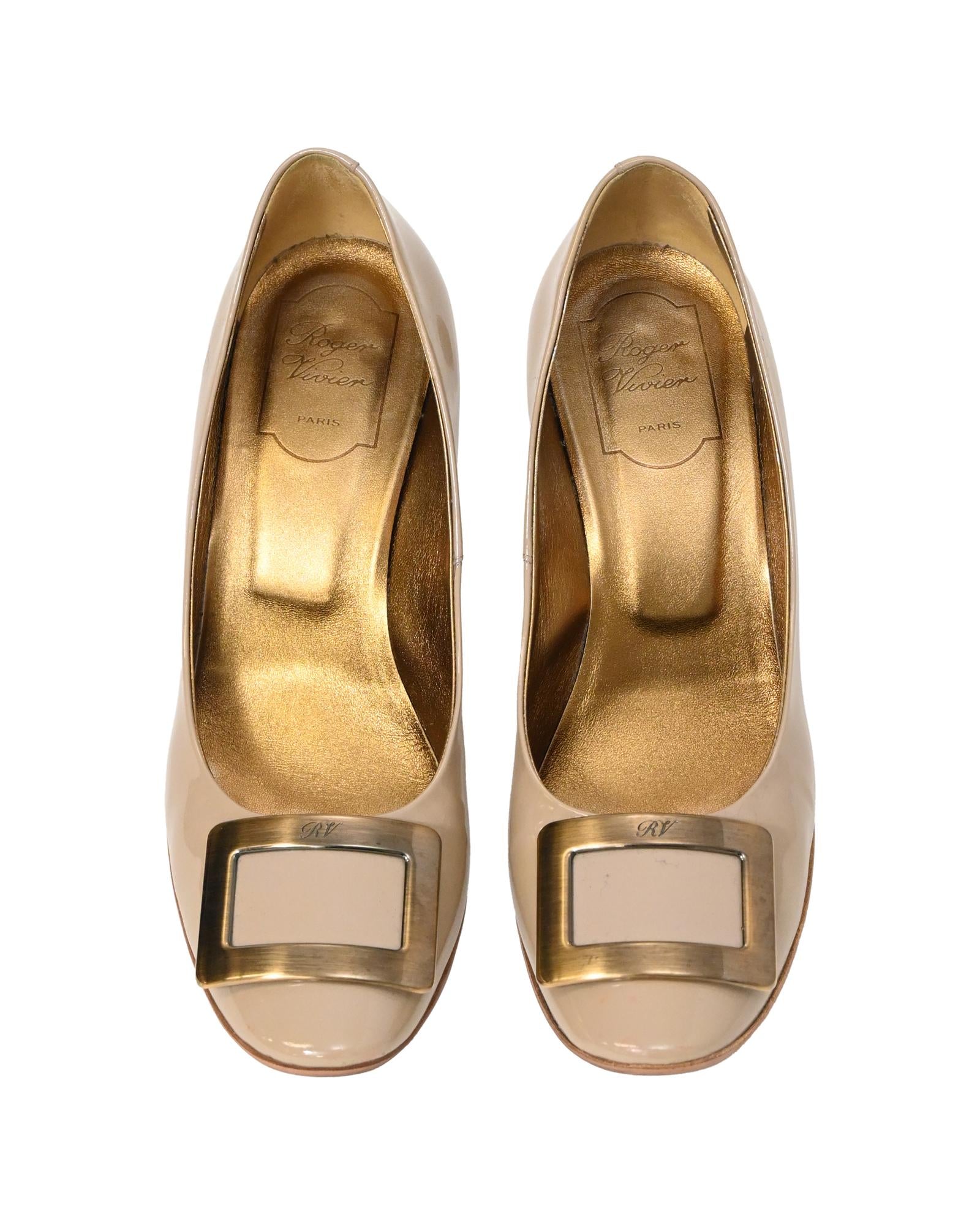 - Roger Vivier Trompette Pumps in Beige Patent Leather