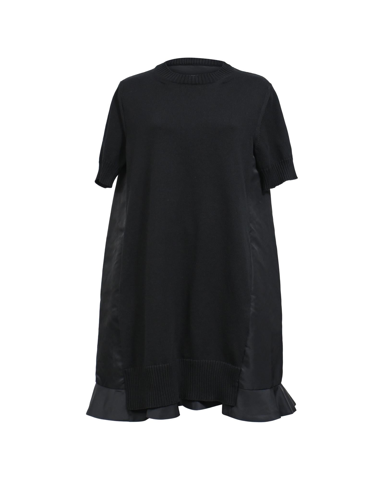 - Sacai Pleated Hem Mini Dress in Black Nylon