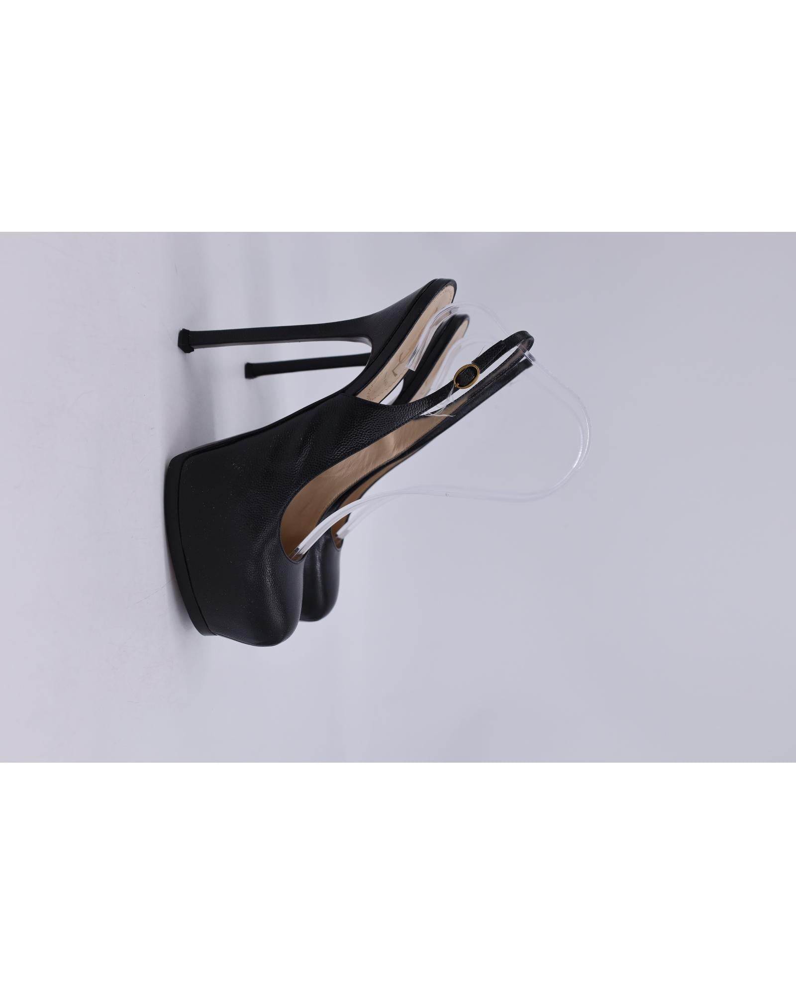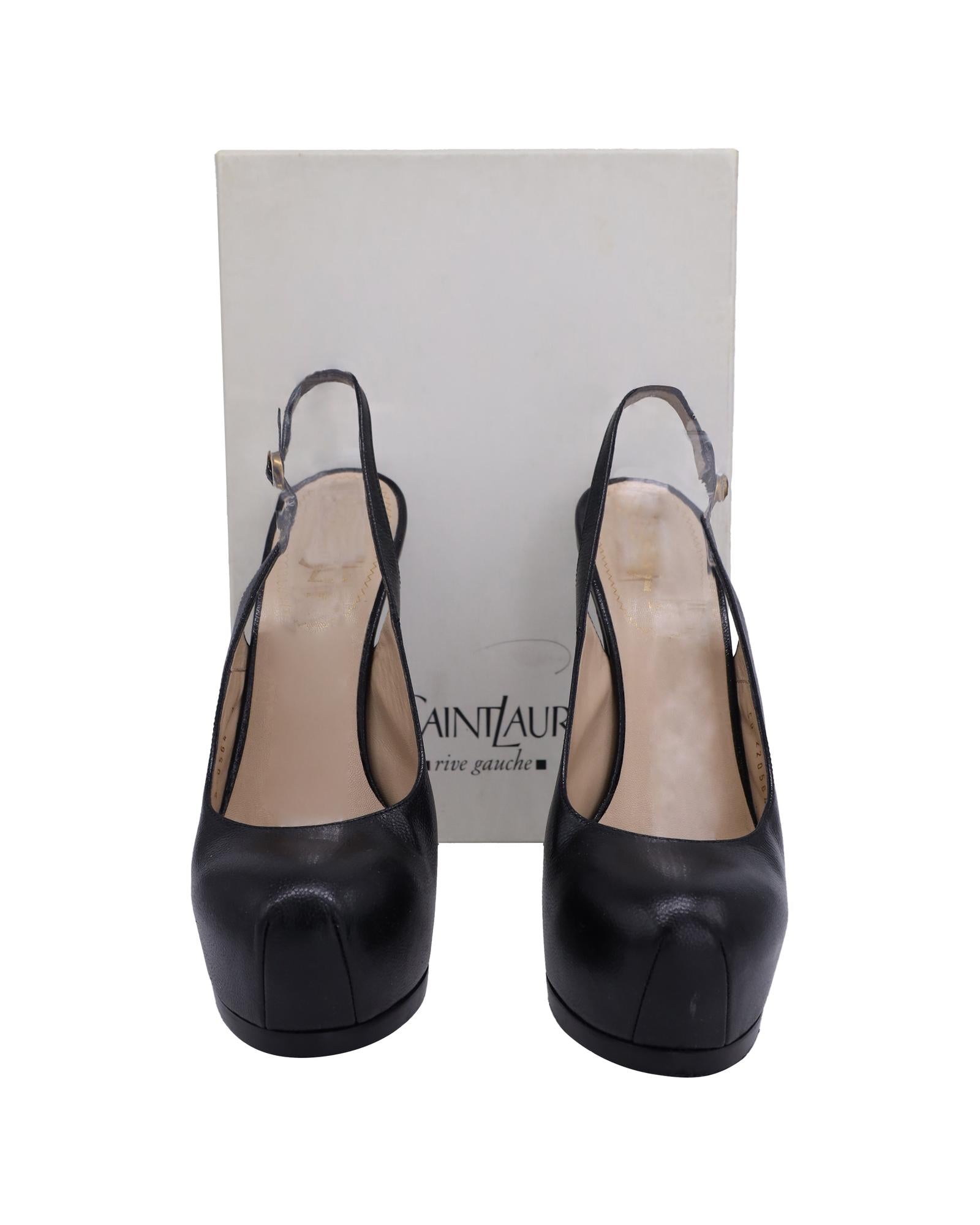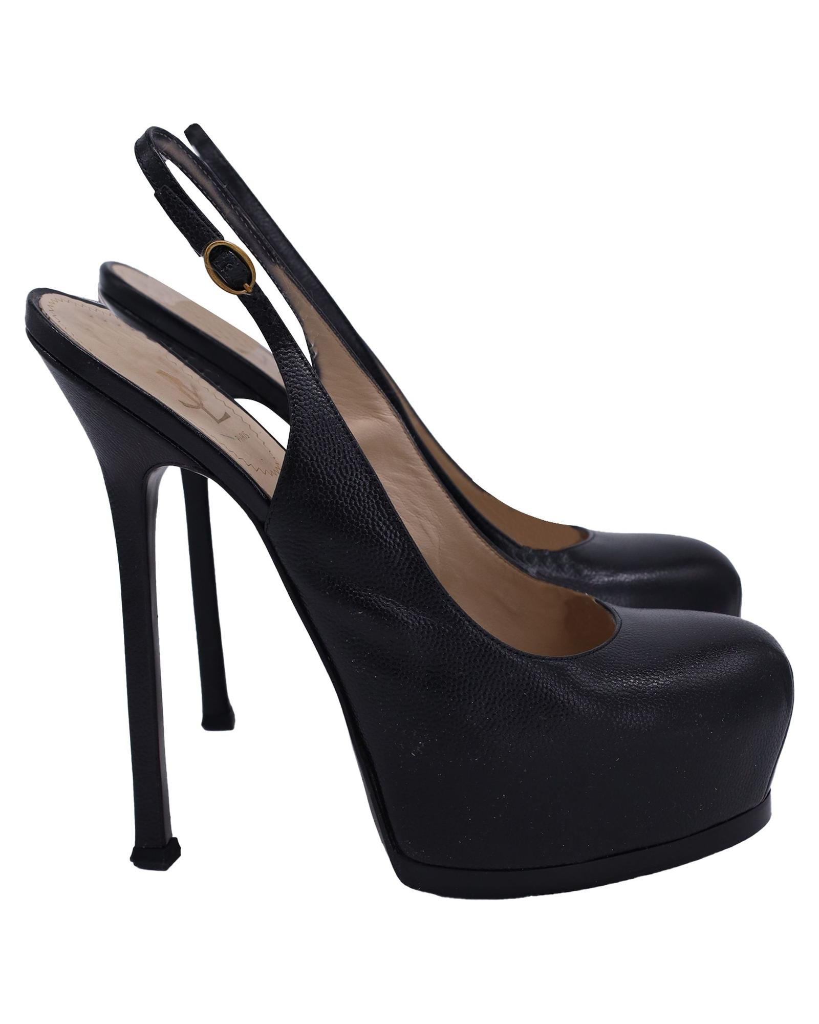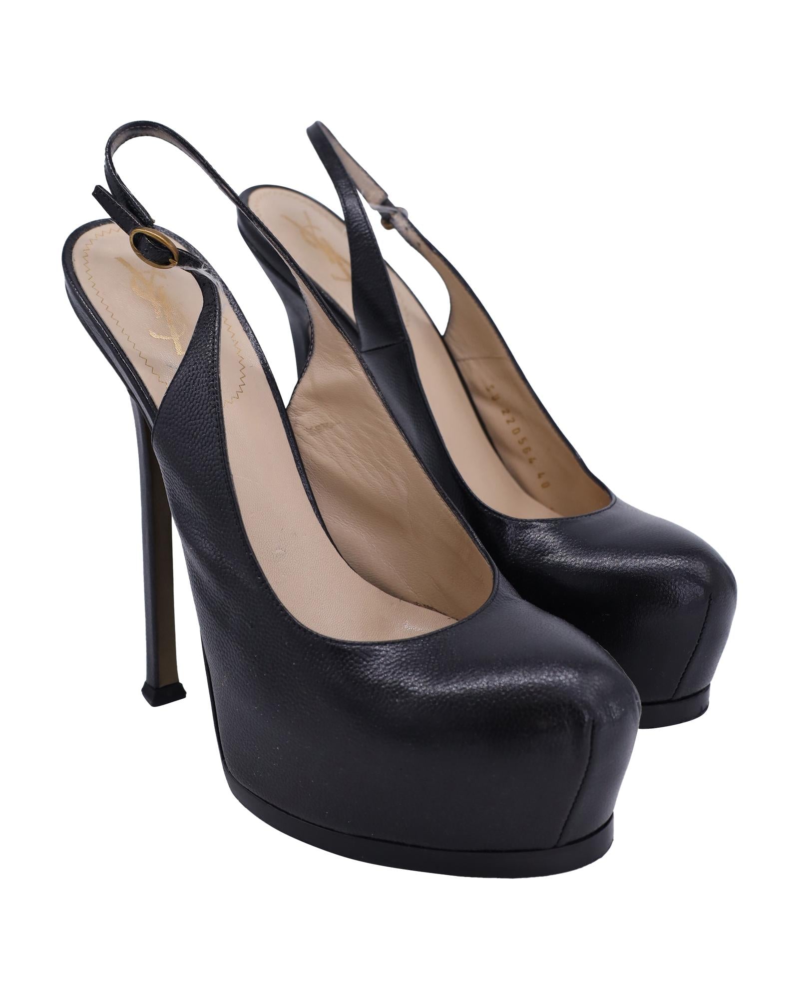 • Saint Laurent YSL Vernigolf Tribtoo Slingback Pumps in luxurious black leather
