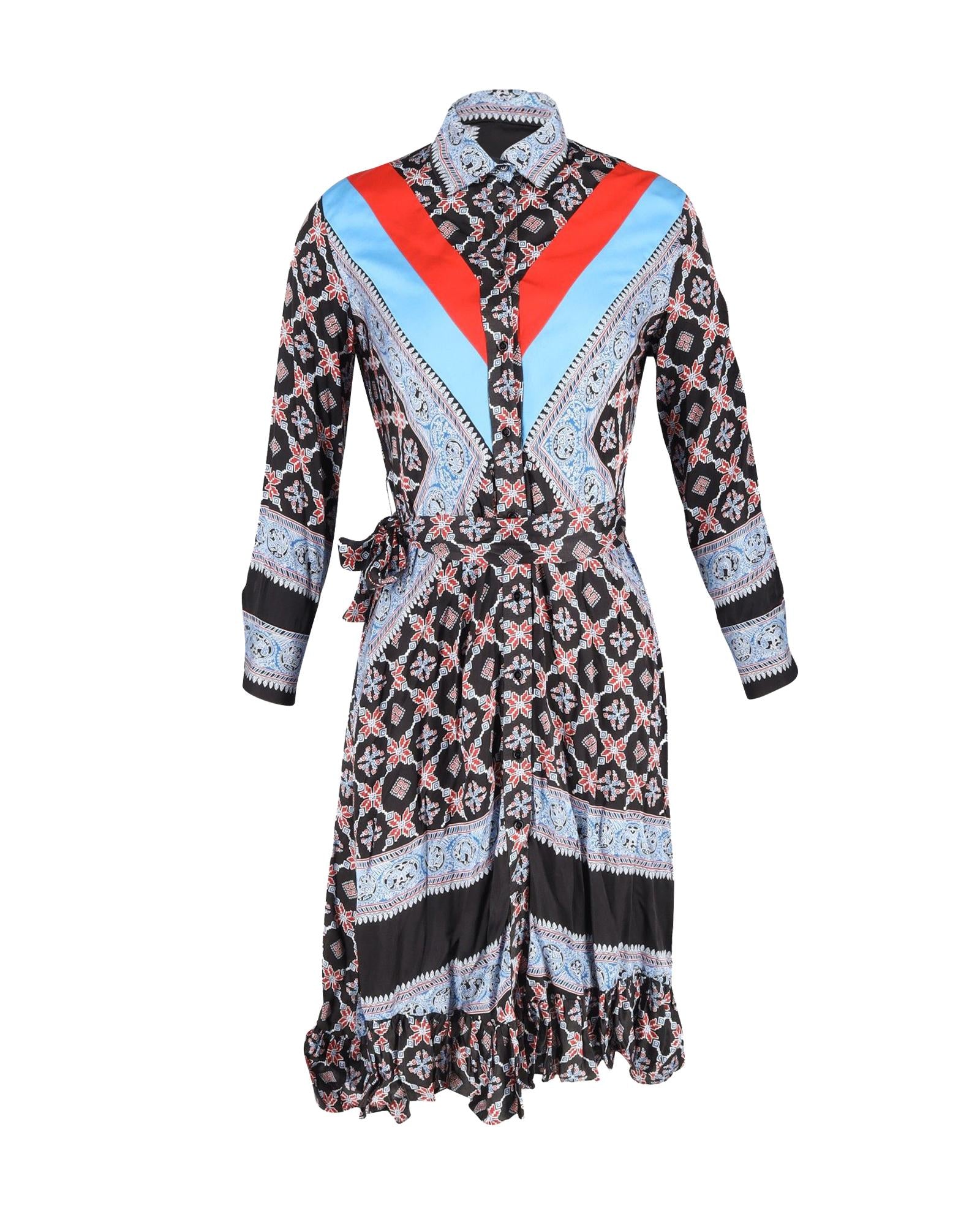 Pre-owned Printed Midi Shirt Dress