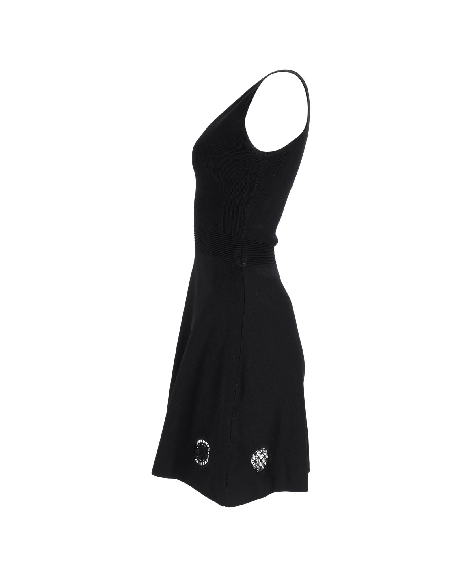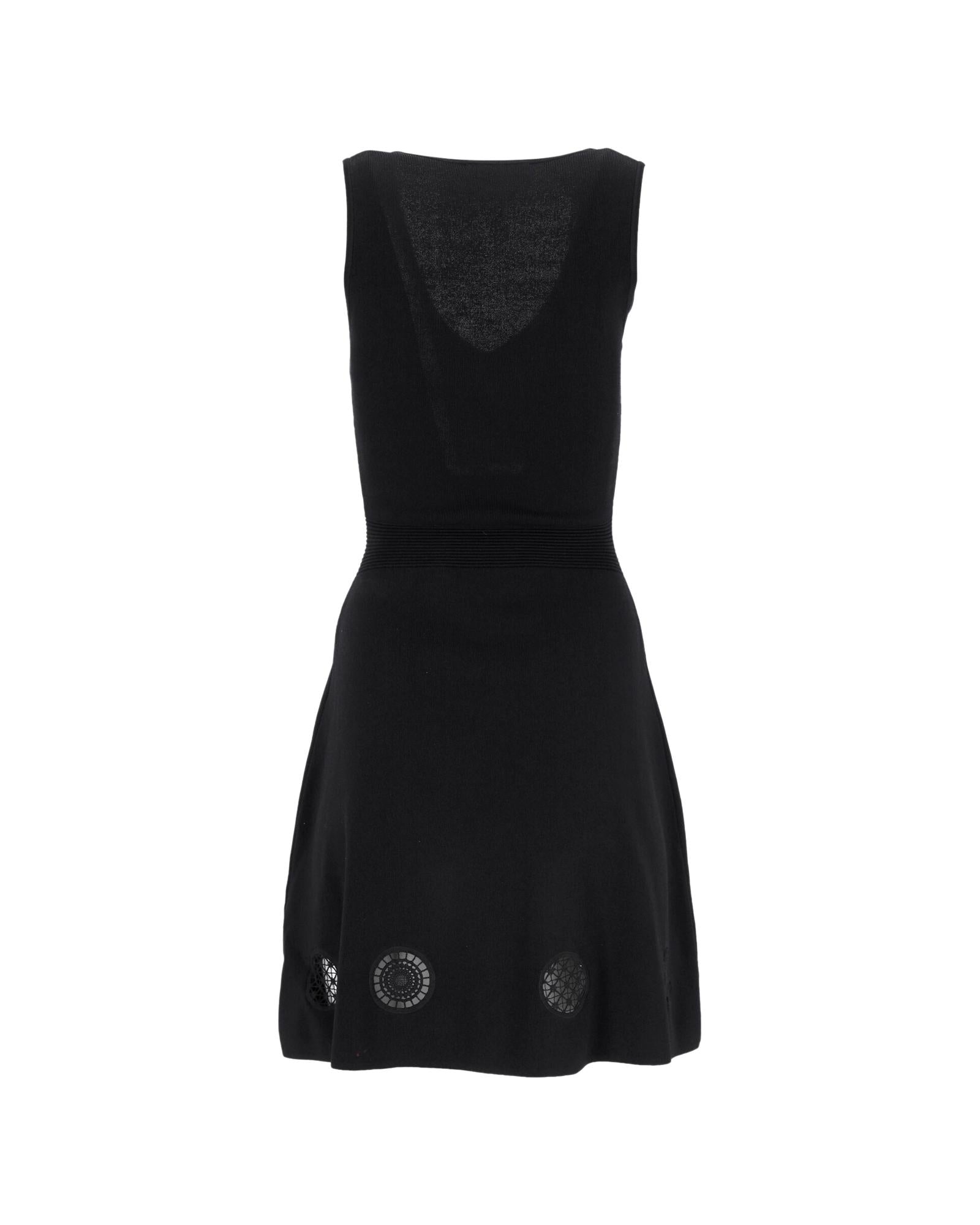 - Out Detail Knitted Sleeveless Dress in Black Polyamide
