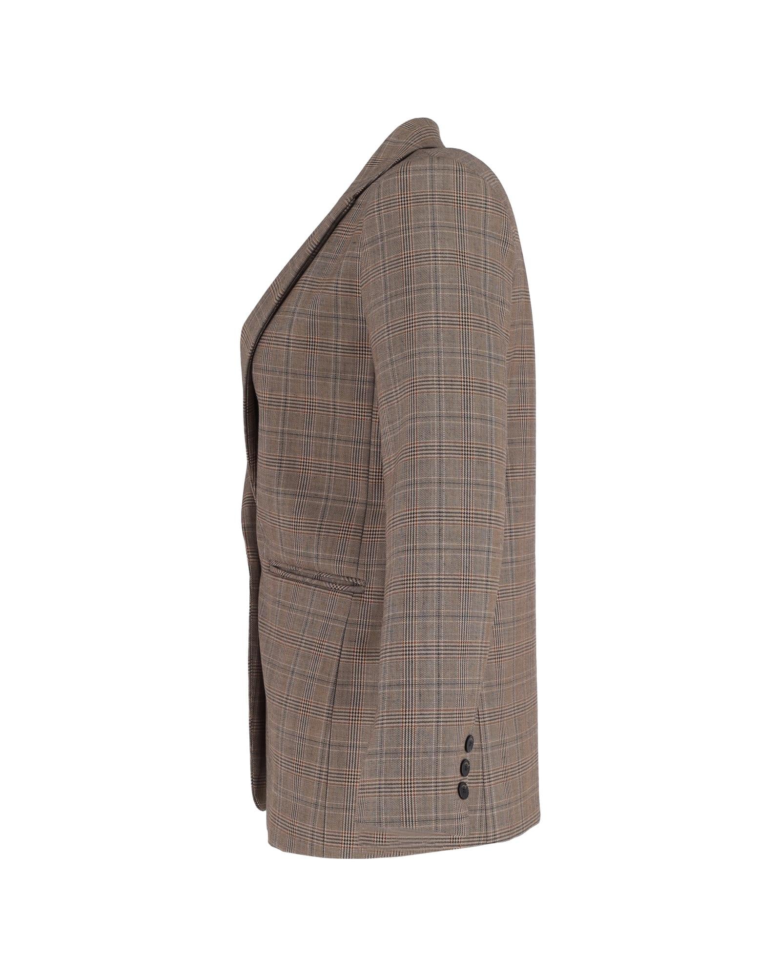 Plaid-Check Single-Breasted Blazer with Peak Lapels